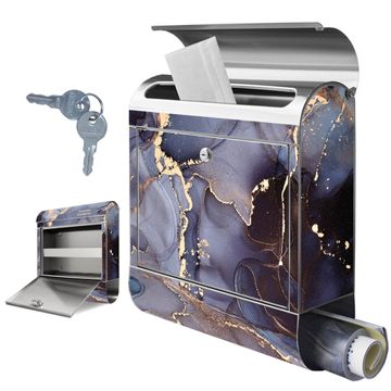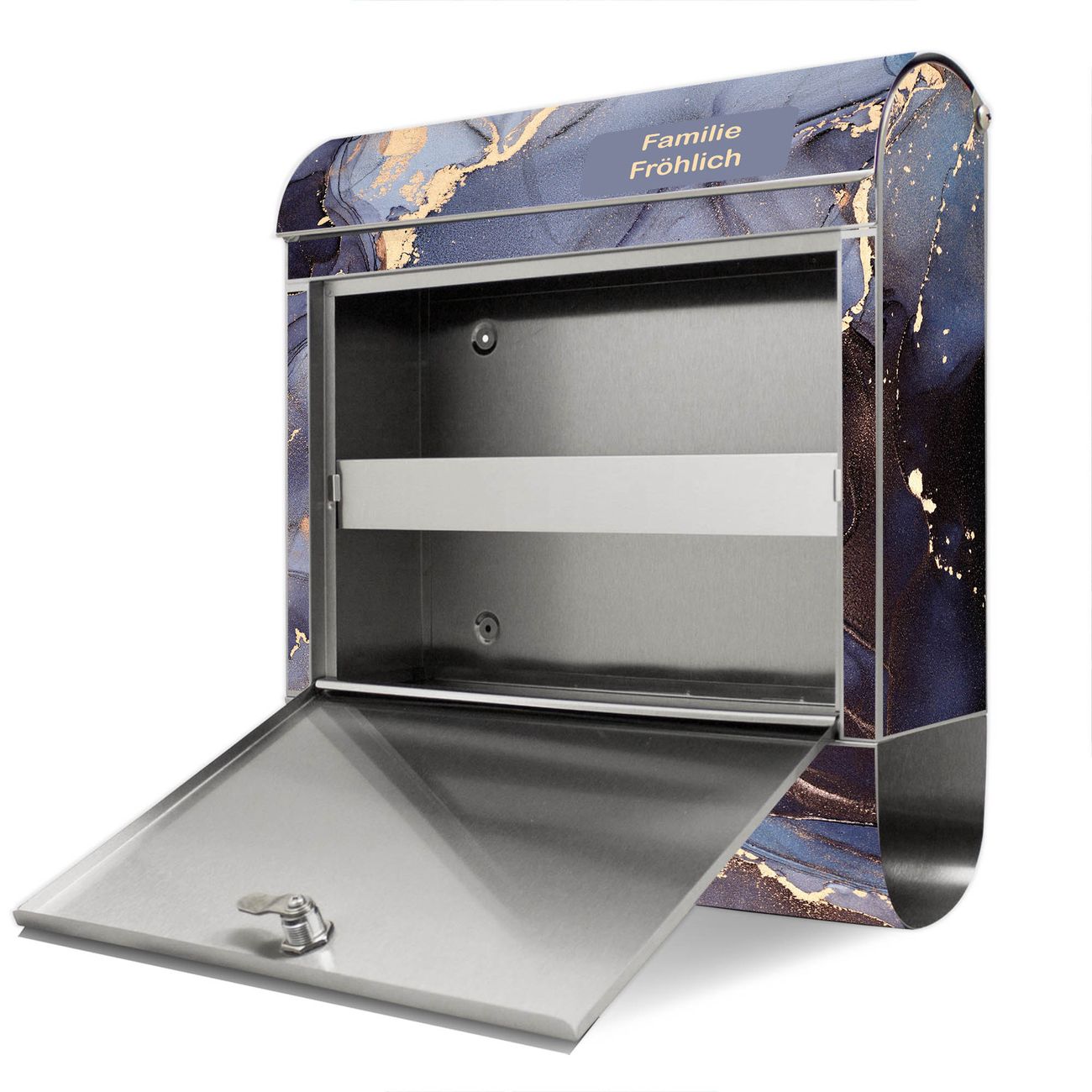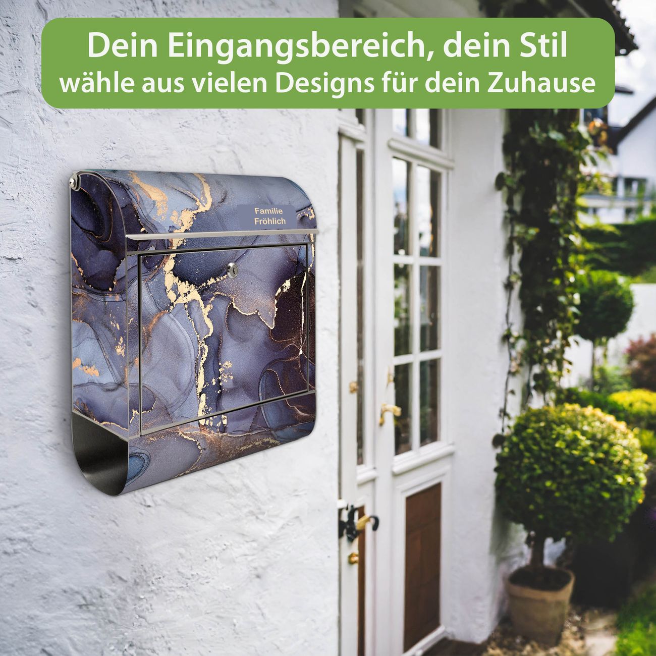 Wandbriefkasten Edelstahl Motiv Lila Marmor mit Gold 1