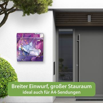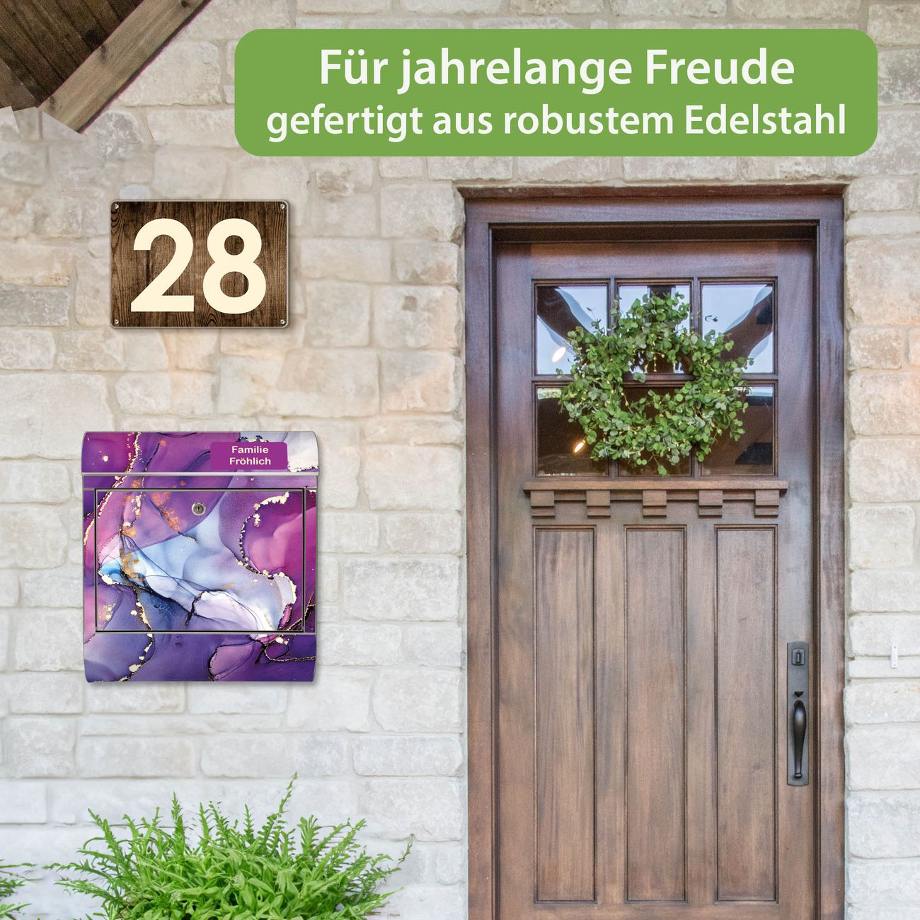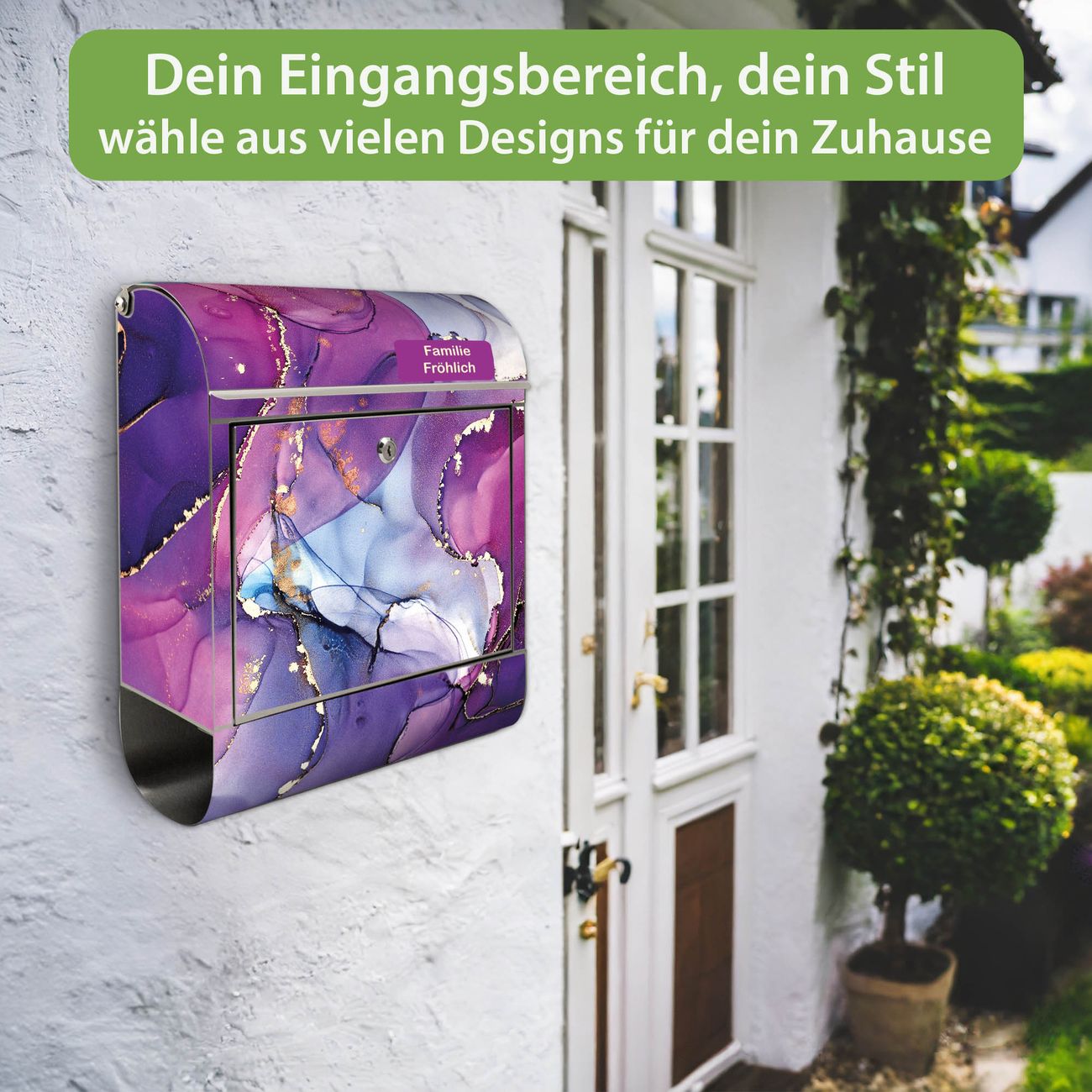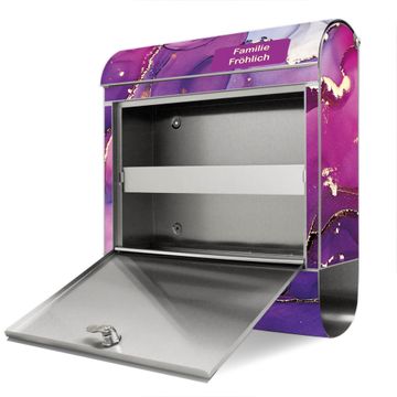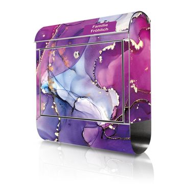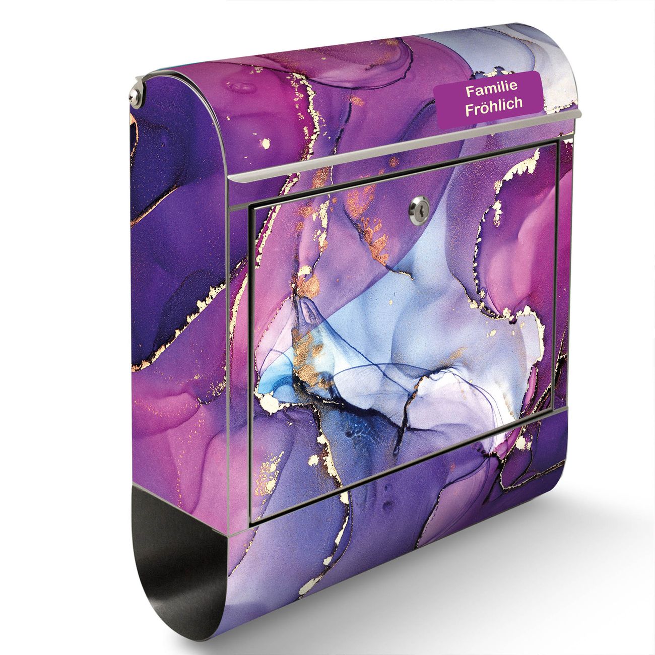 Wandbriefkasten Edelstahl Motiv Lila Marmor mit Gold 2