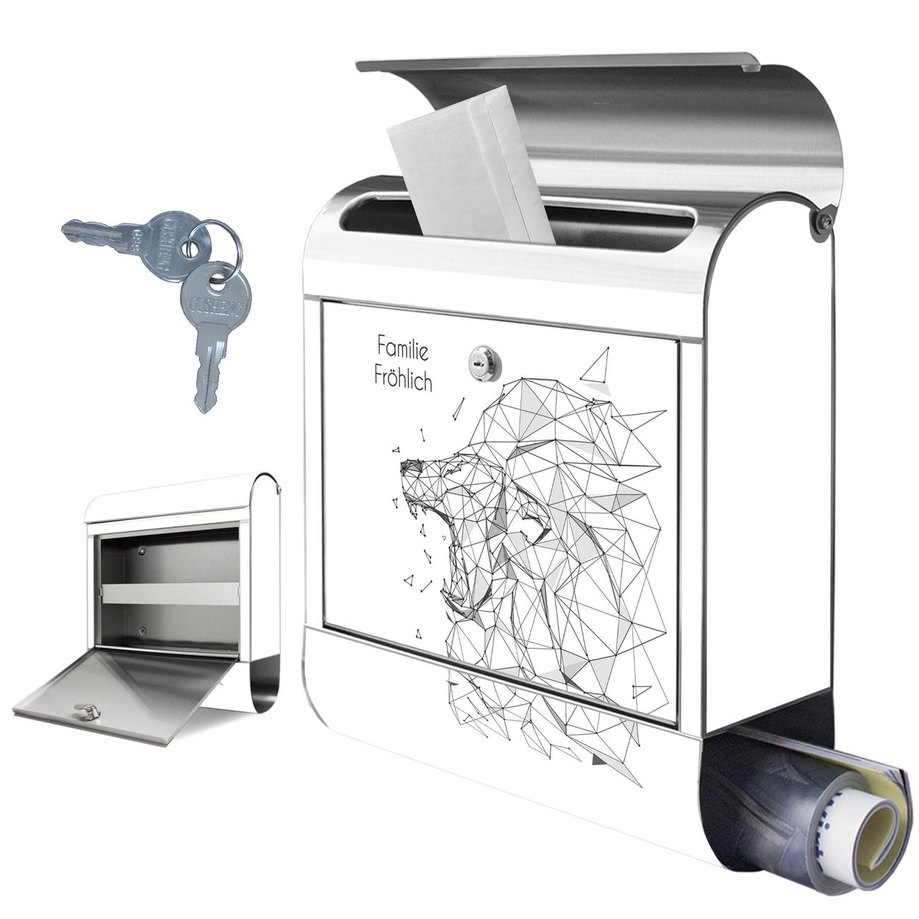 Wandbriefkasten Edelstahl Motiv Löwe abstrakt 2