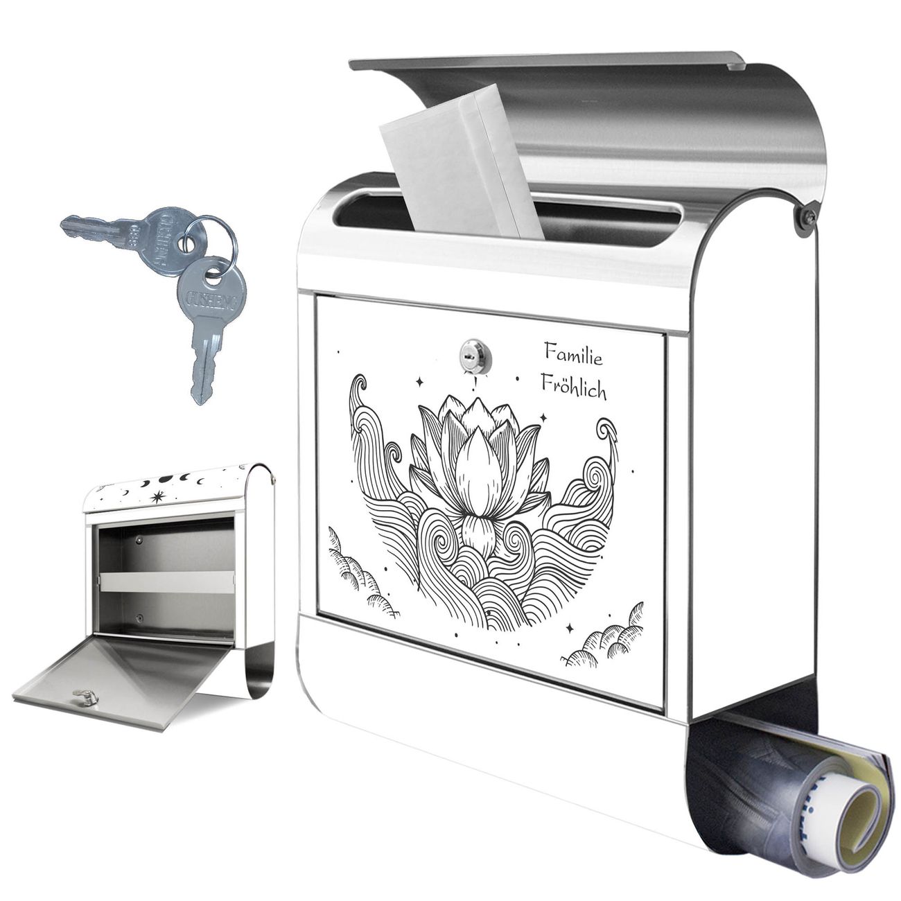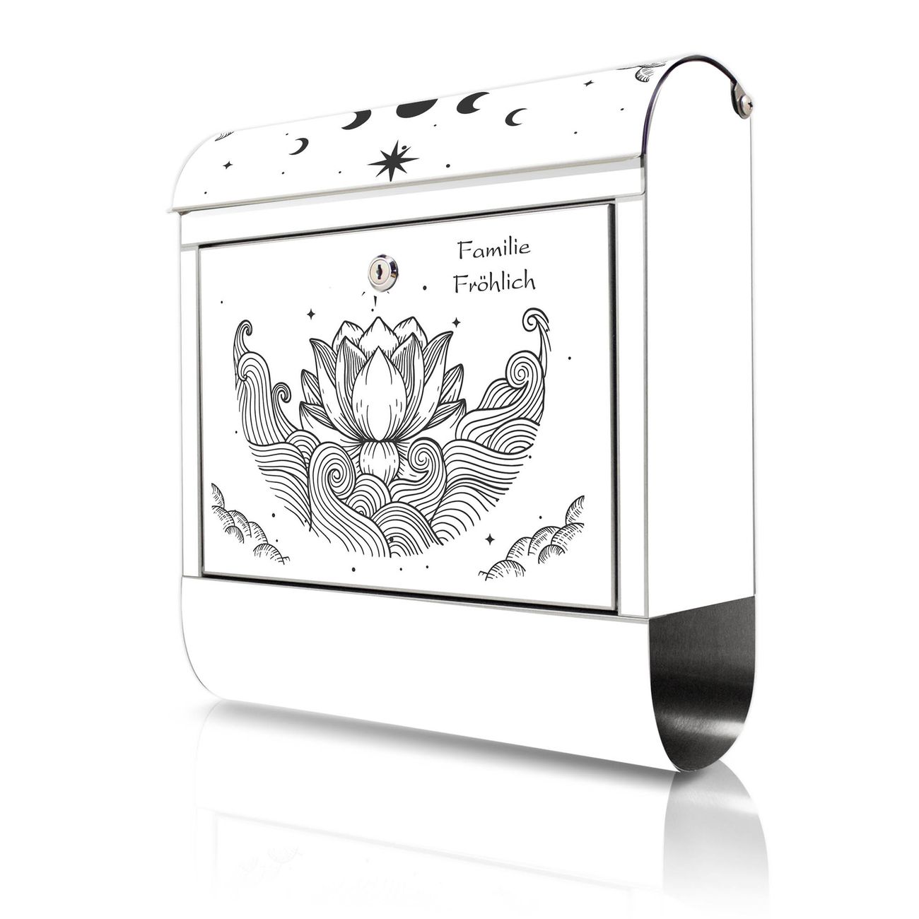 Wandbriefkasten Edelstahl Motiv Lotus und Mondphasen 2