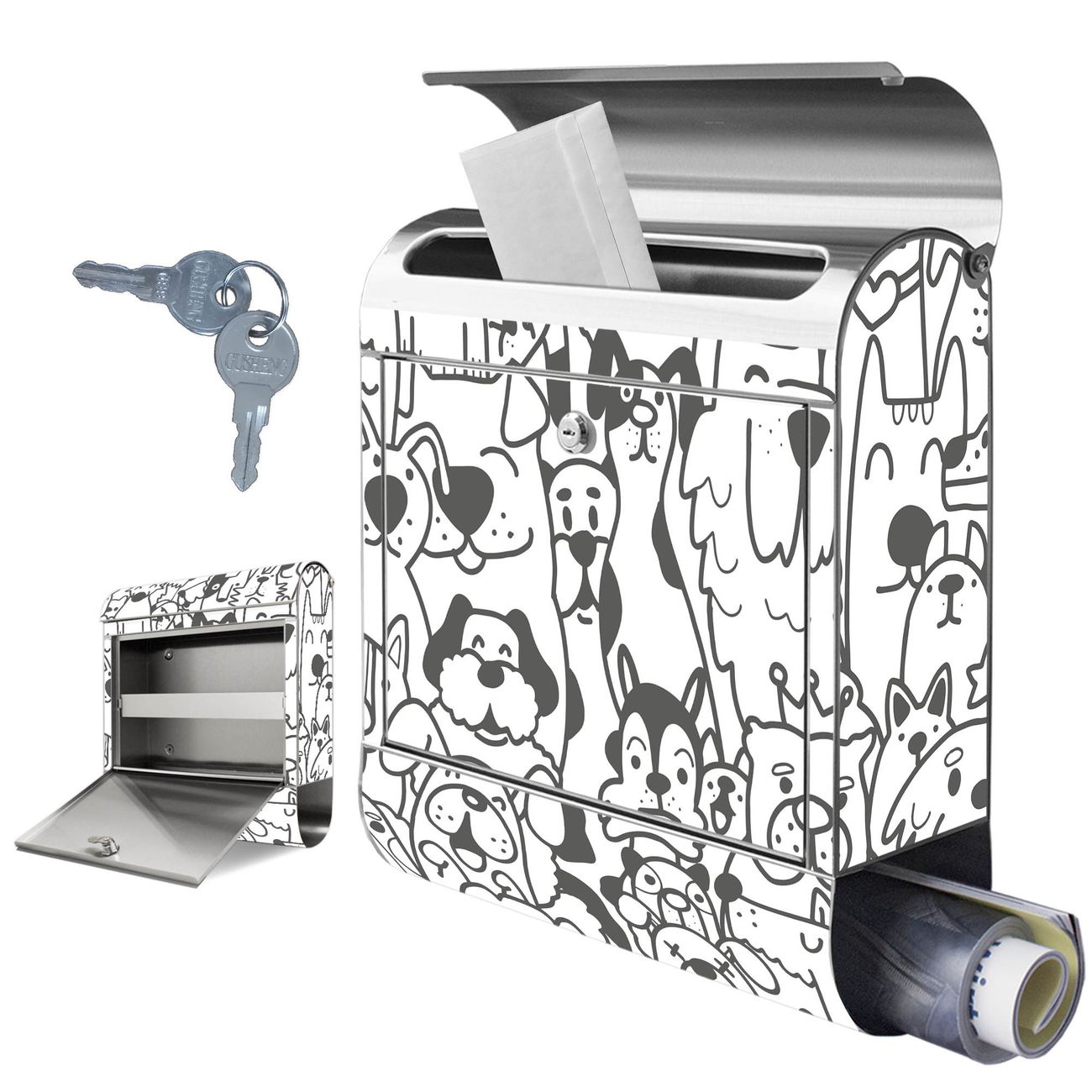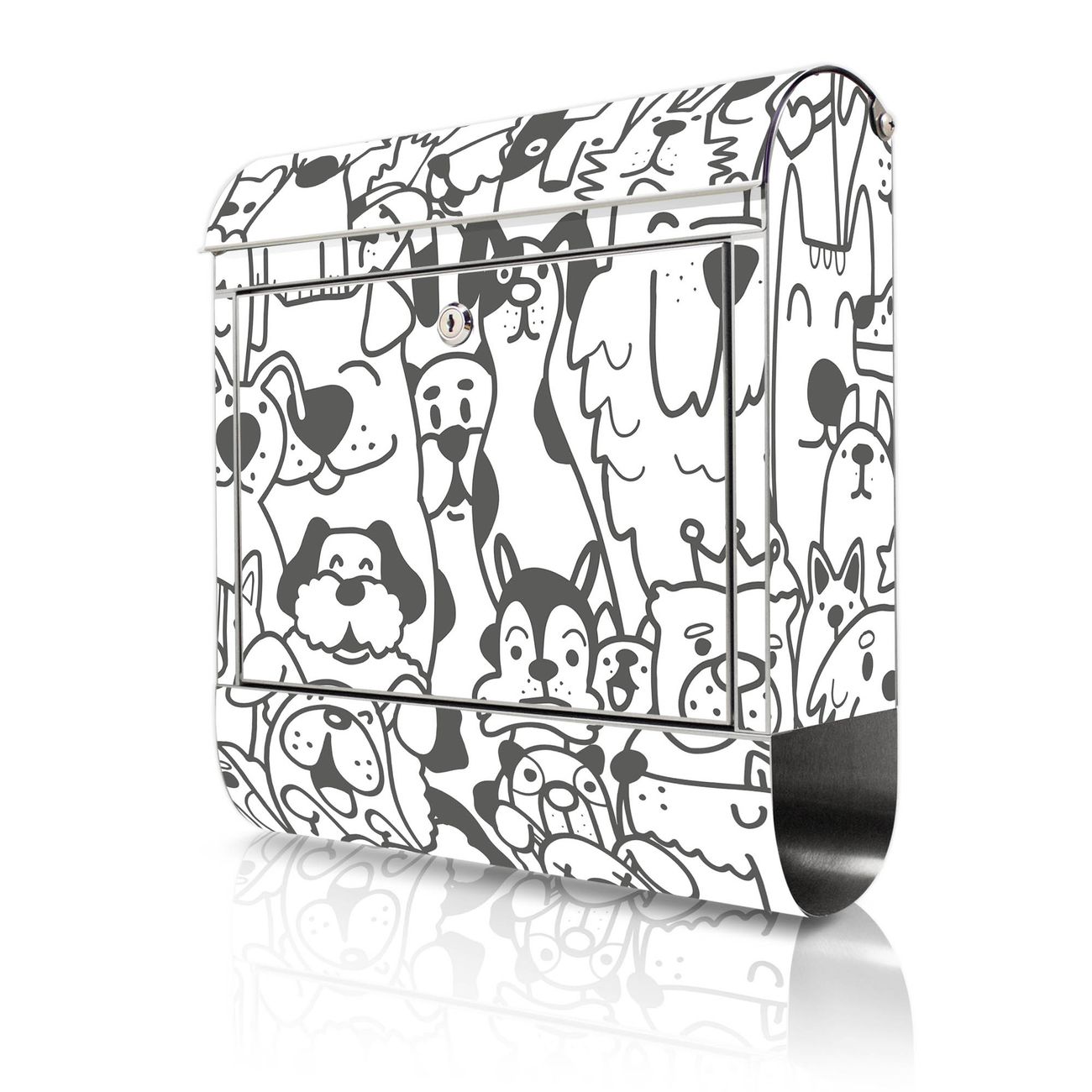 Wandbriefkasten Edelstahl Motiv Lustiges Hundemuster