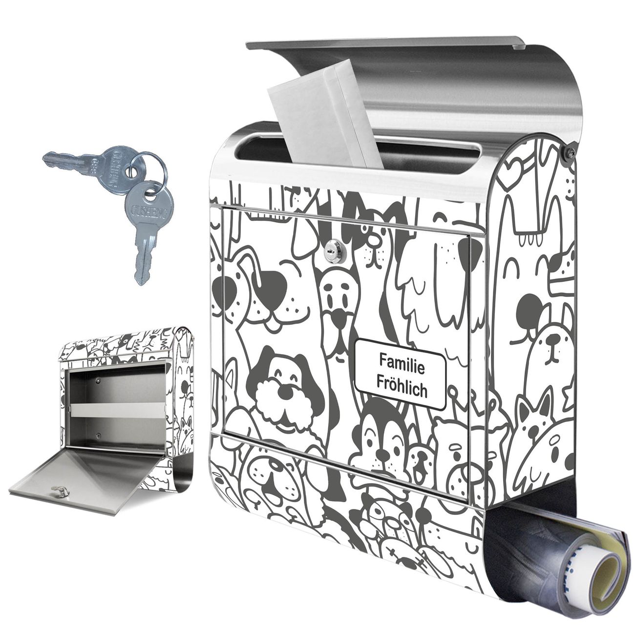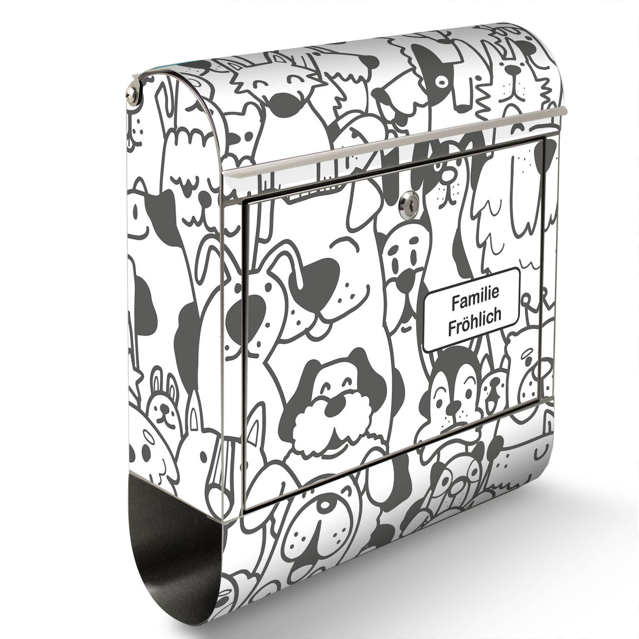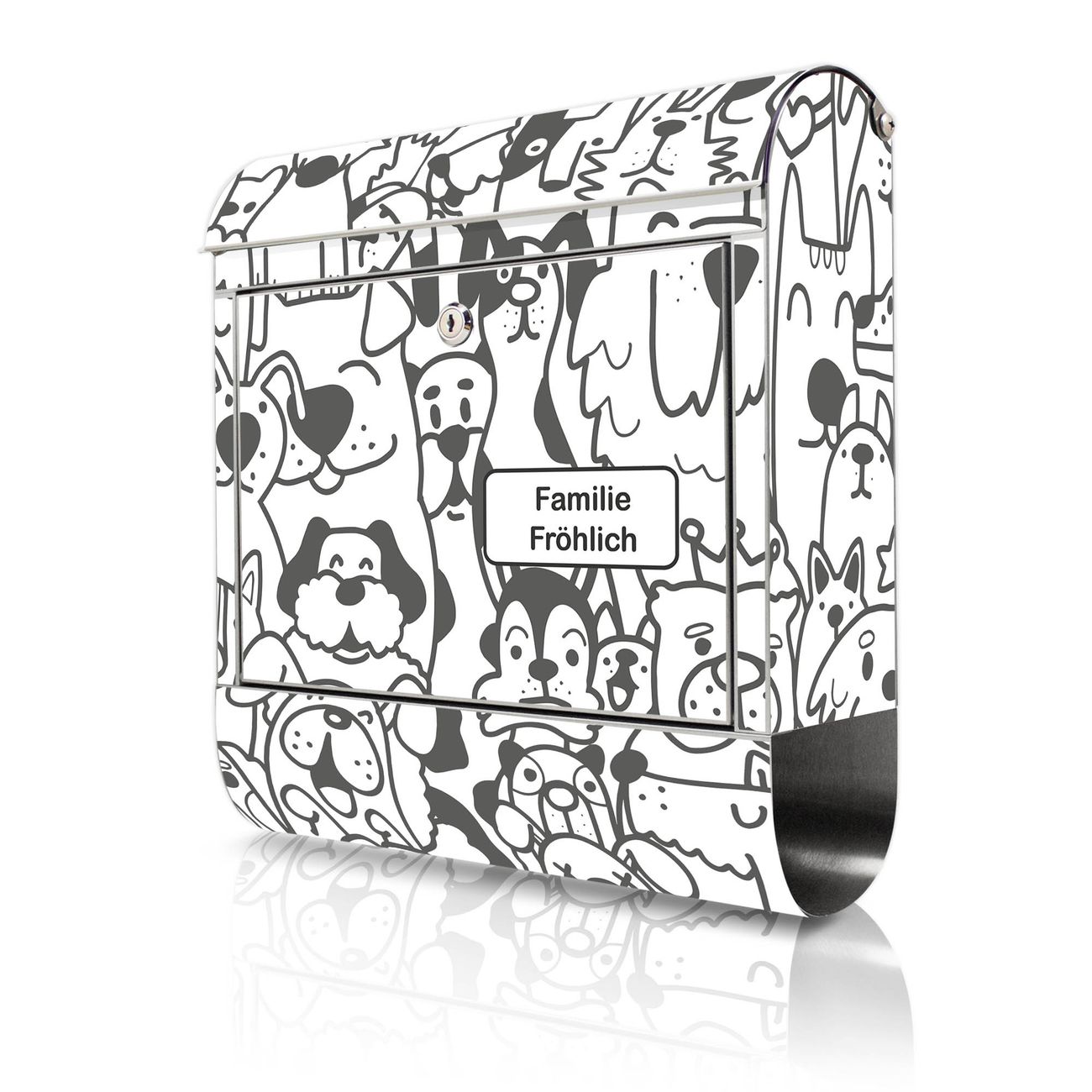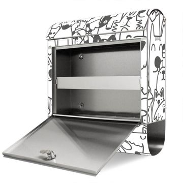 Wandbriefkasten Edelstahl Motiv Lustiges Hundemuster