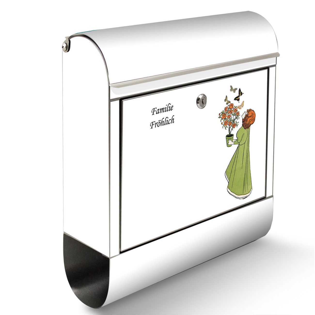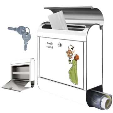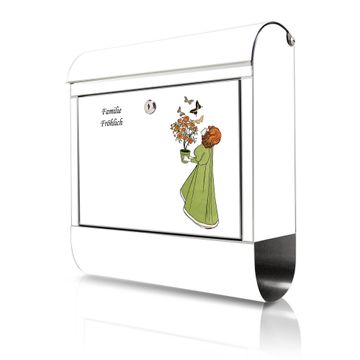 Wandbriefkasten Edelstahl Motiv Mädchen mit Blumentopf Vintage