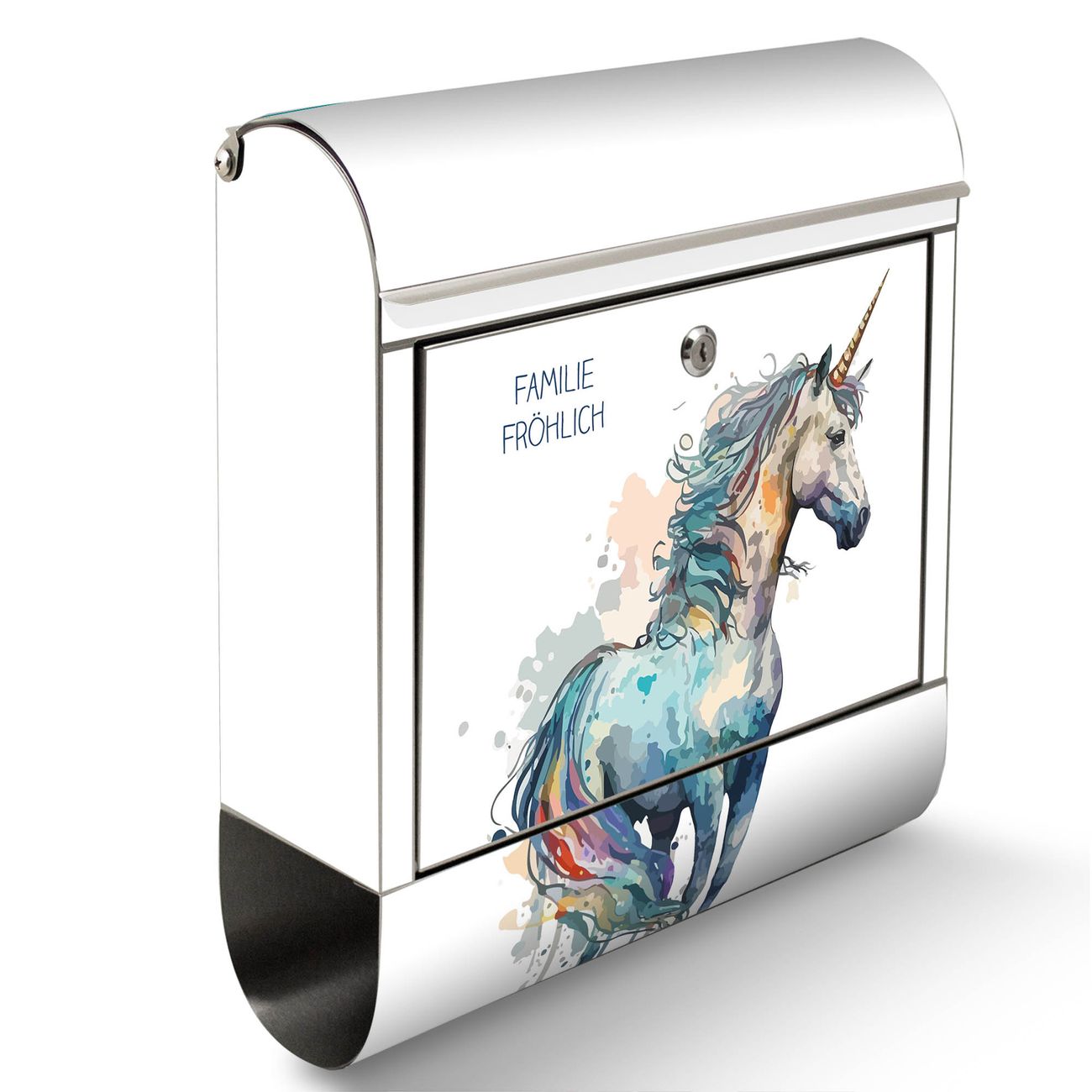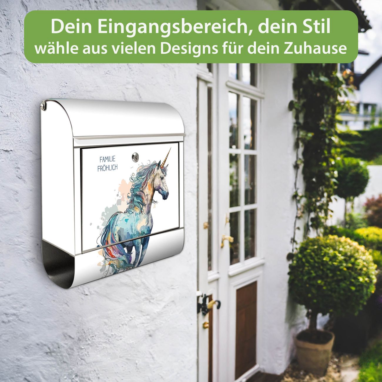 Wandbriefkasten Edelstahl Motiv Magisches Einhorn