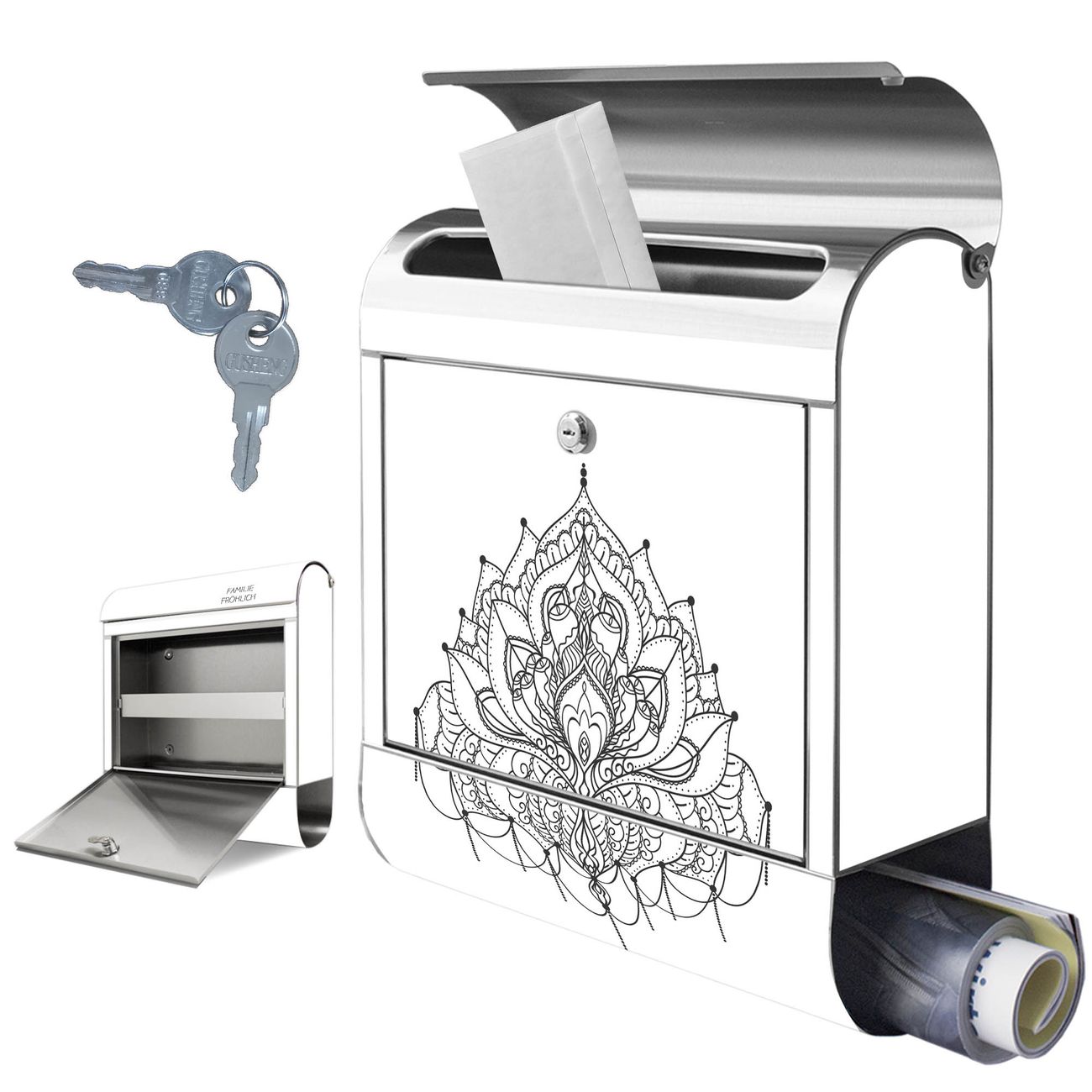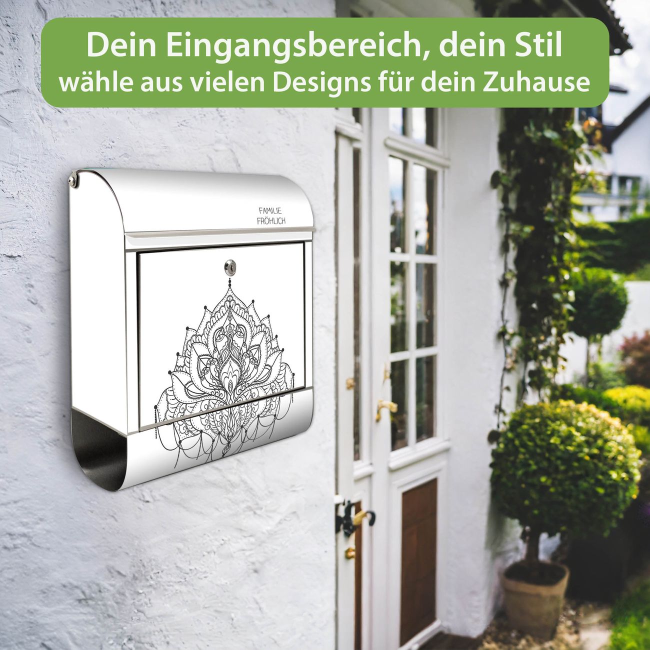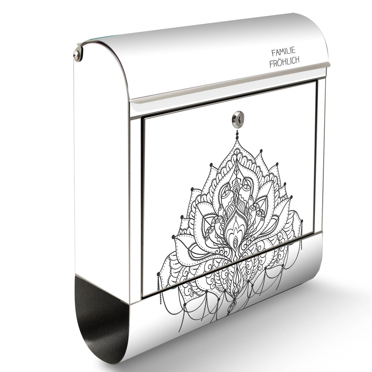 Wandbriefkasten Edelstahl Motiv Mandala Muster
