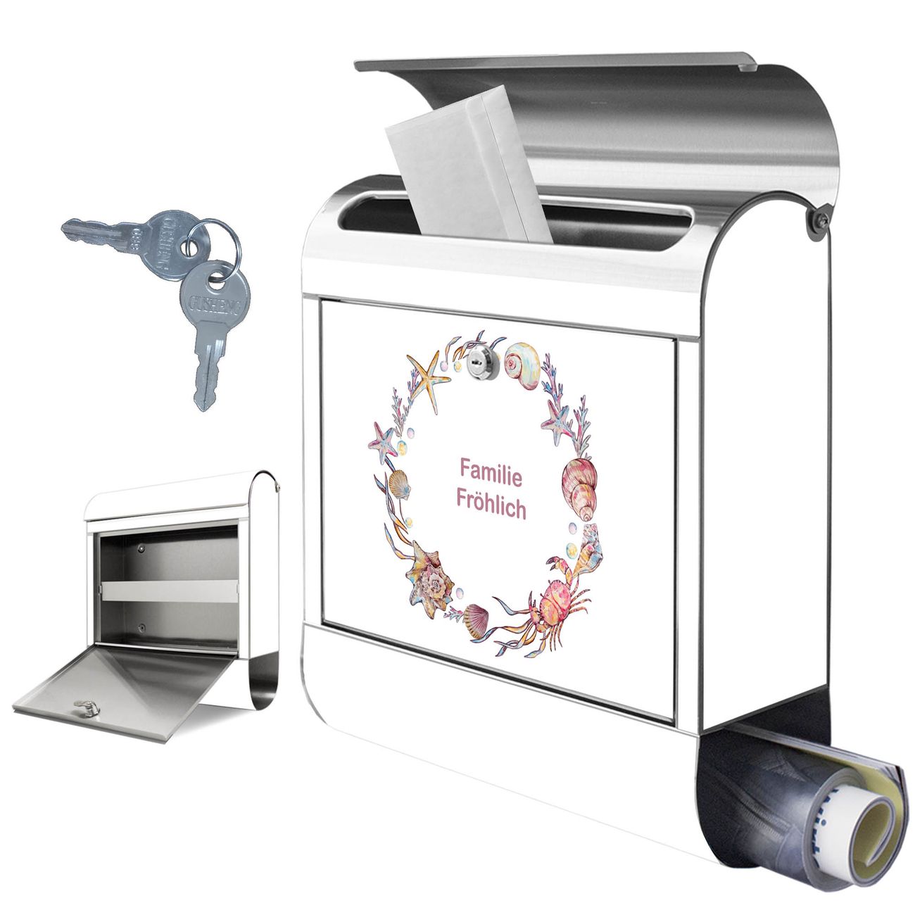 Wandbriefkasten Edelstahl Motiv Maritimer Kranz