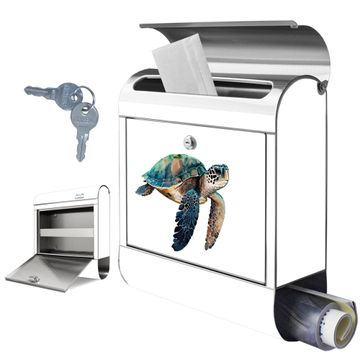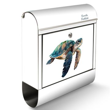 Wandbriefkasten Edelstahl Motiv Meeresschildkröte Aquarell