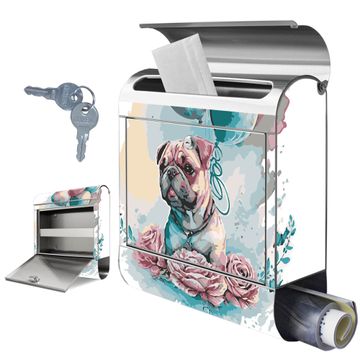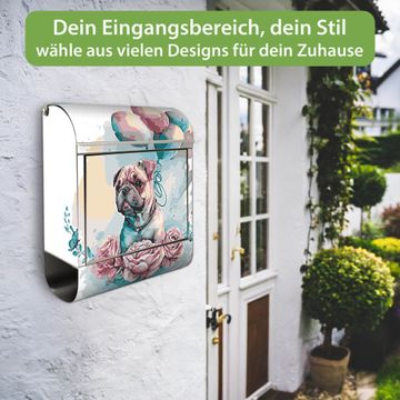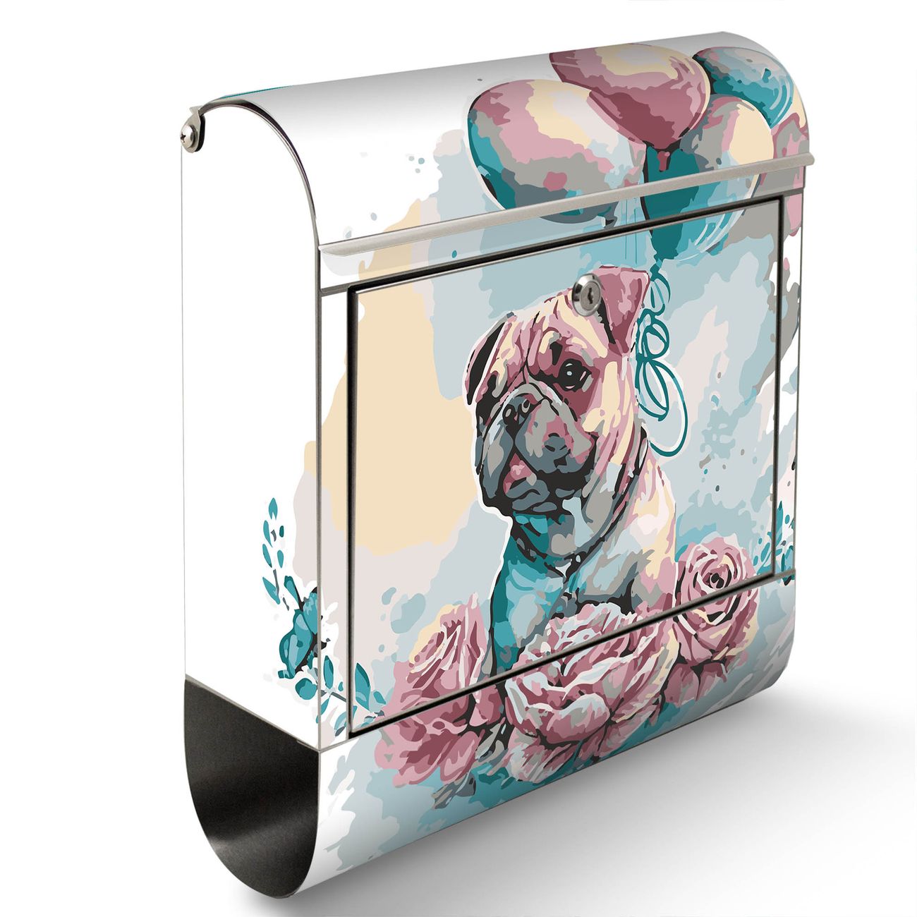 Wandbriefkasten Edelstahl Motiv Mops mit Ballons Aquarell