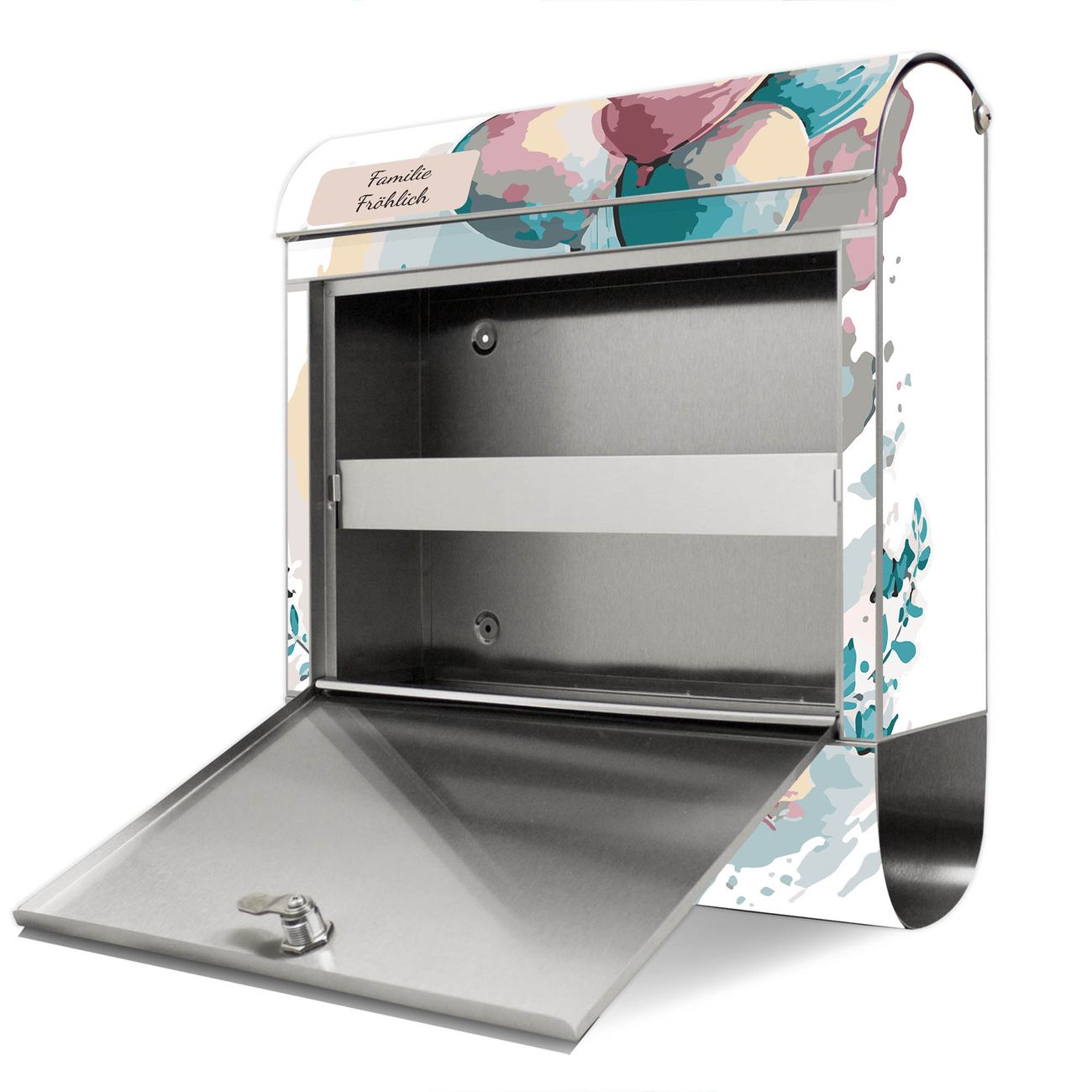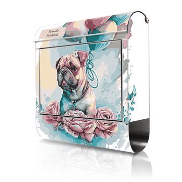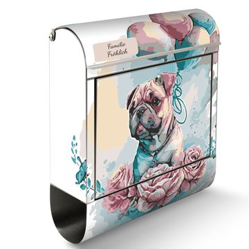 Wandbriefkasten Edelstahl Motiv Mops mit Ballons Aquarell