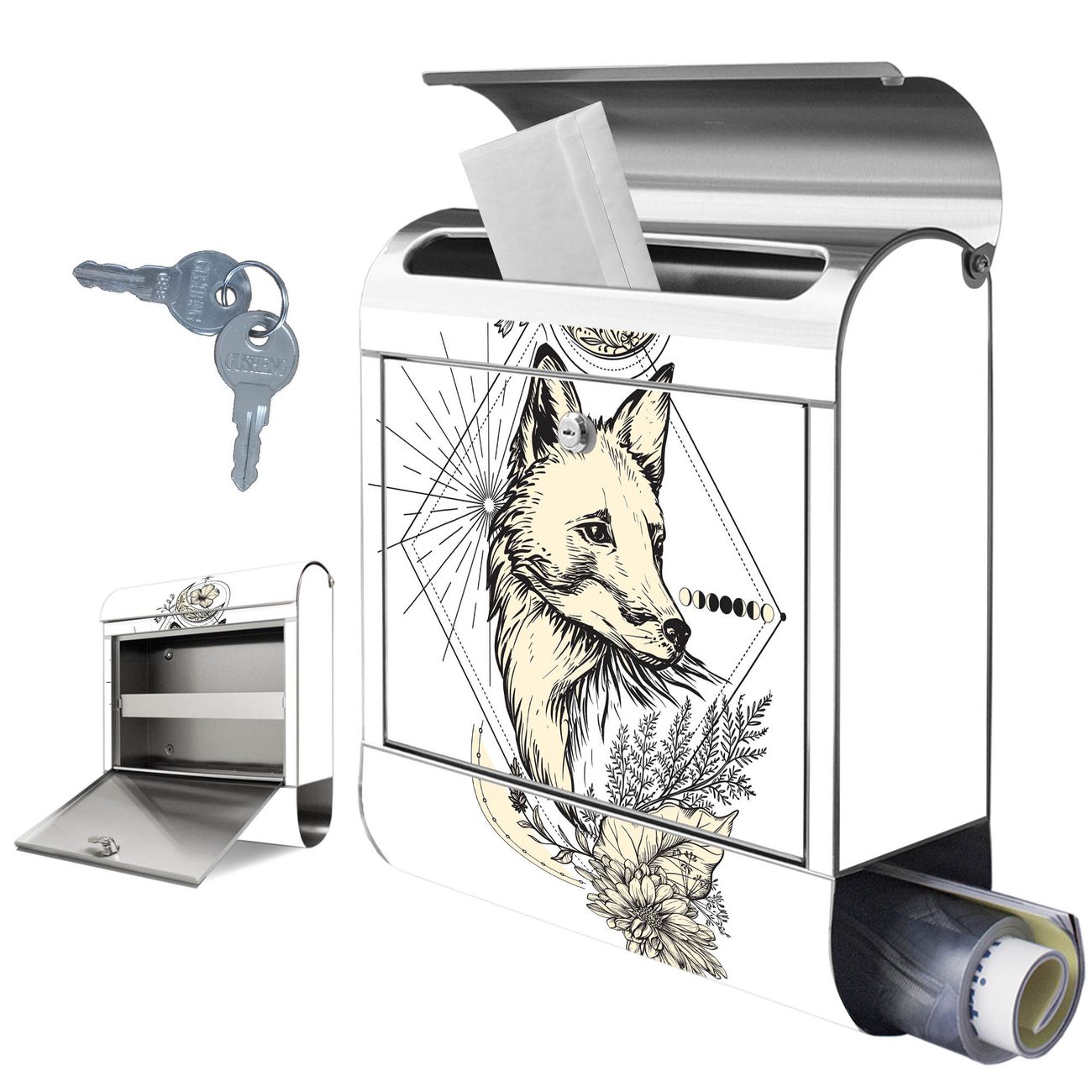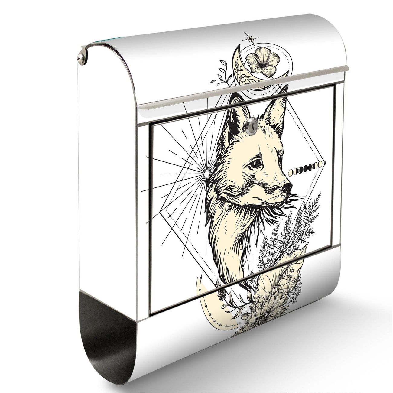 Wandbriefkasten Edelstahl Motiv Mystischer Fuchs