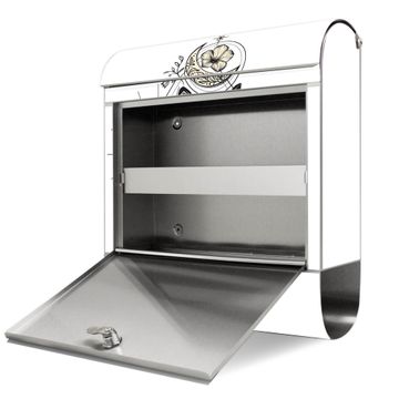 FUNKTION: Der banjado Edelstahl Briefkasten mit Motiv Motiv Mystischer Fuchs bietet Ihnen mit seinem Fassungsvermögen genügend Platz auch für große A4 Sendungen. Das integrierte Zeitungsfach eignet sich hervorragend um unkompliziert die Tageszeitung zu fassen. Auf Wunsch können Sie bei uns den passenden Ständer kaufen und so aus dem Wandbriefkasten einen Standbriefkasten machen. DESIGN: Der Motivbriefkasten hat ein sehr ansprechendes und ausgefallenes Design, damit entlocken Sie Ihren Nachbarn und dem Postboten ein Lächeln. Heben Sie Sich ab von der tristen grauen Masse ohne auf Funktionalität zu verzichten. DETAILS: Der Design Briefkasten mit Motiv Motiv Mystischer Fuchs besteht aus hochwertigem 18/0 Edelstahl. Das Motiv besteht aus einer wetter- und UV-resistenten Folie, die mit einem Schutzlaminat überzogen ist. Der Briefkasten wird mit Montagematerial und zwei Schlüsseln geliefert. NUTZEN: Sie können diesen Briefkasten sowohl als Wandbriefkasten montieren oder einen passenden Ständer auswählen und als Standbriefkasten einbetonieren. Die Größe bietet genügend Platz für Sendungen aller Art, das hochwertige Edelstahl ist rostfrei und die Motivfolie absolut wetterfest. SCHUTZ: Um Ihre Post optimal vor Witterungseinflüssen wie Starkregen zu schützen, empfehlen wir, den Briefkasten geschützt anzubringen. BANJADO: Ihr Briefkasten wird in Sachsen in einer kleinen Manufaktur von Hand veredelt. Die Motivfolie ist lösungsmittelfrei und schutzlaminiert, dies sorgt für einen langen Halt. Wir legen großen Wert auf die Verbindung von Funktionalität und Design. Sie erhalten Handarbeit aus Sachsen.
