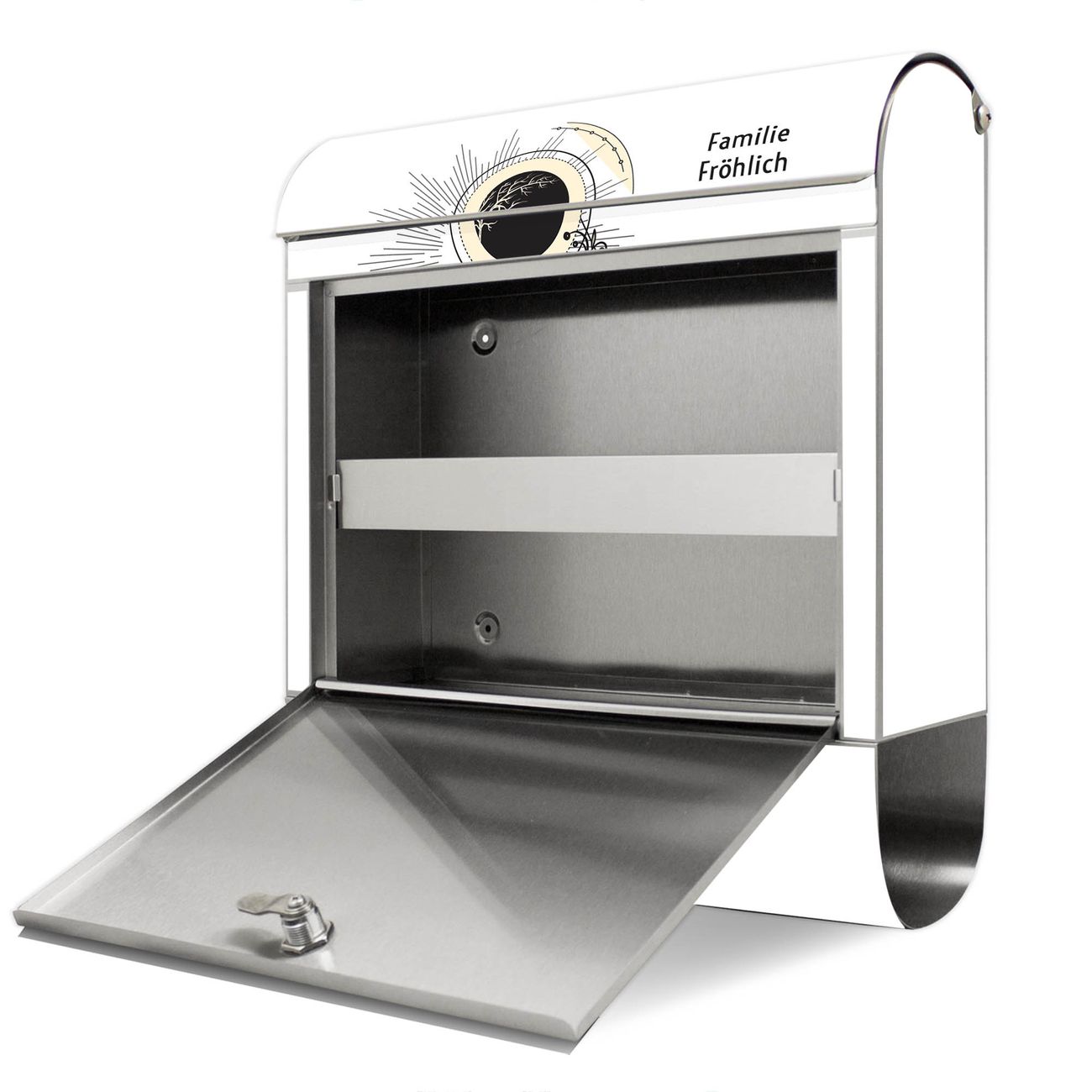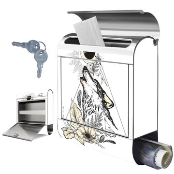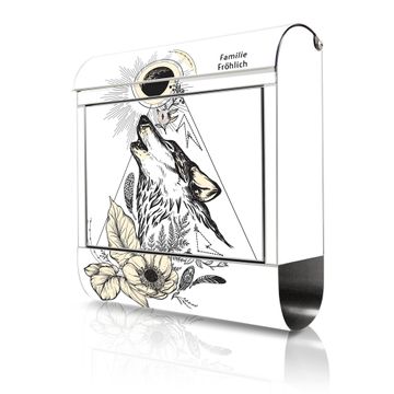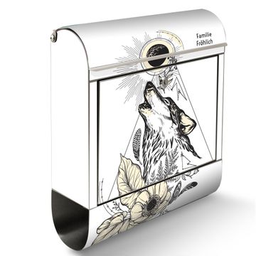 Wandbriefkasten Edelstahl Motiv Mystischer Wolf