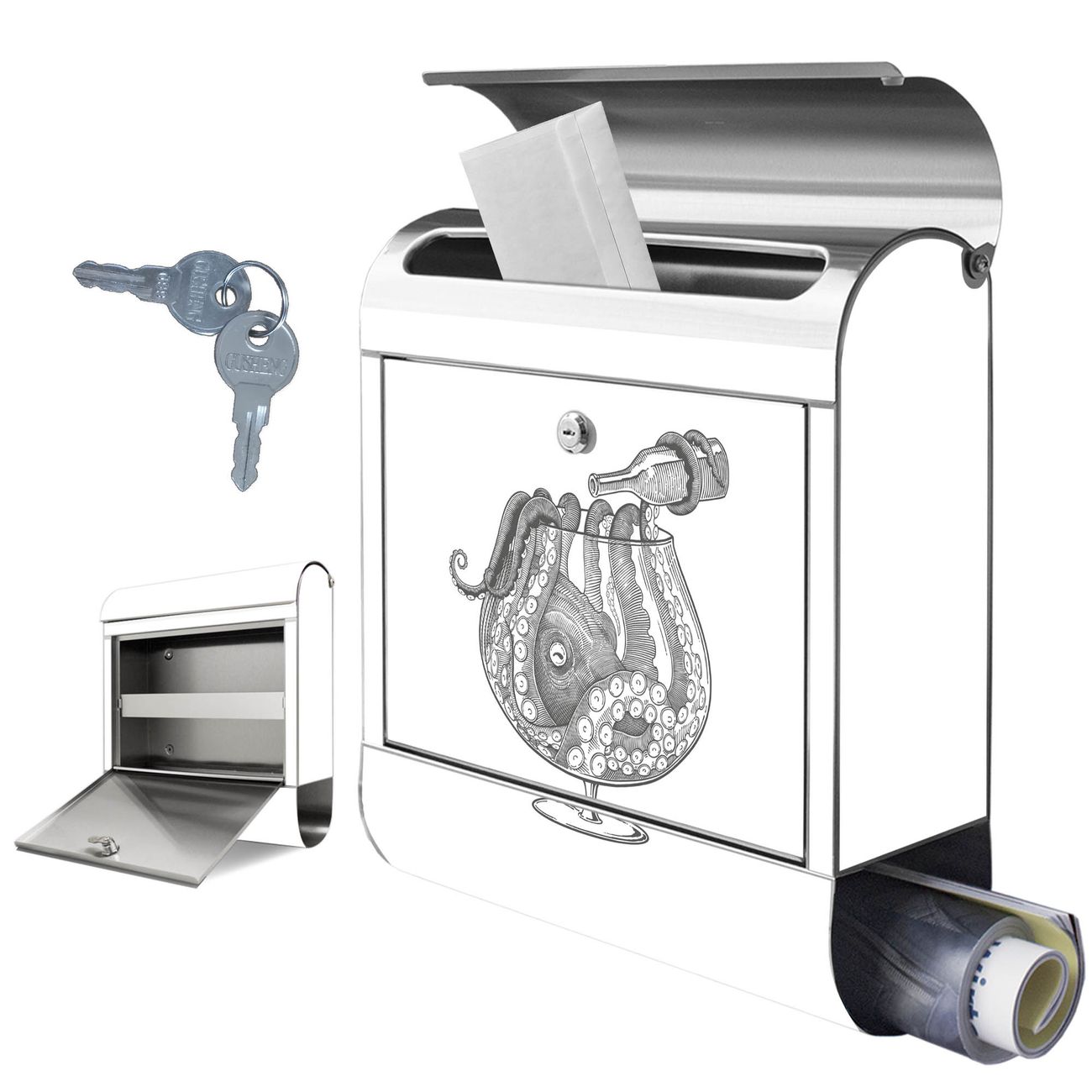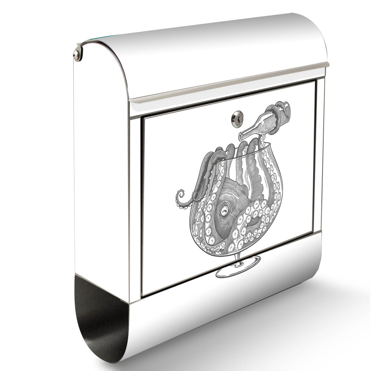 Wandbriefkasten Edelstahl Motiv Oktopus im Glas 2