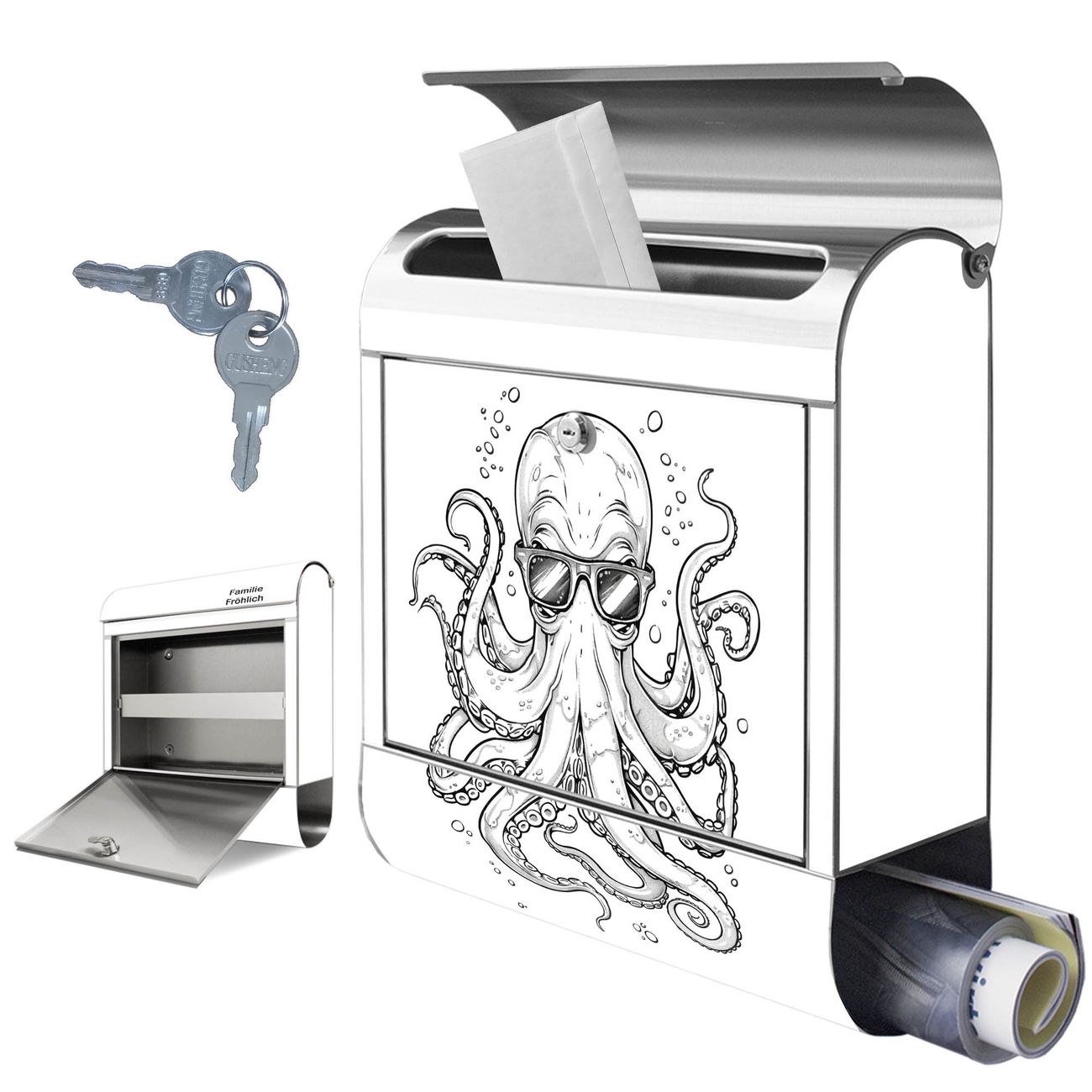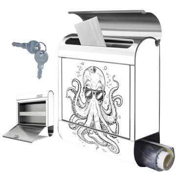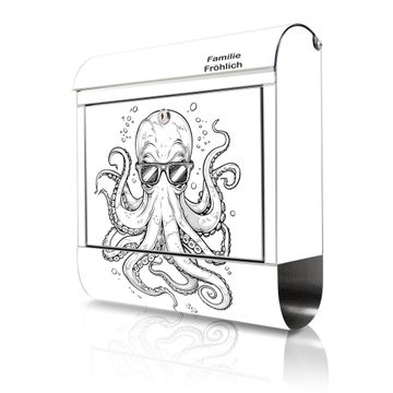 Wandbriefkasten Edelstahl Motiv Oktopus mit Brille