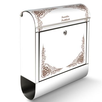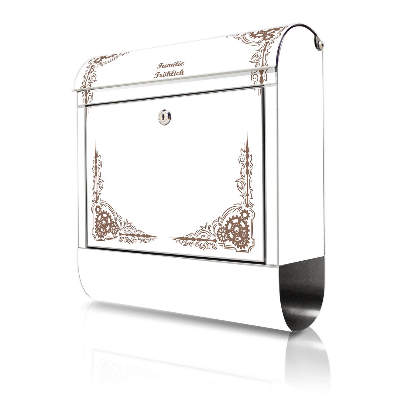 Wandbriefkasten Edelstahl Motiv Ornamentaler Zahnräderrahmen