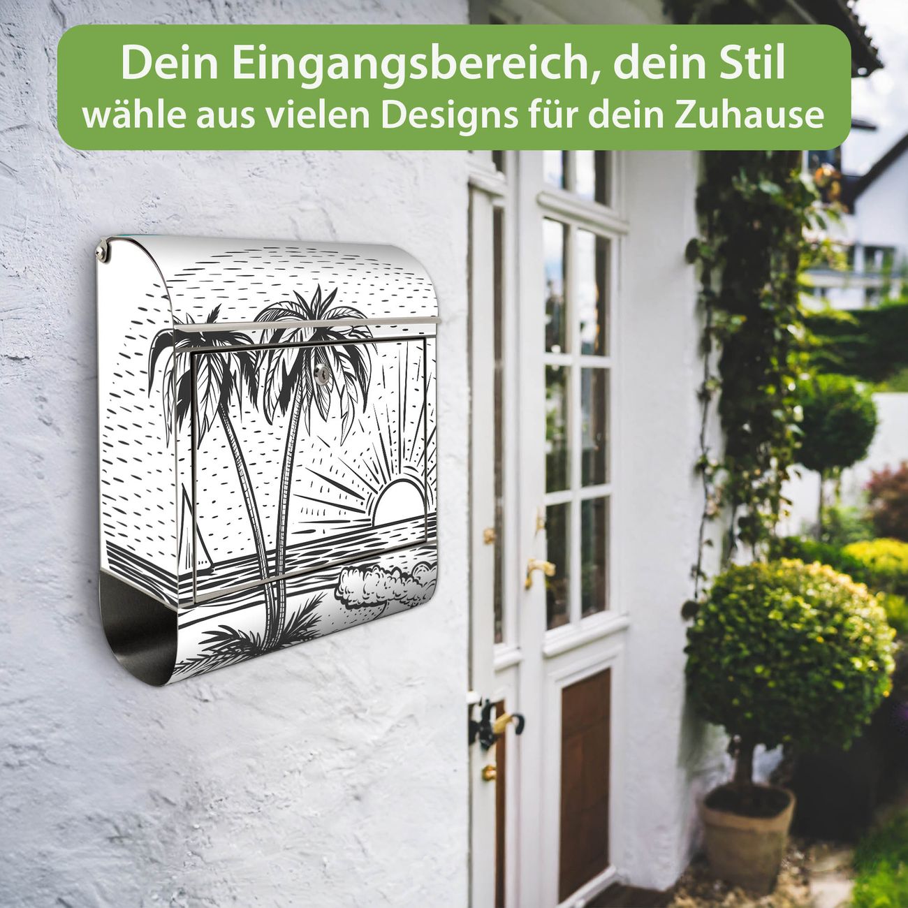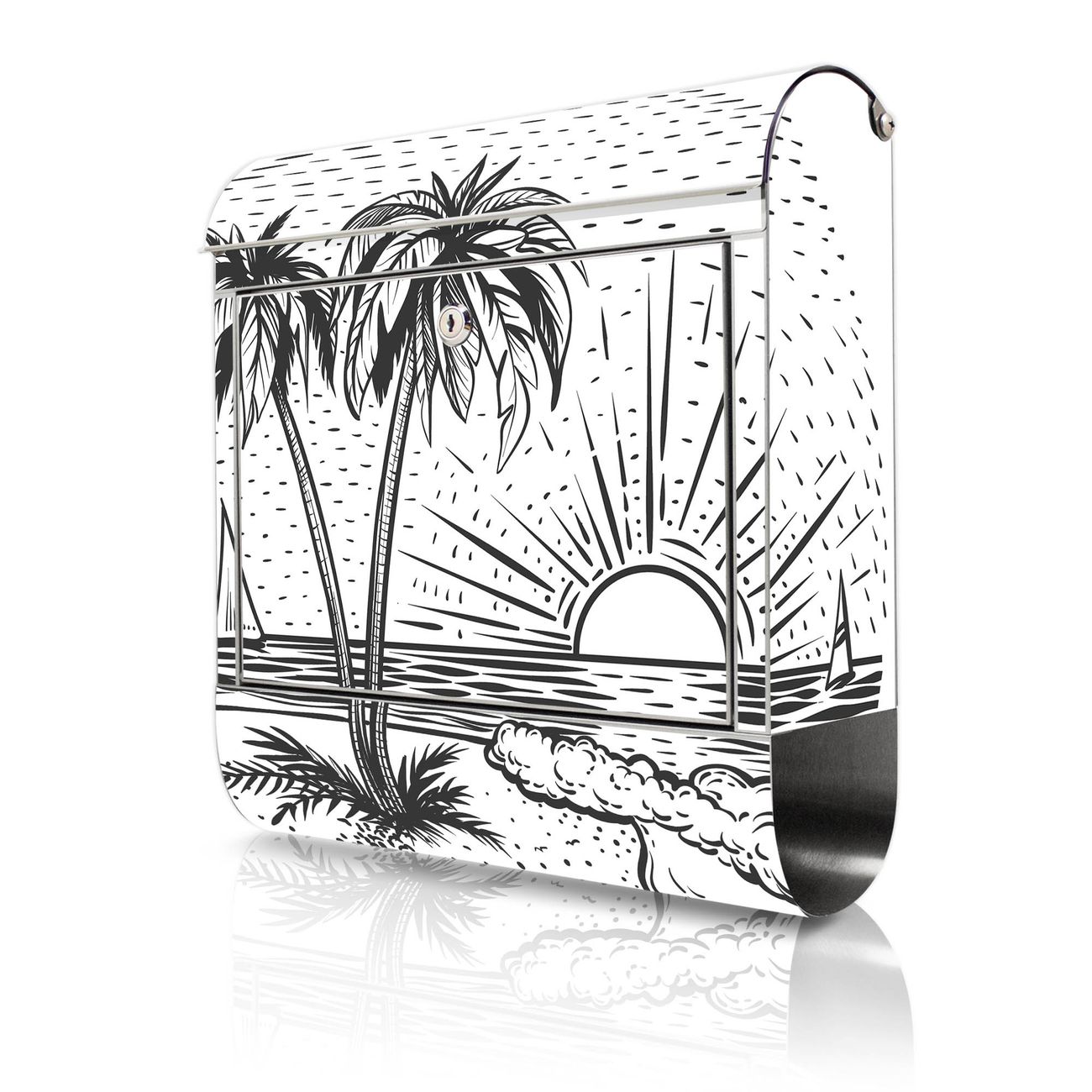 Wandbriefkasten Edelstahl Motiv Palmenstrand 2