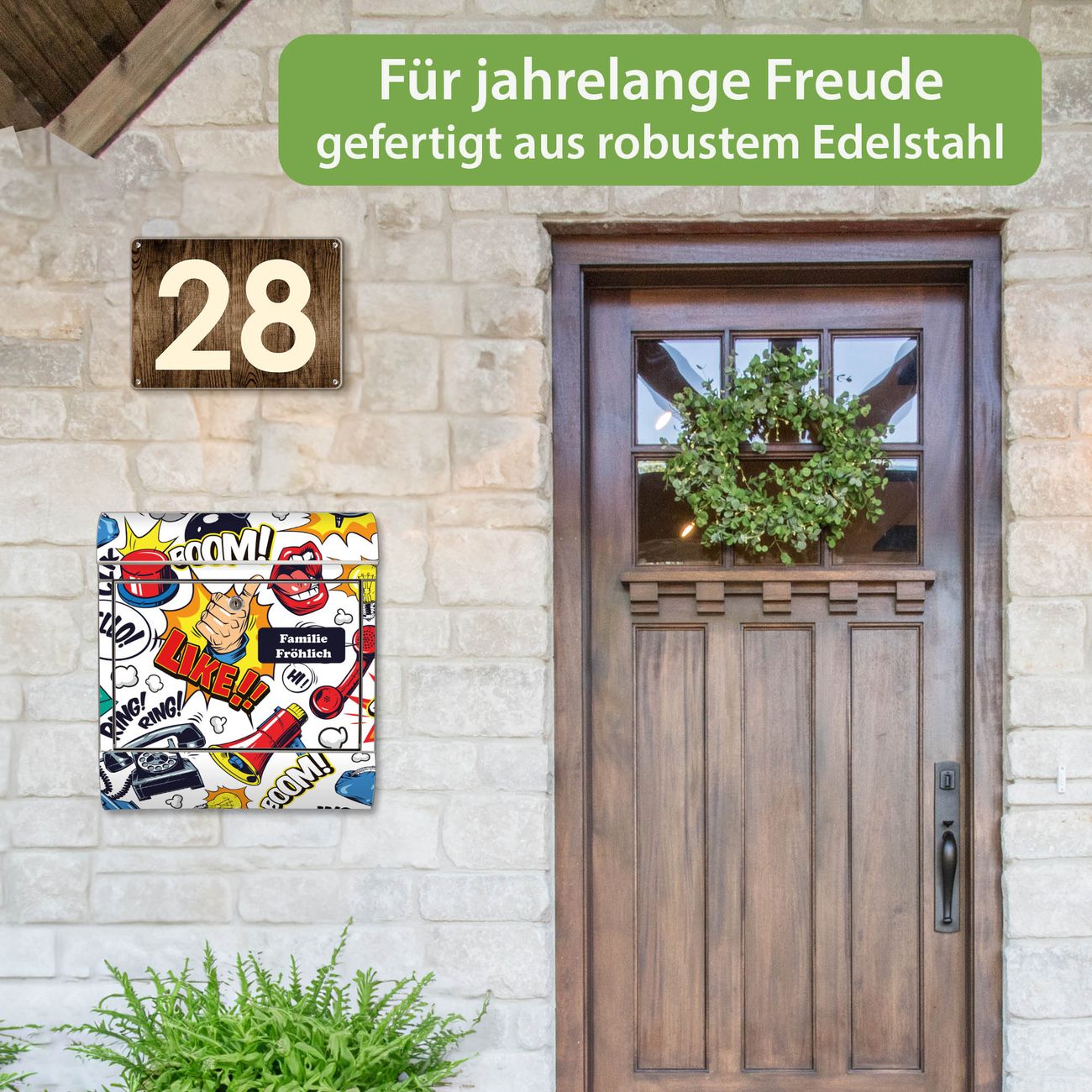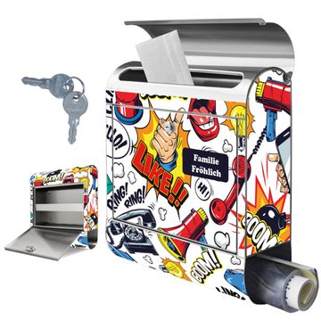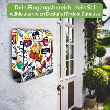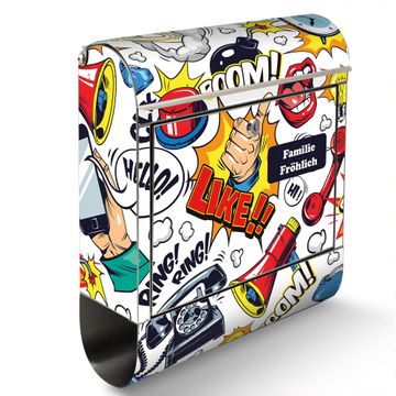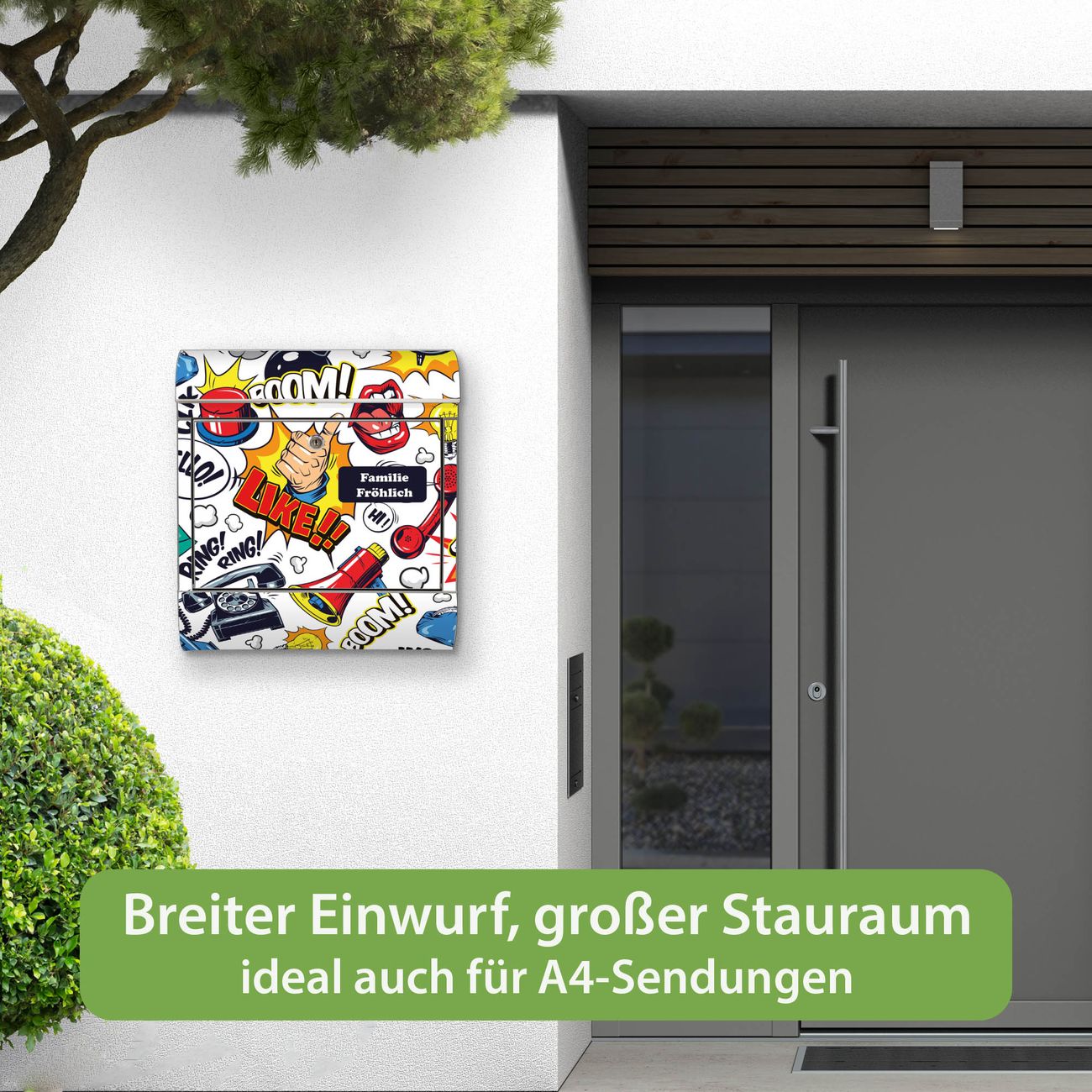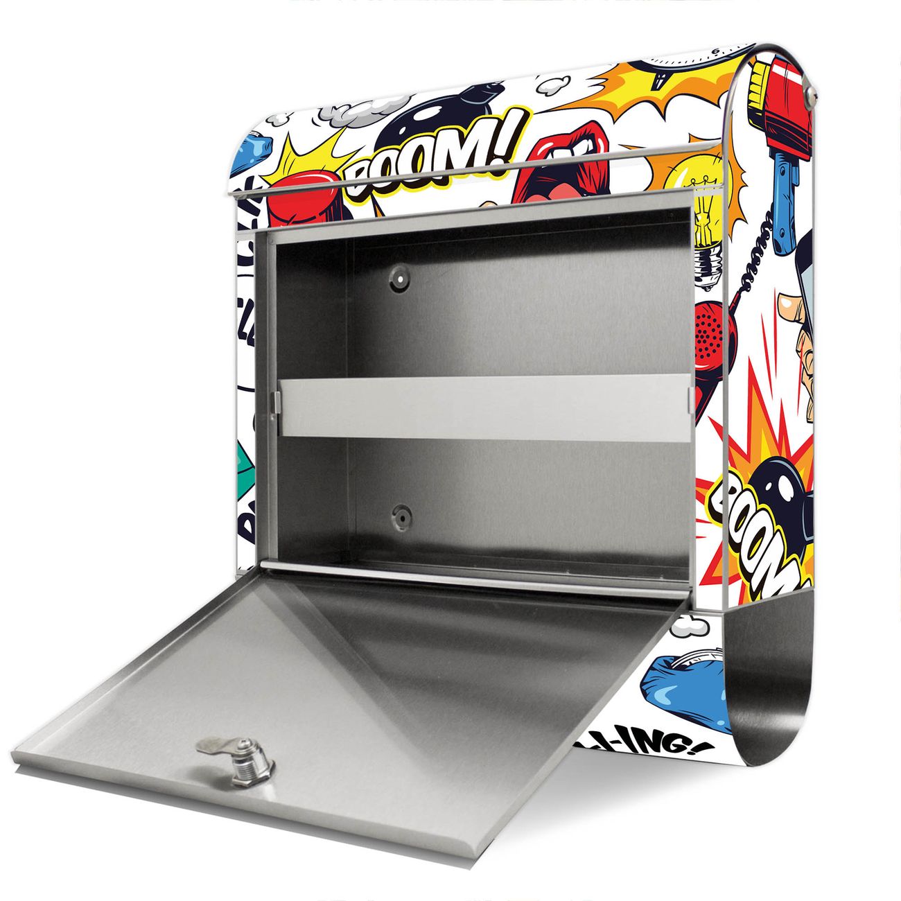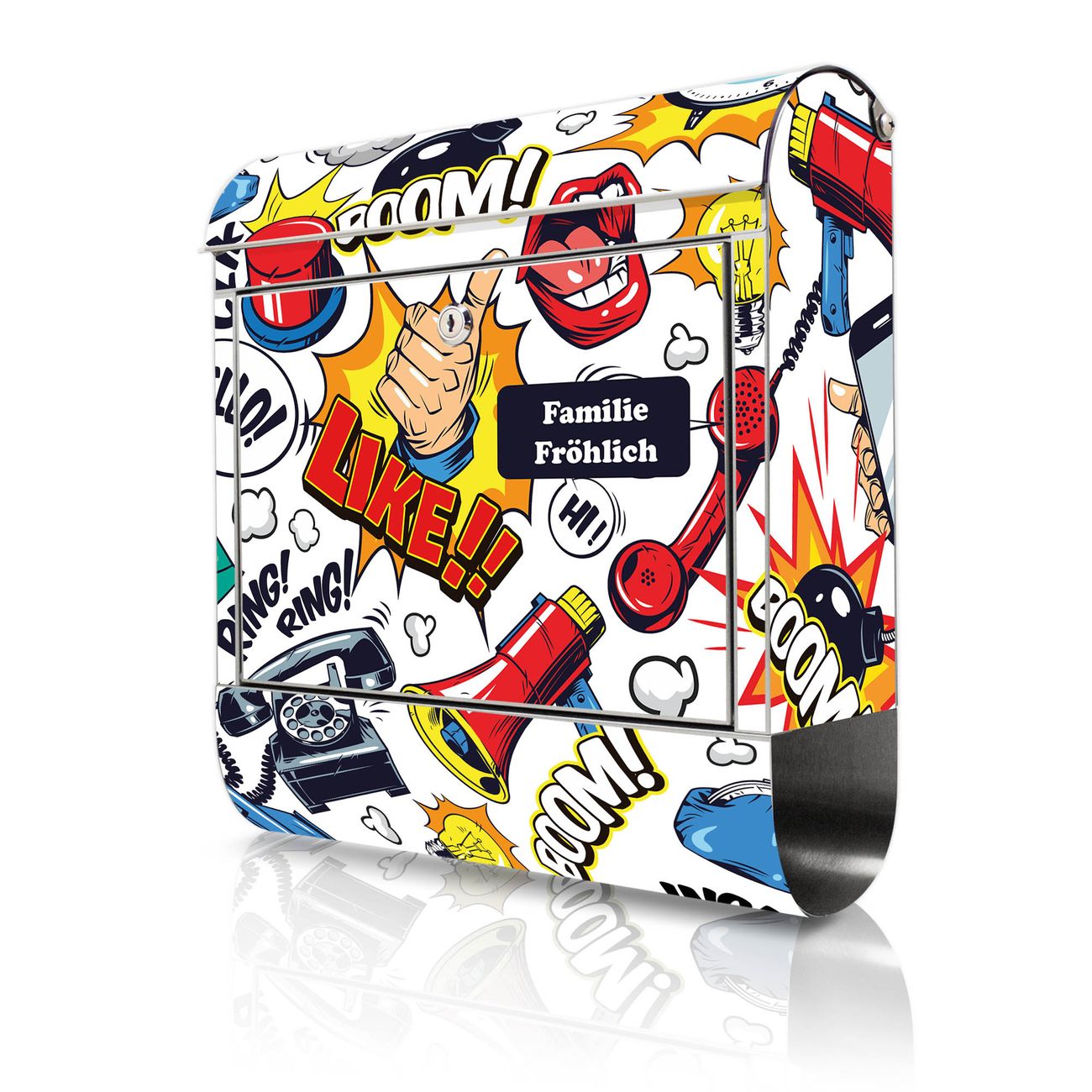 Wandbriefkasten Edelstahl Motiv Pop-Art Comic Muster