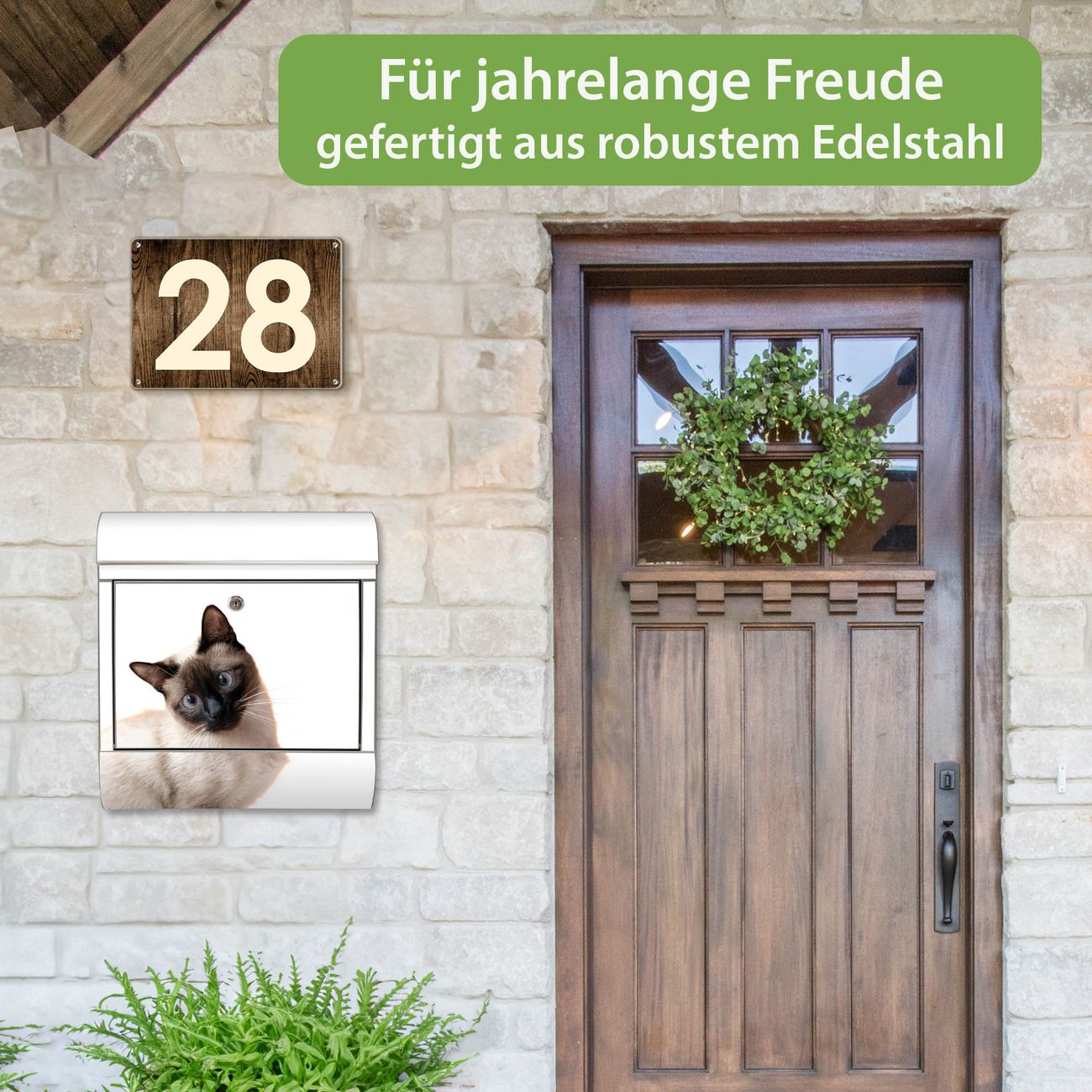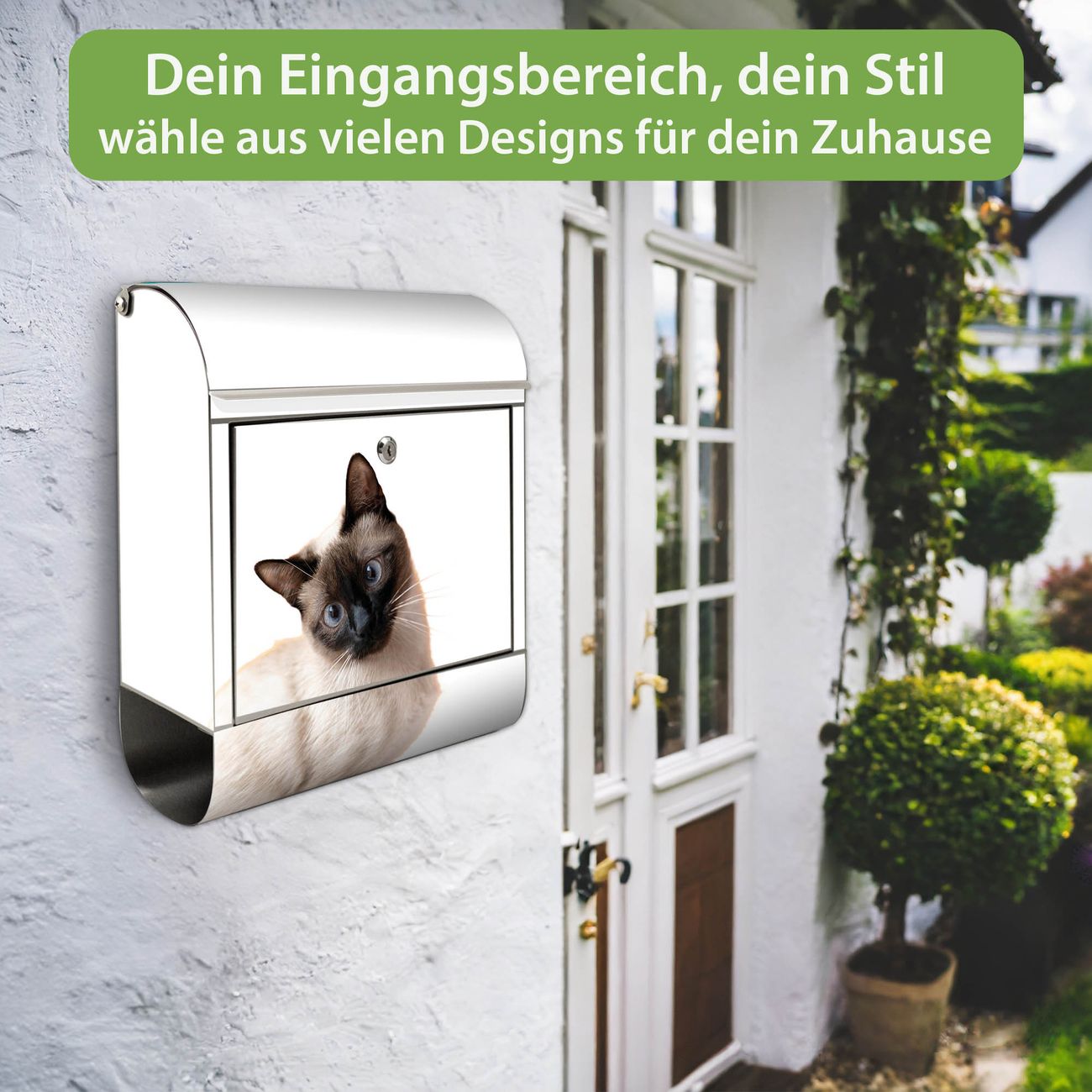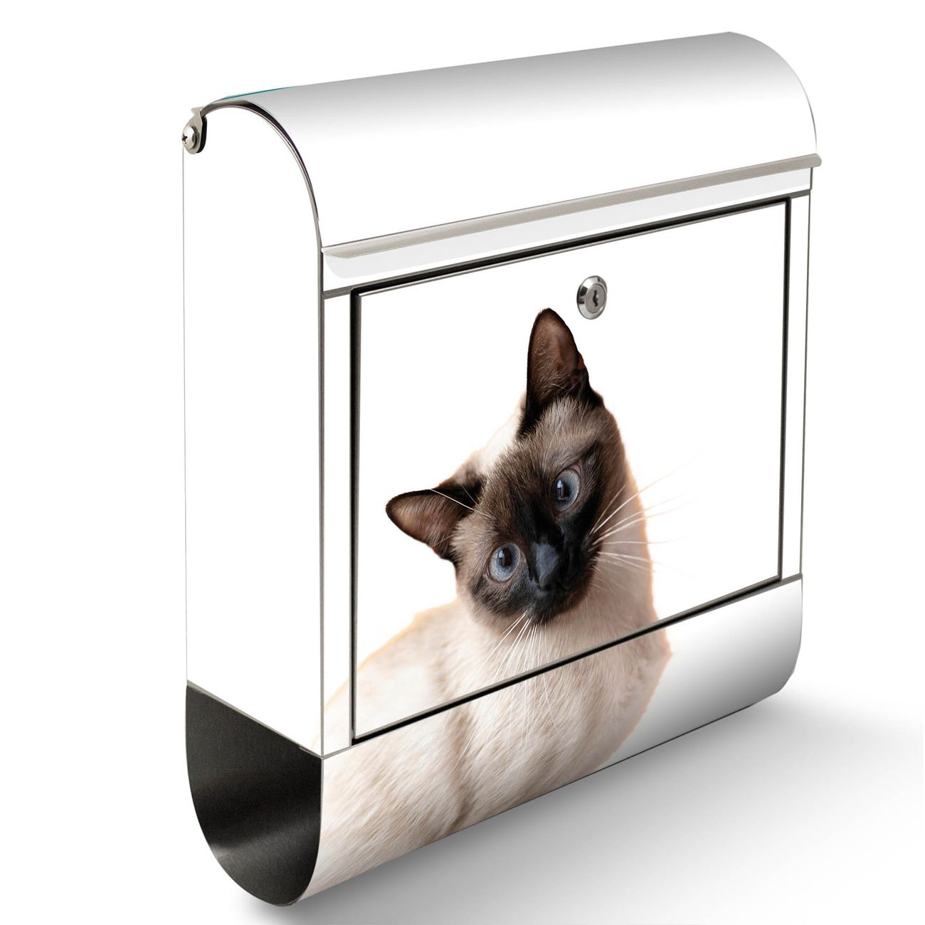 Wandbriefkasten Edelstahl Motiv Porträt einer Siamkatze