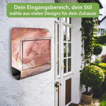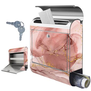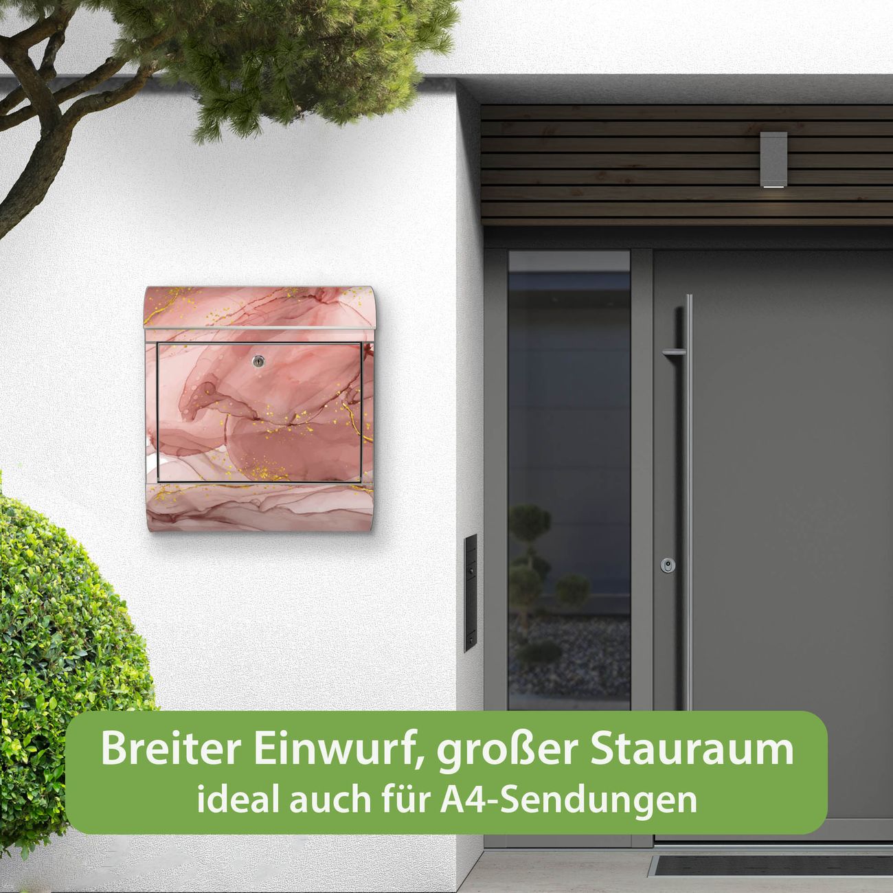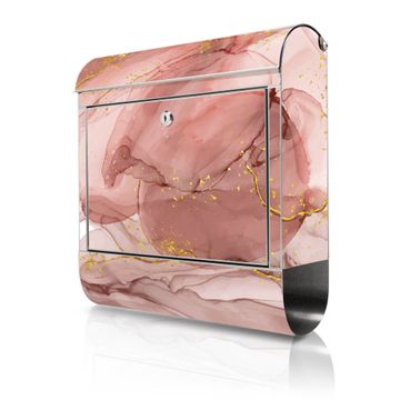 Wandbriefkasten Edelstahl Motiv Rosa Marmor mit Gold 1