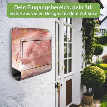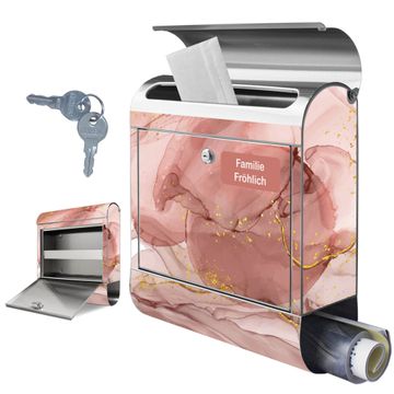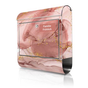 Wandbriefkasten Edelstahl Motiv Rosa Marmor mit Gold 1