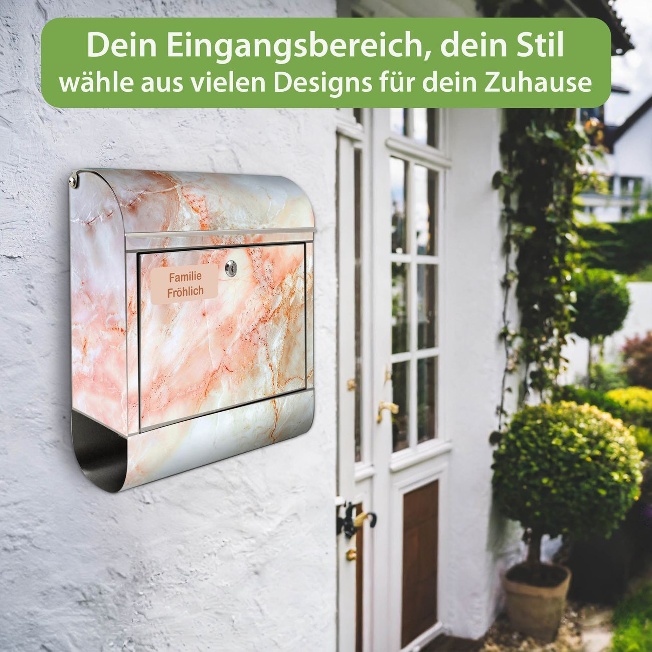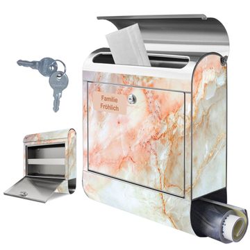 Wandbriefkasten Edelstahl Motiv Rosa Marmor