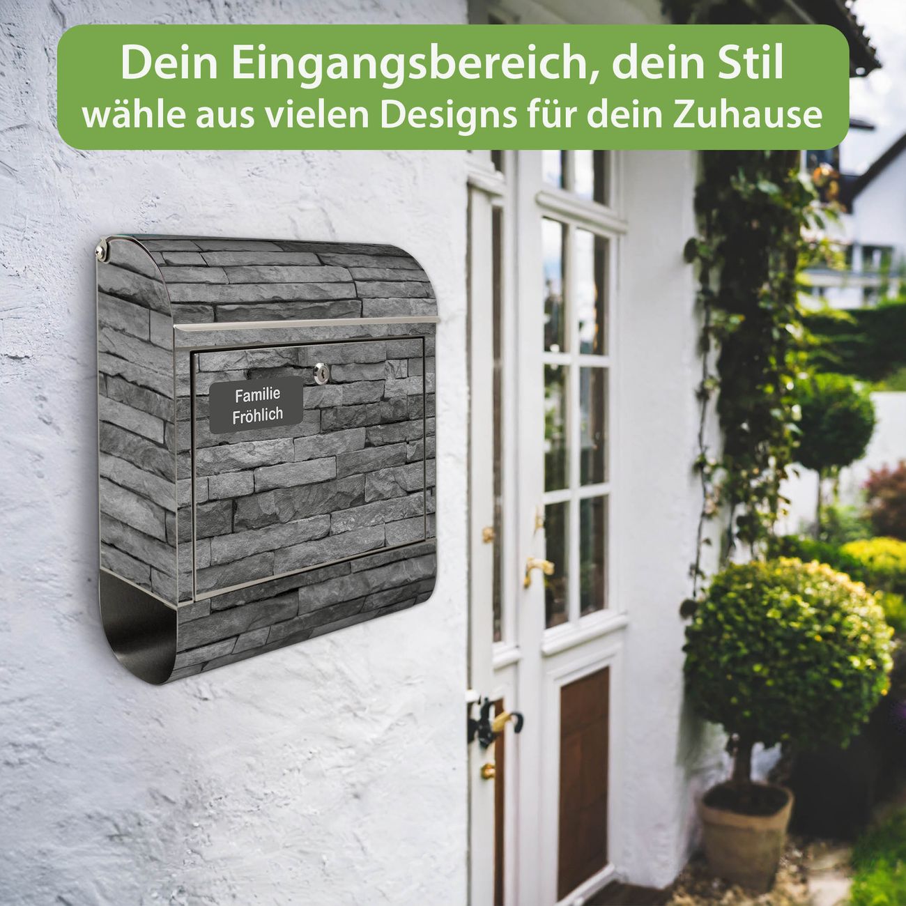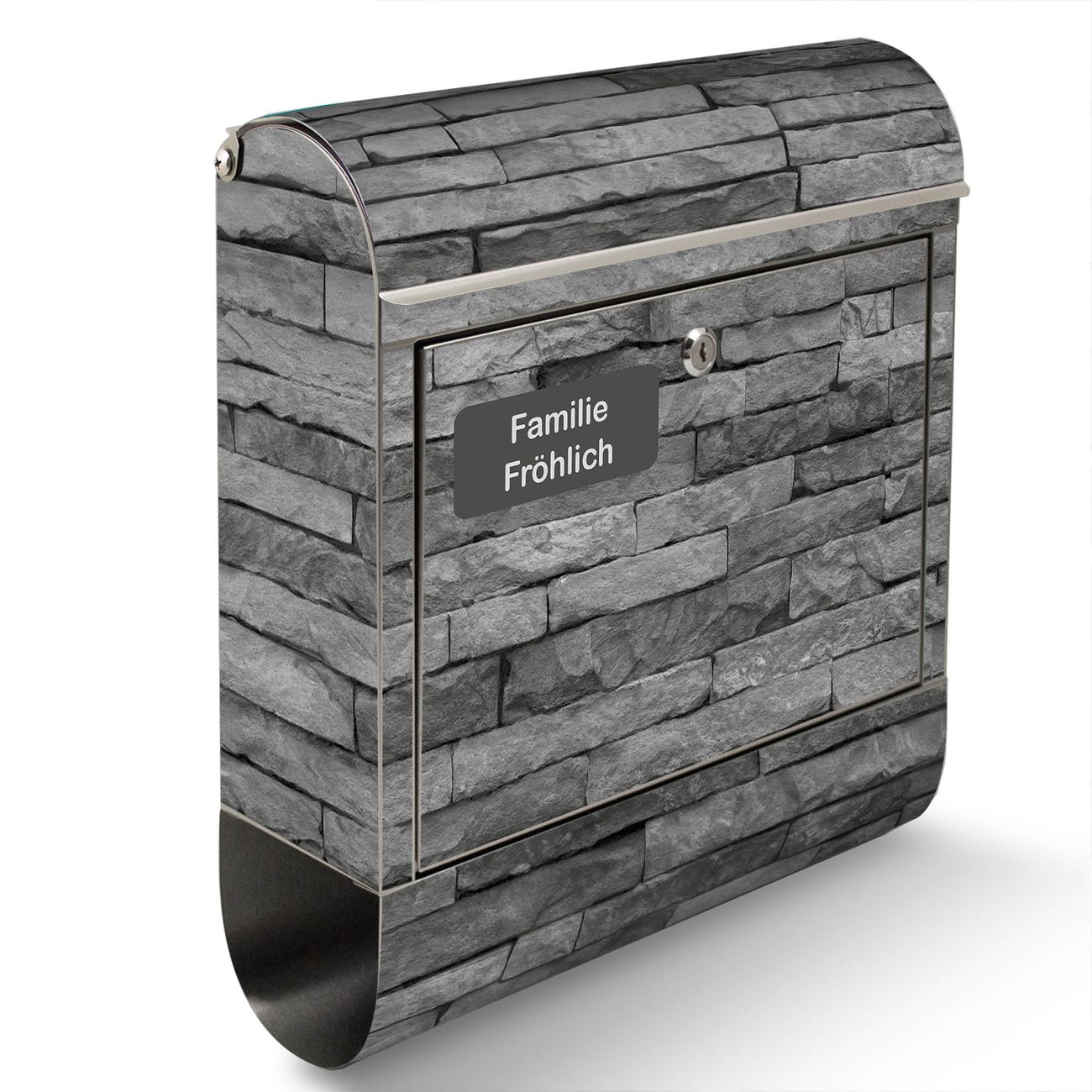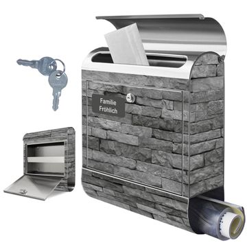 Wandbriefkasten Edelstahl Motiv Rustikale Steinwand