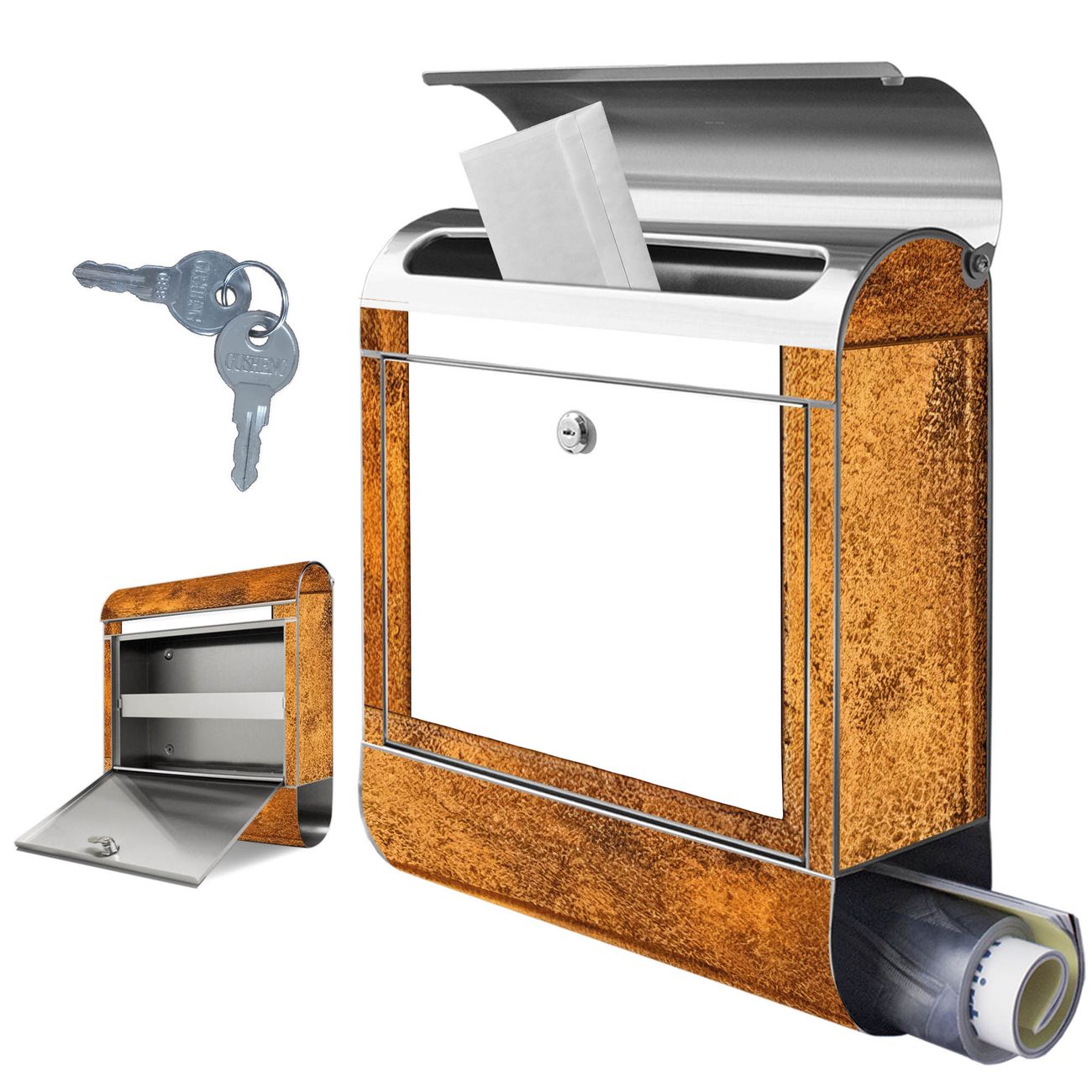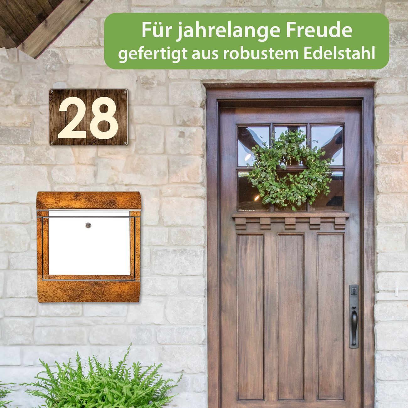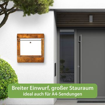 Wandbriefkasten Edelstahl Motiv Rustikaler Holzrahmen 2