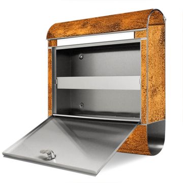 FUNKTION: Der banjado Edelstahl Briefkasten mit Motiv Motiv Rustikaler Holzrahmen 2 bietet Ihnen mit seinem Fassungsvermögen genügend Platz auch für große A4 Sendungen. Das integrierte Zeitungsfach eignet sich hervorragend um unkompliziert die Tageszeitung zu fassen. Auf Wunsch können Sie bei uns den passenden Ständer kaufen und so aus dem Wandbriefkasten einen Standbriefkasten machen. DESIGN: Der Motivbriefkasten hat ein sehr ansprechendes und ausgefallenes Design, damit entlocken Sie Ihren Nachbarn und dem Postboten ein Lächeln. Heben Sie Sich ab von der tristen grauen Masse ohne auf Funktionalität zu verzichten. DETAILS: Der Design Briefkasten mit Motiv Motiv Rustikaler Holzrahmen 2 besteht aus hochwertigem 18/0 Edelstahl. Das Motiv besteht aus einer wetter- und UV-resistenten Folie, die mit einem Schutzlaminat überzogen ist. Der Briefkasten wird mit Montagematerial und zwei Schlüsseln geliefert. NUTZEN: Sie können diesen Briefkasten sowohl als Wandbriefkasten montieren oder einen passenden Ständer auswählen und als Standbriefkasten einbetonieren. Die Größe bietet genügend Platz für Sendungen aller Art, das hochwertige Edelstahl ist rostfrei und die Motivfolie absolut wetterfest. SCHUTZ: Um Ihre Post optimal vor Witterungseinflüssen wie Starkregen zu schützen, empfehlen wir, den Briefkasten geschützt anzubringen. BANJADO: Ihr Briefkasten wird in Sachsen in einer kleinen Manufaktur von Hand veredelt. Die Motivfolie ist lösungsmittelfrei und schutzlaminiert, dies sorgt für einen langen Halt. Wir legen großen Wert auf die Verbindung von Funktionalität und Design. Sie erhalten Handarbeit aus Sachsen.