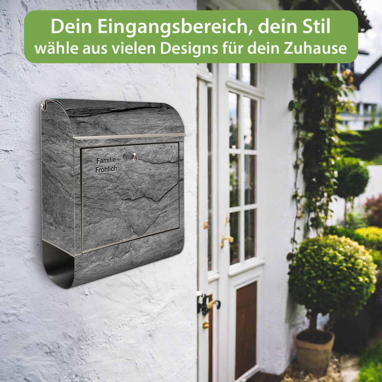 Wandbriefkasten Edelstahl Motiv Schiefer Platte 1