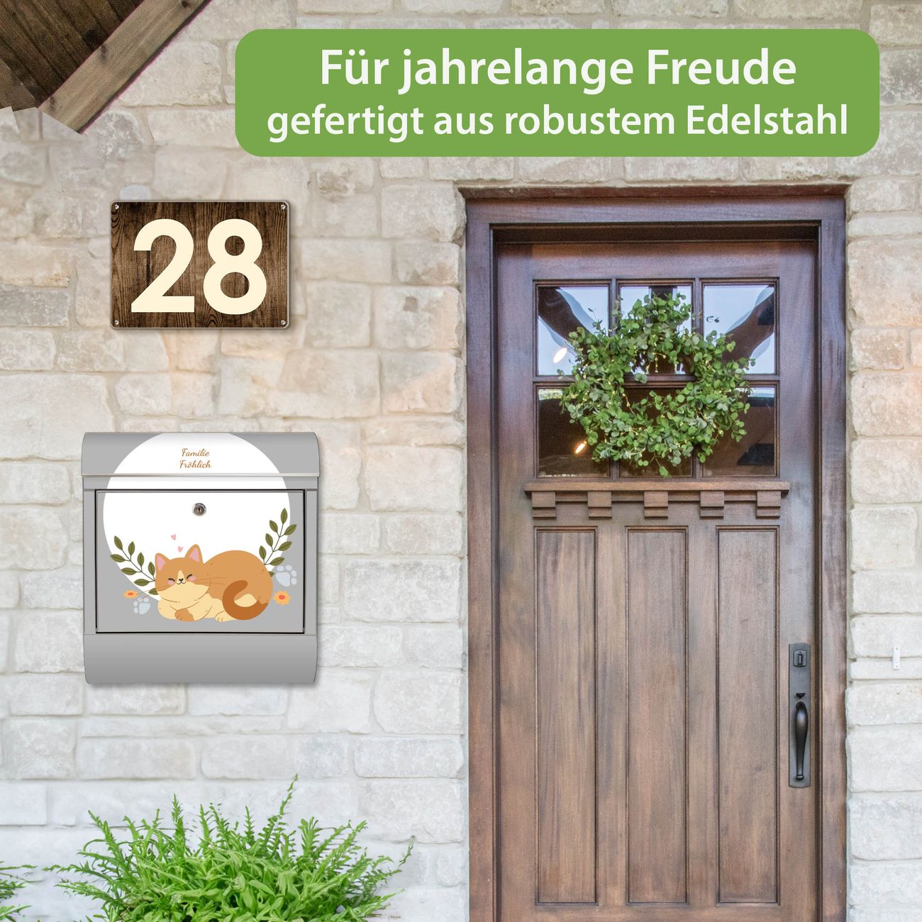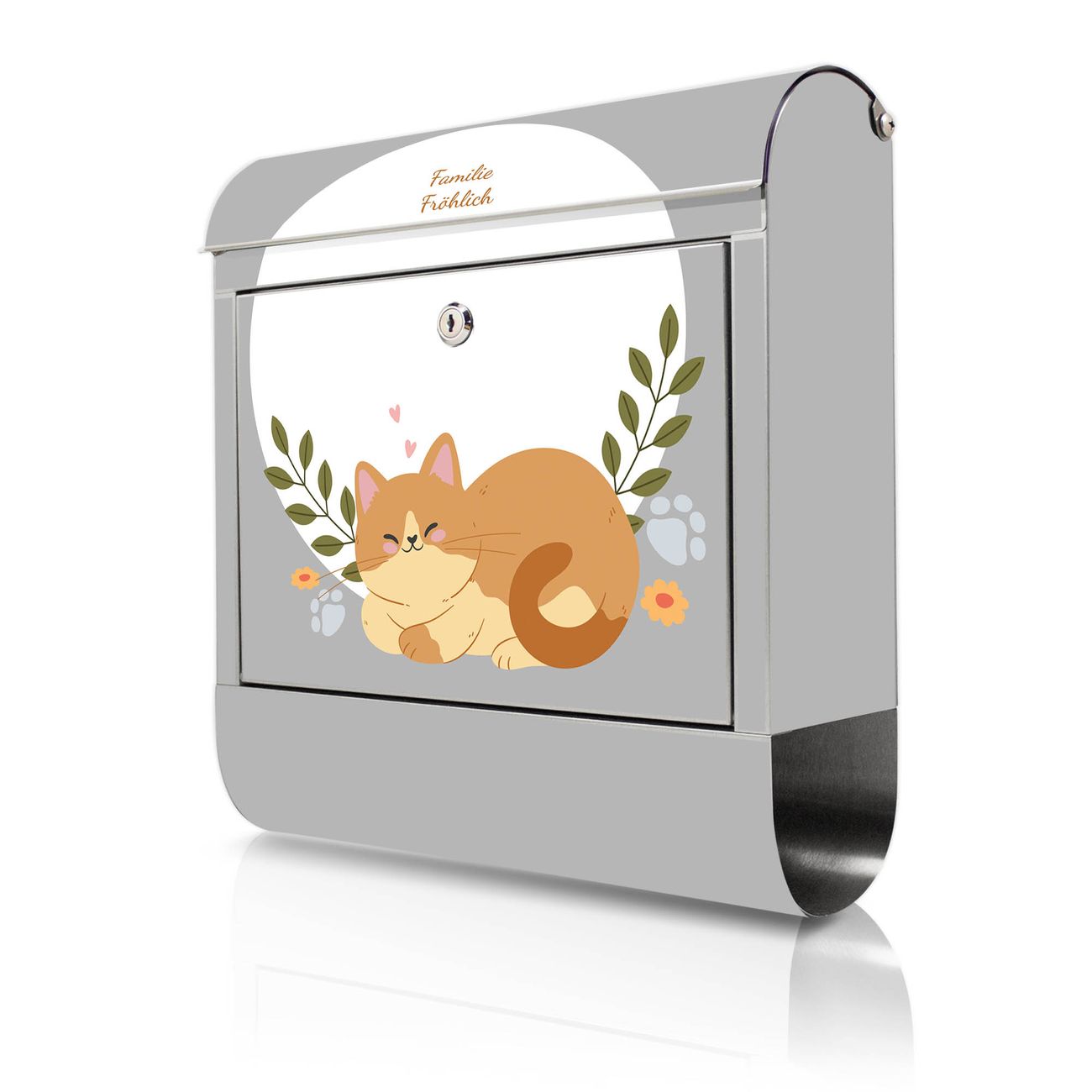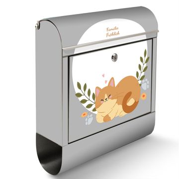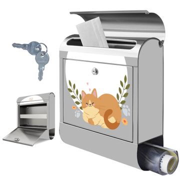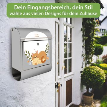 Wandbriefkasten Edelstahl Motiv Schlafende Katze im Garten
