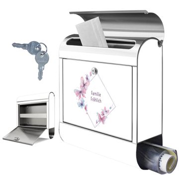 FUNKTION: Der banjado Edelstahl Briefkasten mit Motiv Motiv Schmetterlingsgarten 2 bietet Ihnen mit seinem Fassungsvermögen genügend Platz auch für große A4 Sendungen. Das integrierte Zeitungsfach eignet sich hervorragend um unkompliziert die Tageszeitung zu fassen. Auf Wunsch können Sie bei uns den passenden Ständer kaufen und so aus dem Wandbriefkasten einen Standbriefkasten machen. DESIGN: Der Motivbriefkasten hat ein sehr ansprechendes und ausgefallenes Design, damit entlocken Sie Ihren Nachbarn und dem Postboten ein Lächeln. Heben Sie Sich ab von der tristen grauen Masse ohne auf Funktionalität zu verzichten. DETAILS: Der Design Briefkasten mit Motiv Motiv Schmetterlingsgarten 2 besteht aus hochwertigem 18/0 Edelstahl. Das Motiv besteht aus einer wetter- und UV-resistenten Folie, die mit einem Schutzlaminat überzogen ist. Der Briefkasten wird mit Montagematerial und zwei Schlüsseln geliefert. NUTZEN: Sie können diesen Briefkasten sowohl als Wandbriefkasten montieren oder einen passenden Ständer auswählen und als Standbriefkasten einbetonieren. Die Größe bietet genügend Platz für Sendungen aller Art, das hochwertige Edelstahl ist rostfrei und die Motivfolie absolut wetterfest. SCHUTZ: Um Ihre Post optimal vor Witterungseinflüssen wie Starkregen zu schützen, empfehlen wir, den Briefkasten geschützt anzubringen. BANJADO: Ihr Briefkasten wird in Sachsen in einer kleinen Manufaktur von Hand veredelt. Die Motivfolie ist lösungsmittelfrei und schutzlaminiert, dies sorgt für einen langen Halt. Wir legen großen Wert auf die Verbindung von Funktionalität und Design. Sie erhalten Handarbeit aus Sachsen.