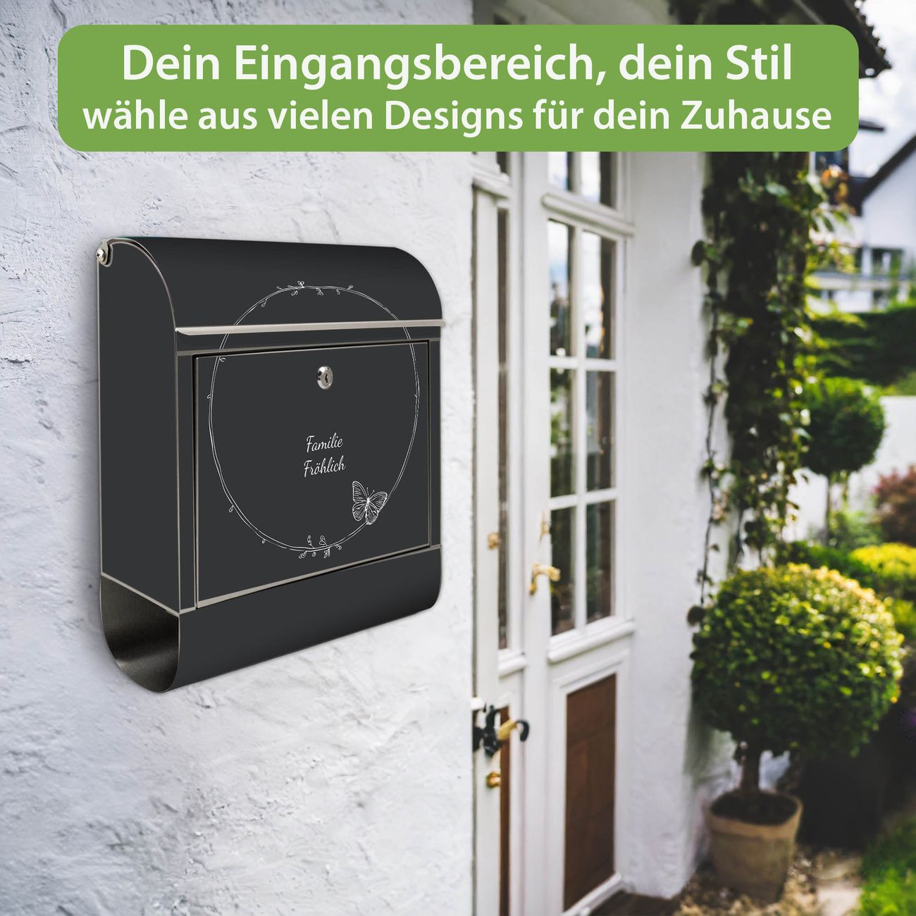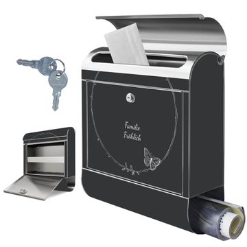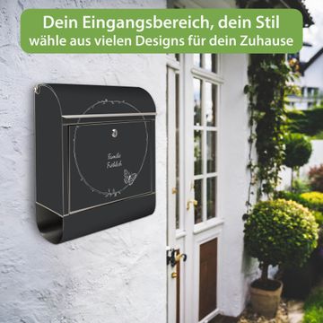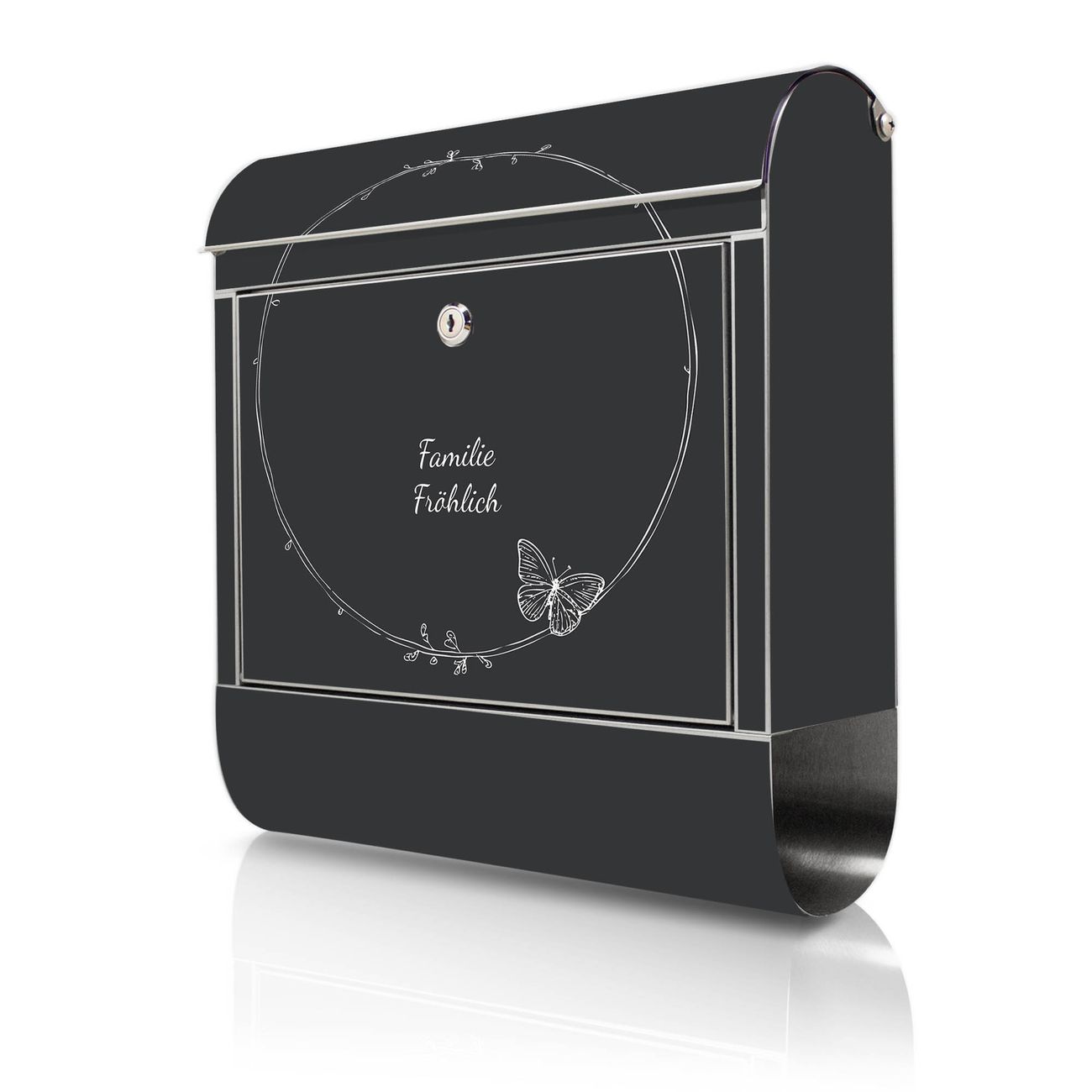 Wandbriefkasten Edelstahl Motiv Schmetterlingskranz