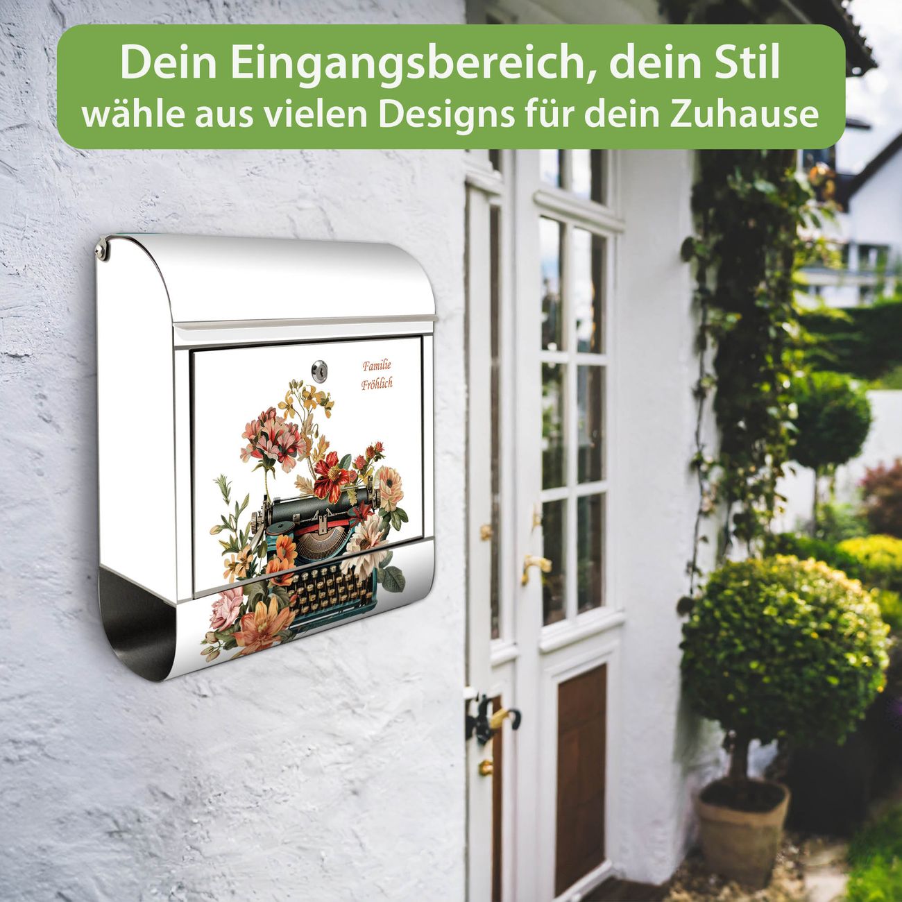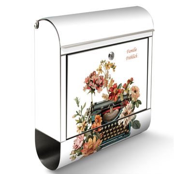 Wandbriefkasten Edelstahl Motiv Schreibmaschine Vintage