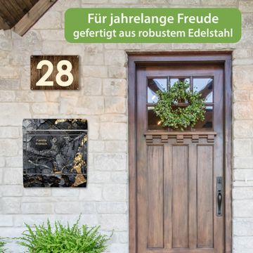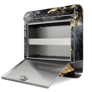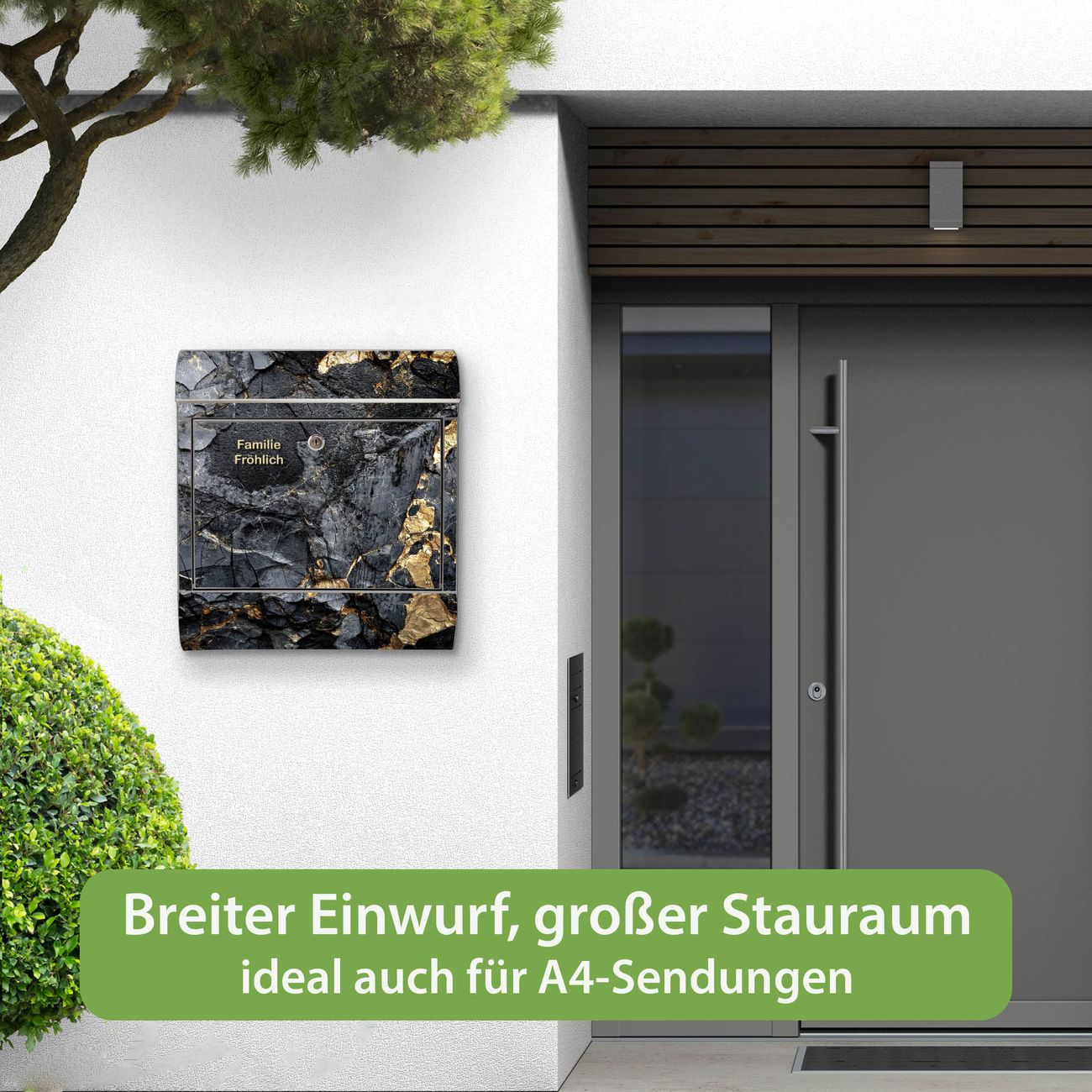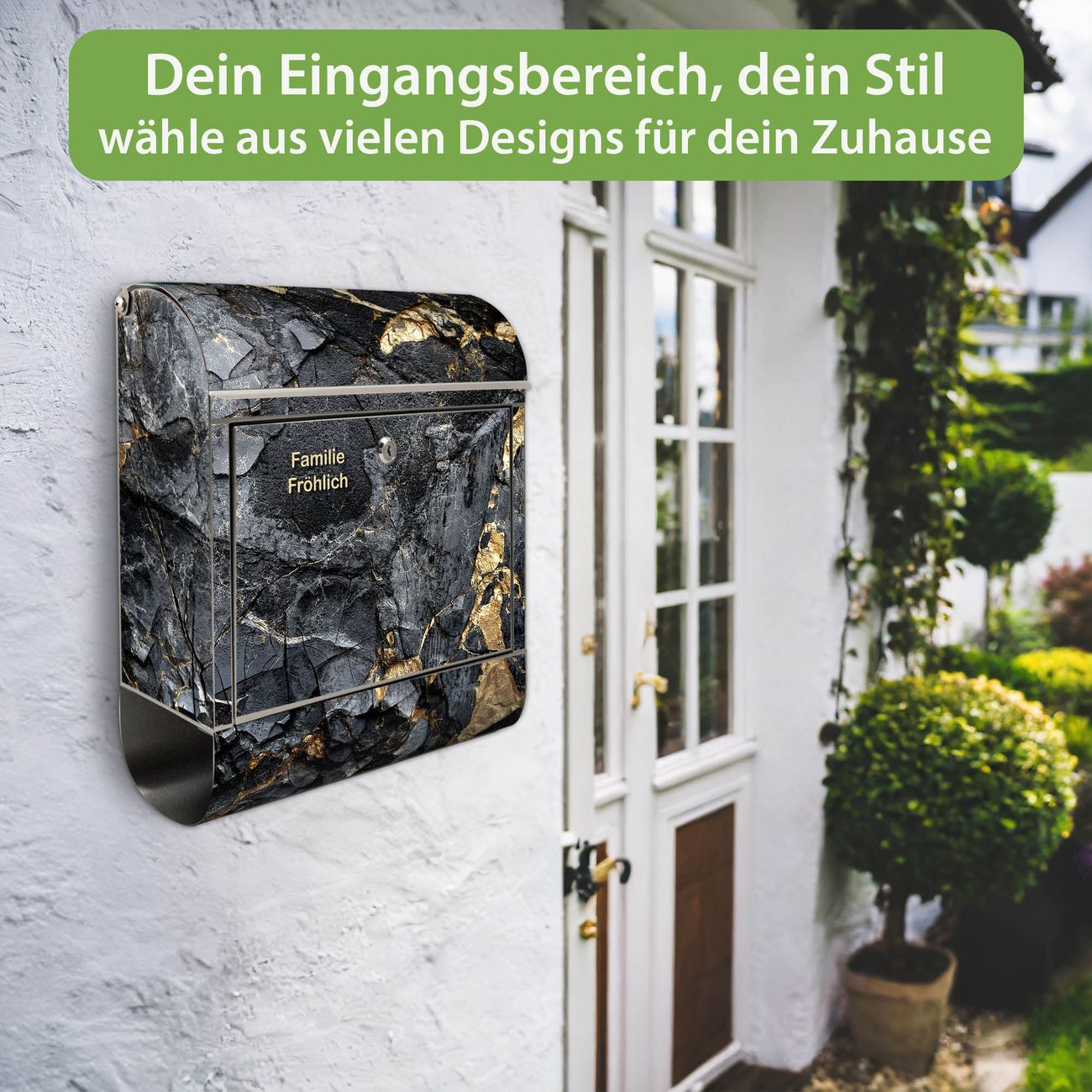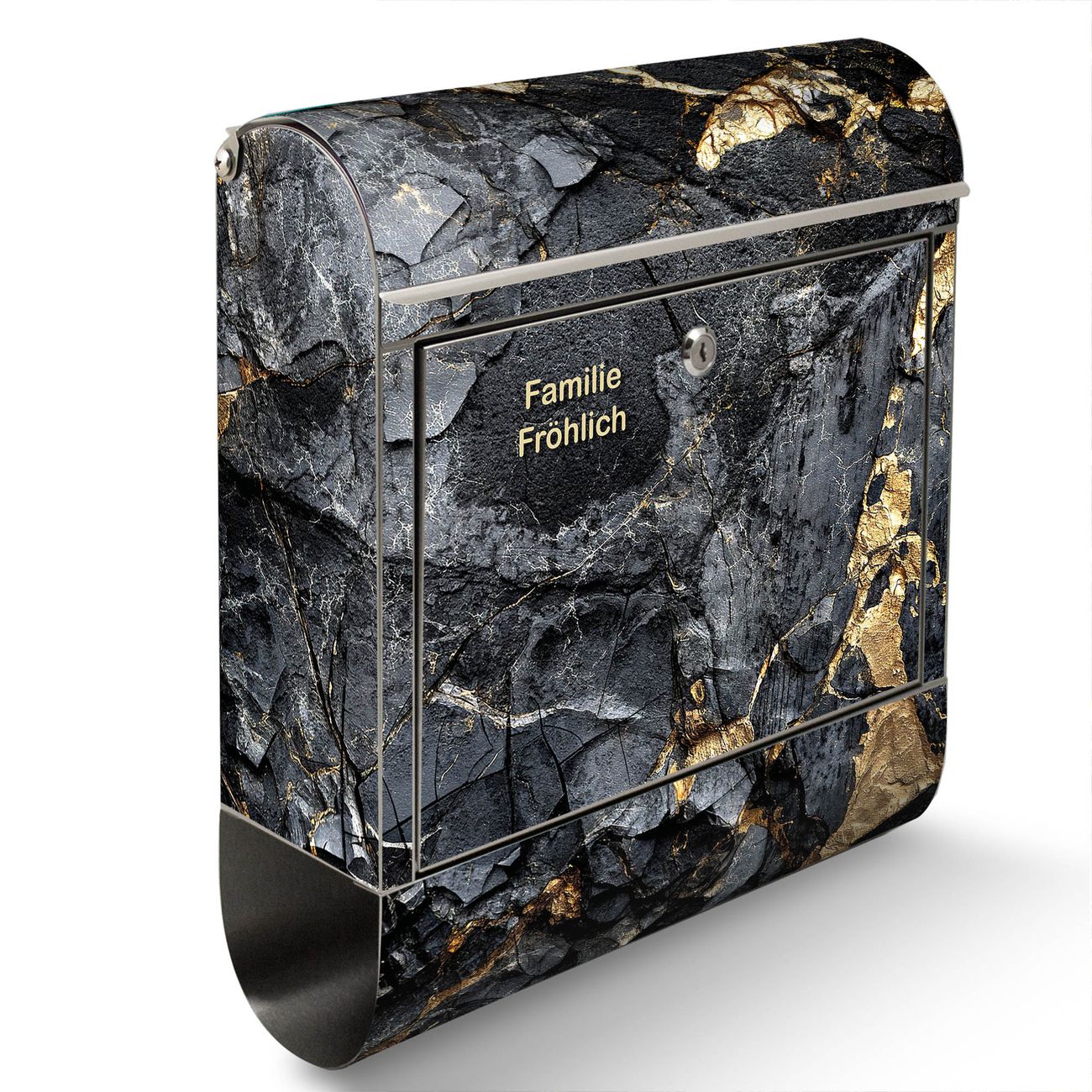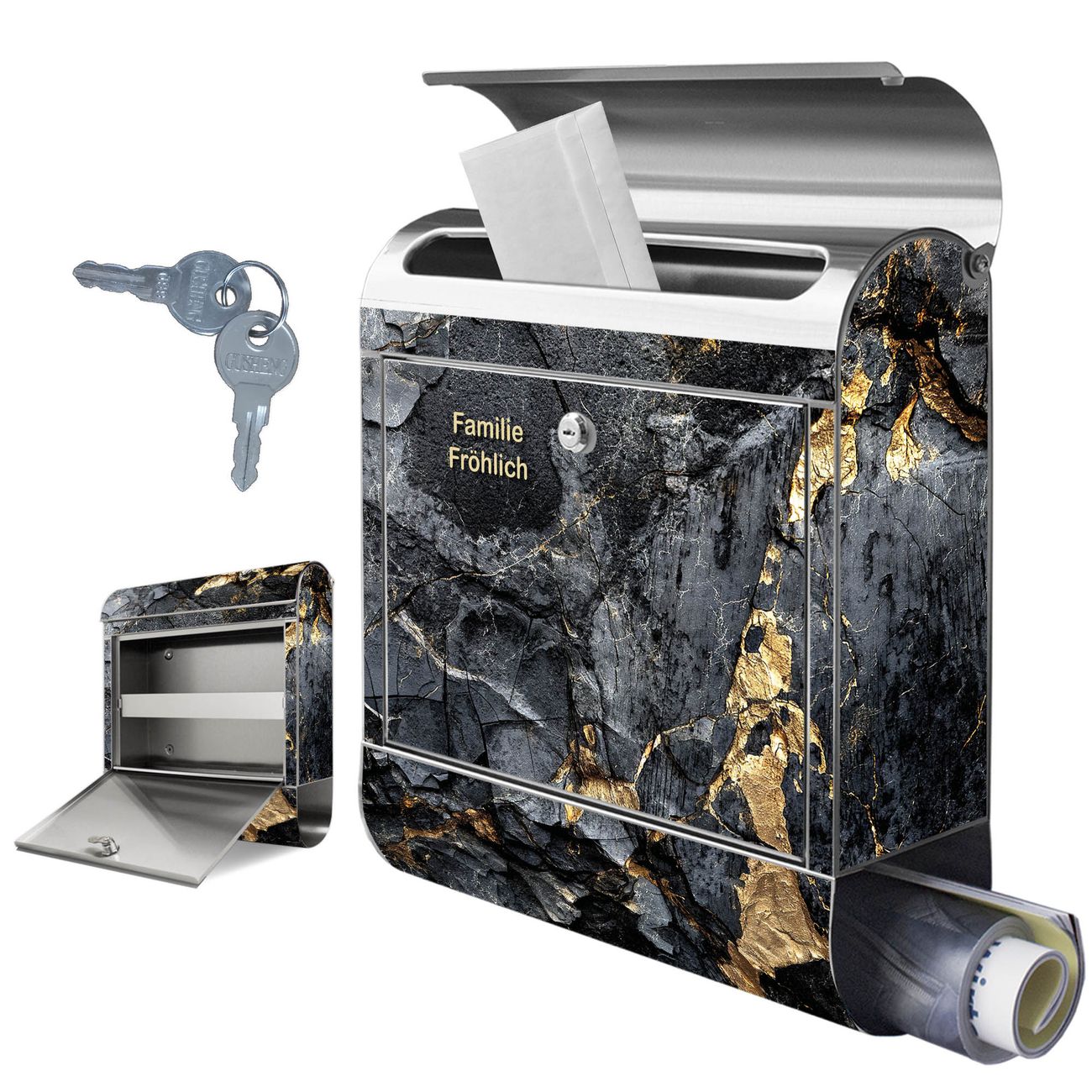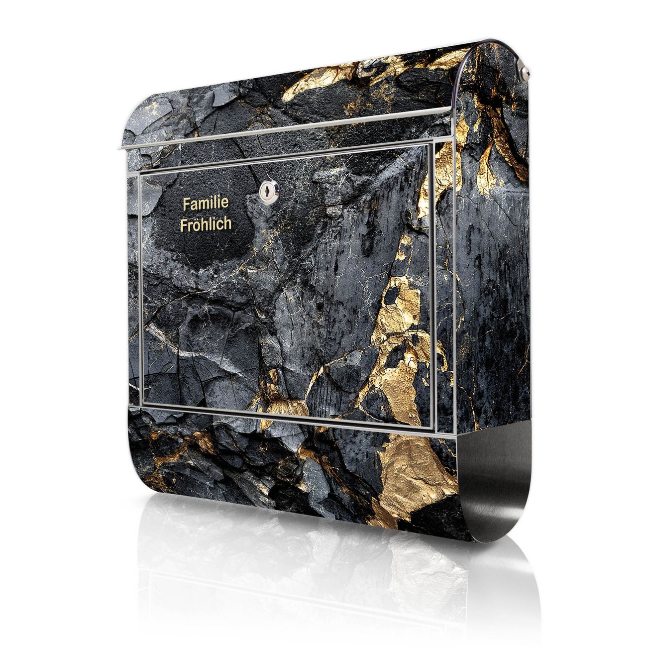 Wandbriefkasten Edelstahl Motiv Schwarzer Marmor mit Gold 1