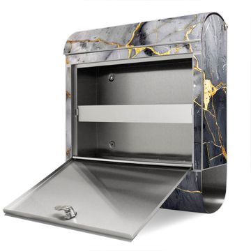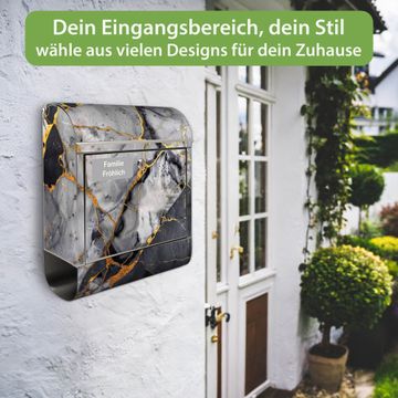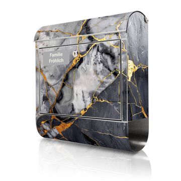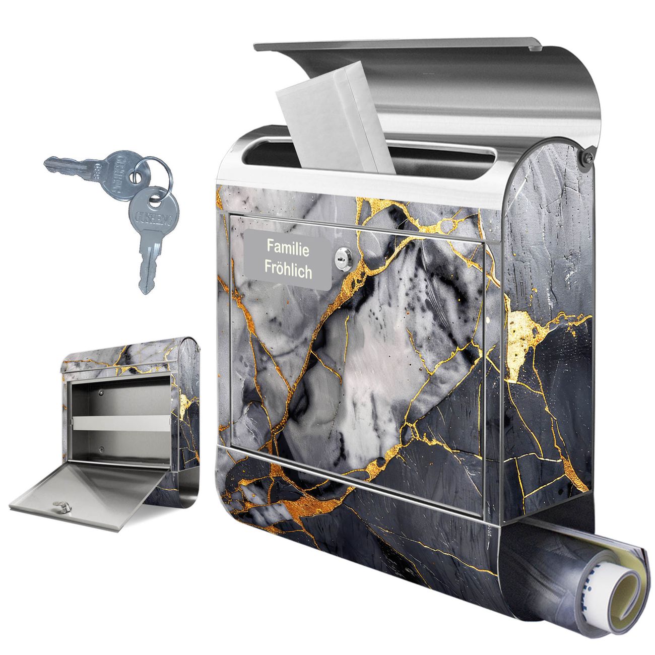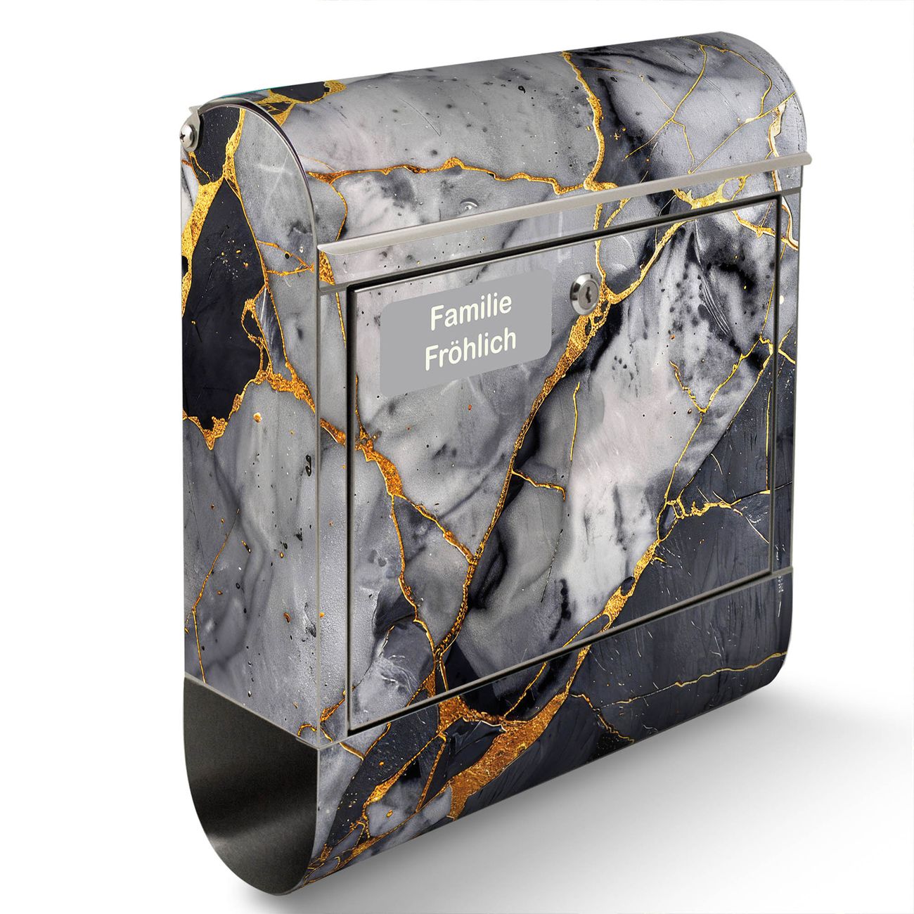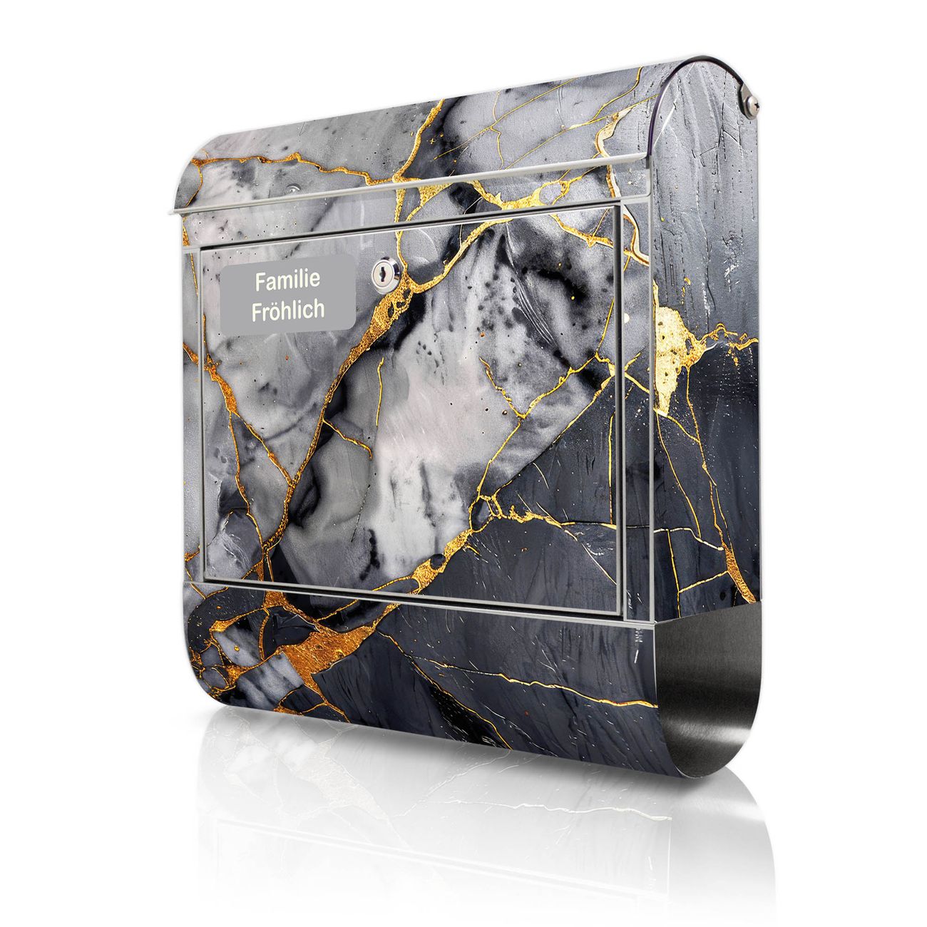 Wandbriefkasten Edelstahl Motiv Schwarzer Marmor mit Gold 2