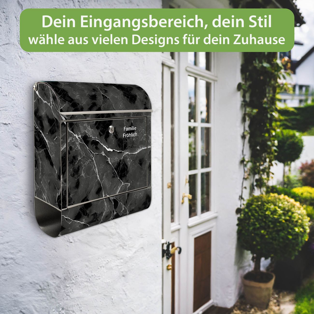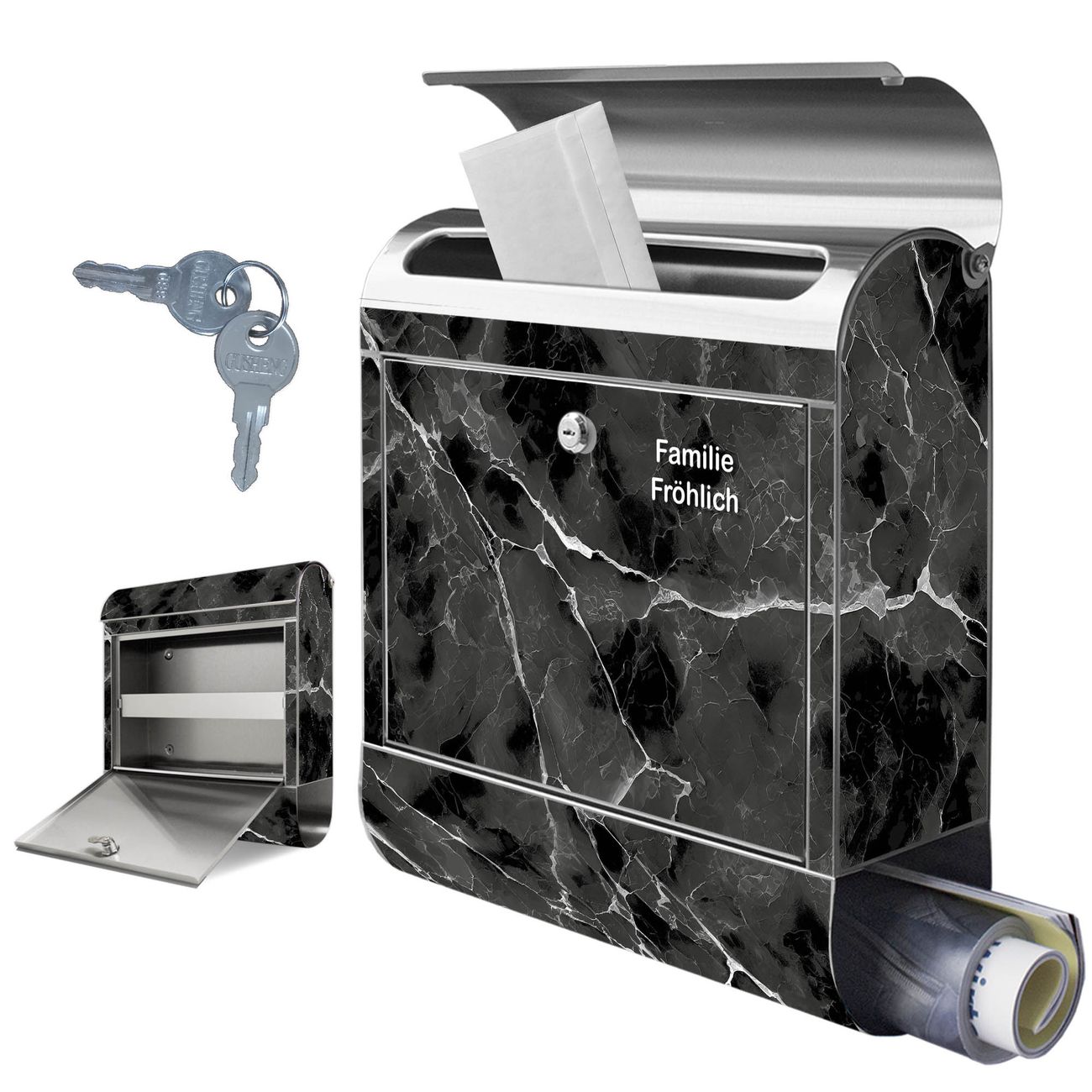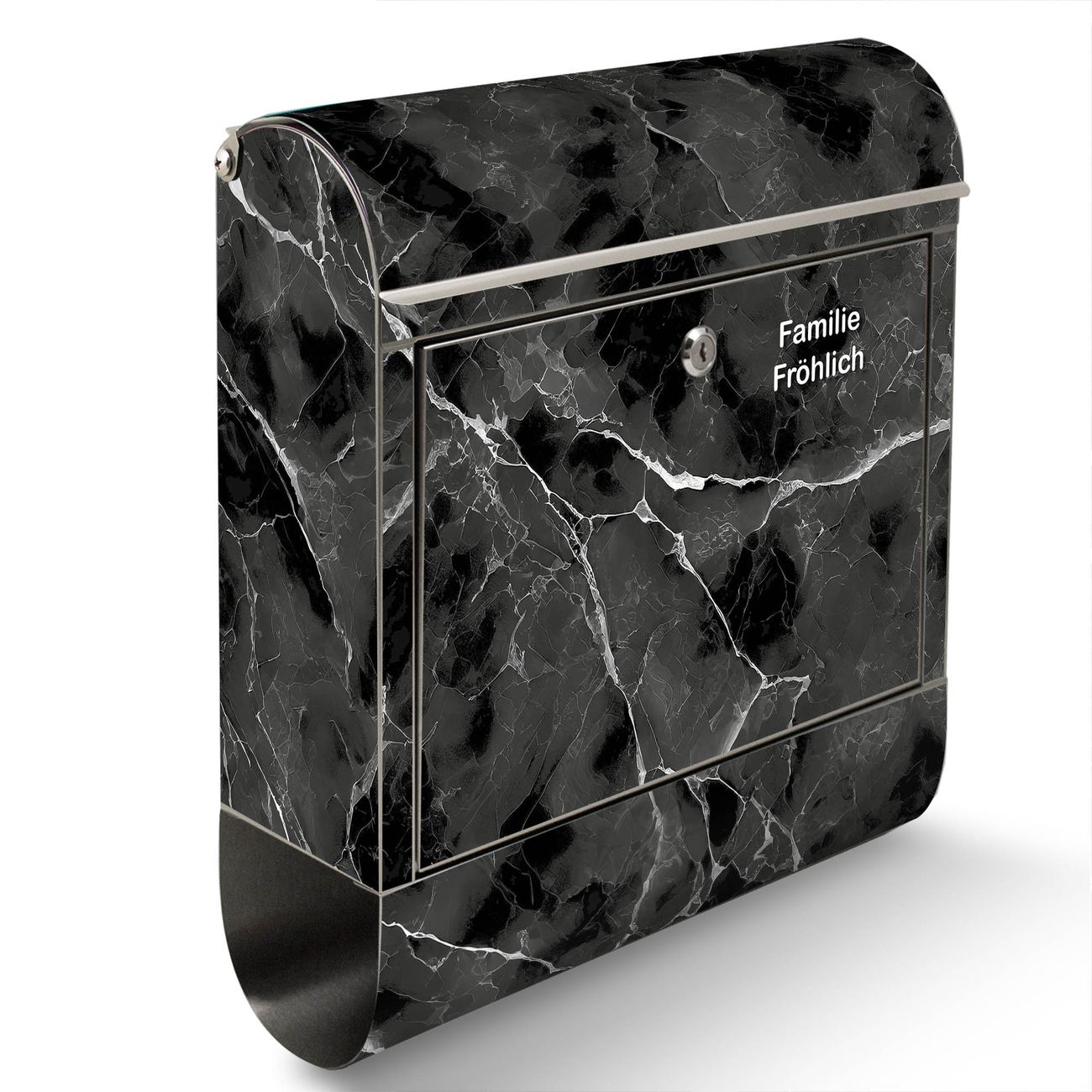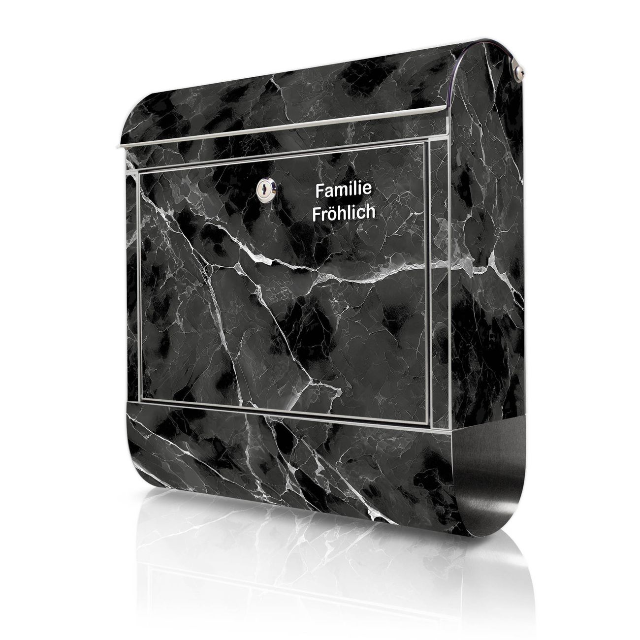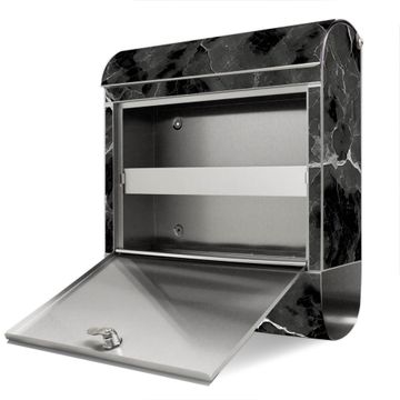 Wandbriefkasten Edelstahl Motiv Schwarzgrauer Marmor