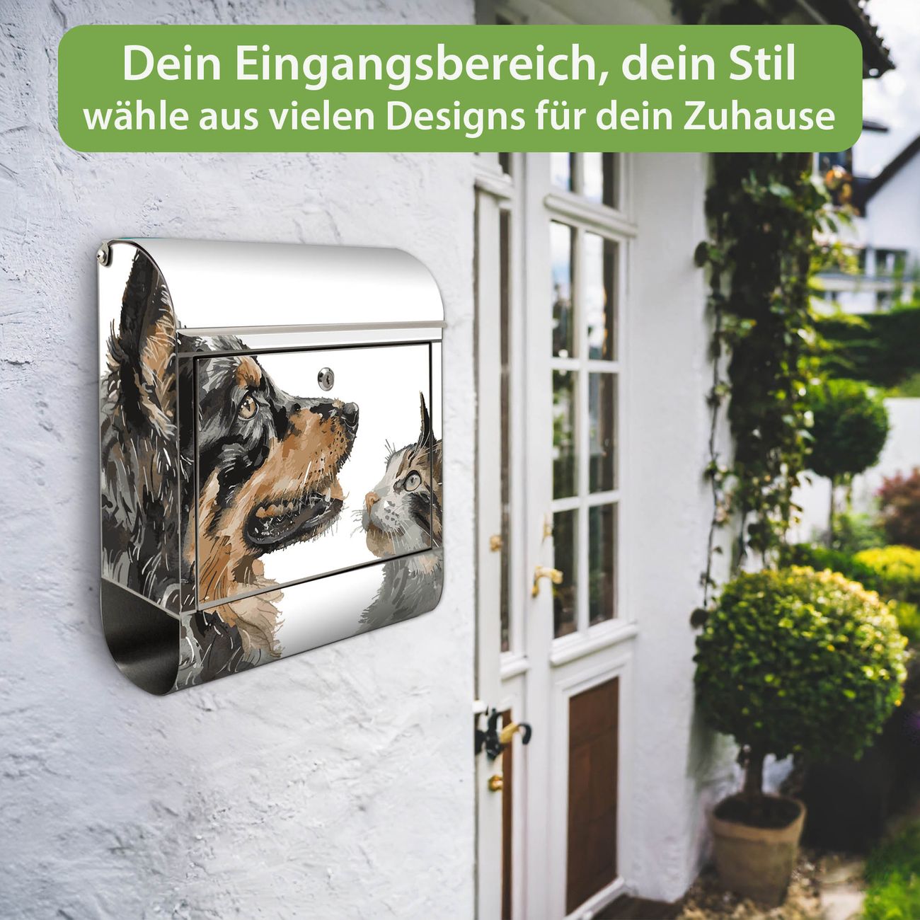 Wandbriefkasten Edelstahl Motiv Tierische Begegnung