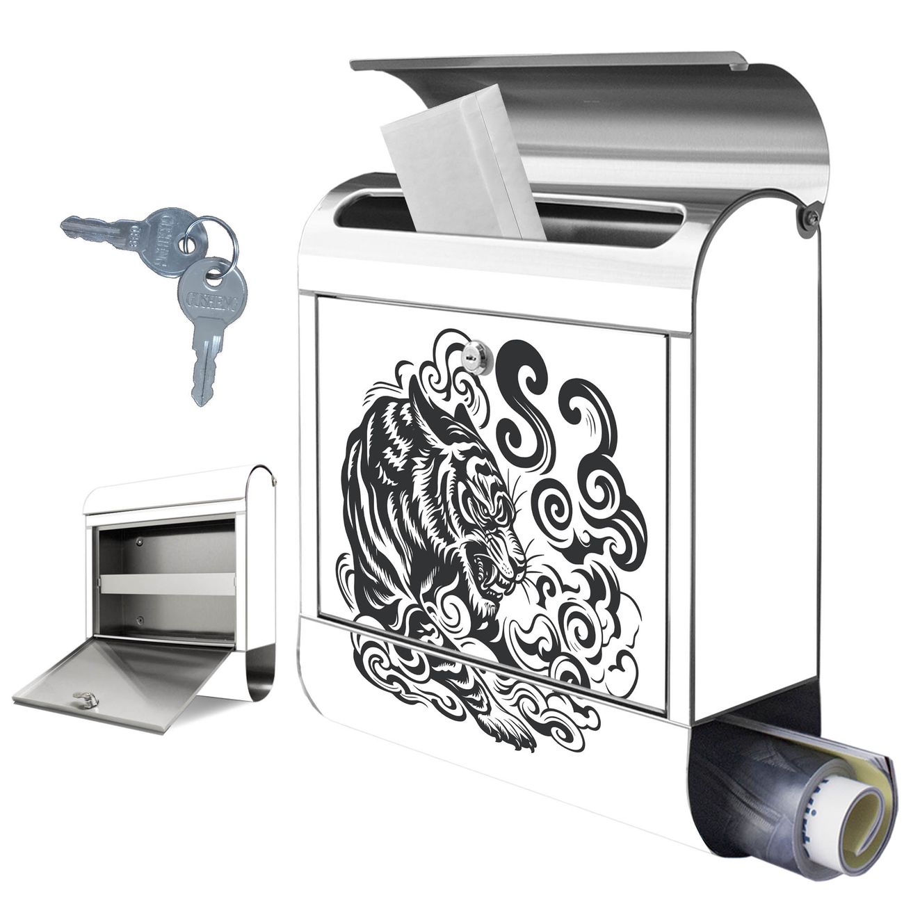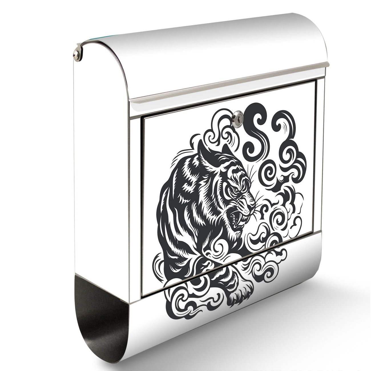 Wandbriefkasten Edelstahl Motiv Tiger Silhouette