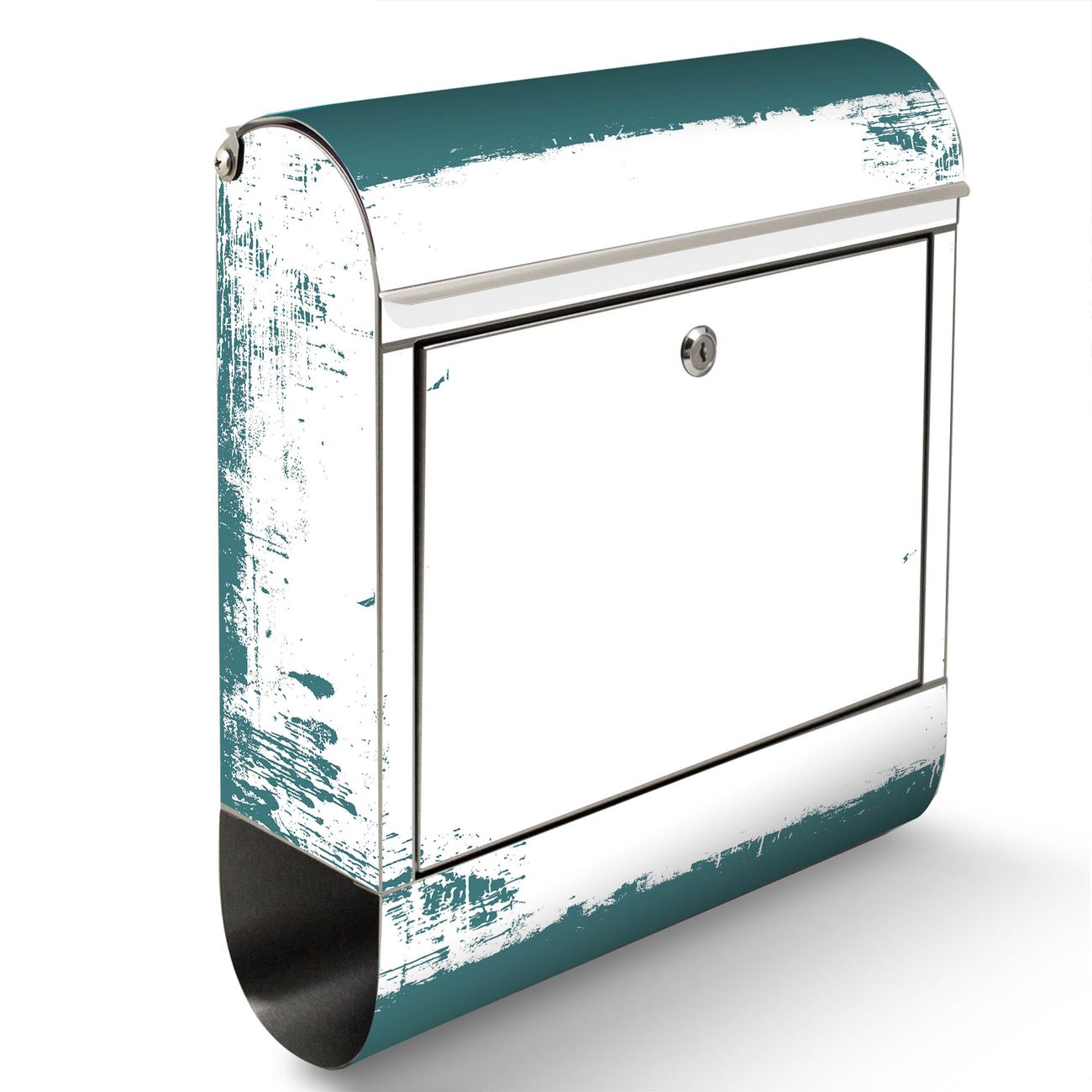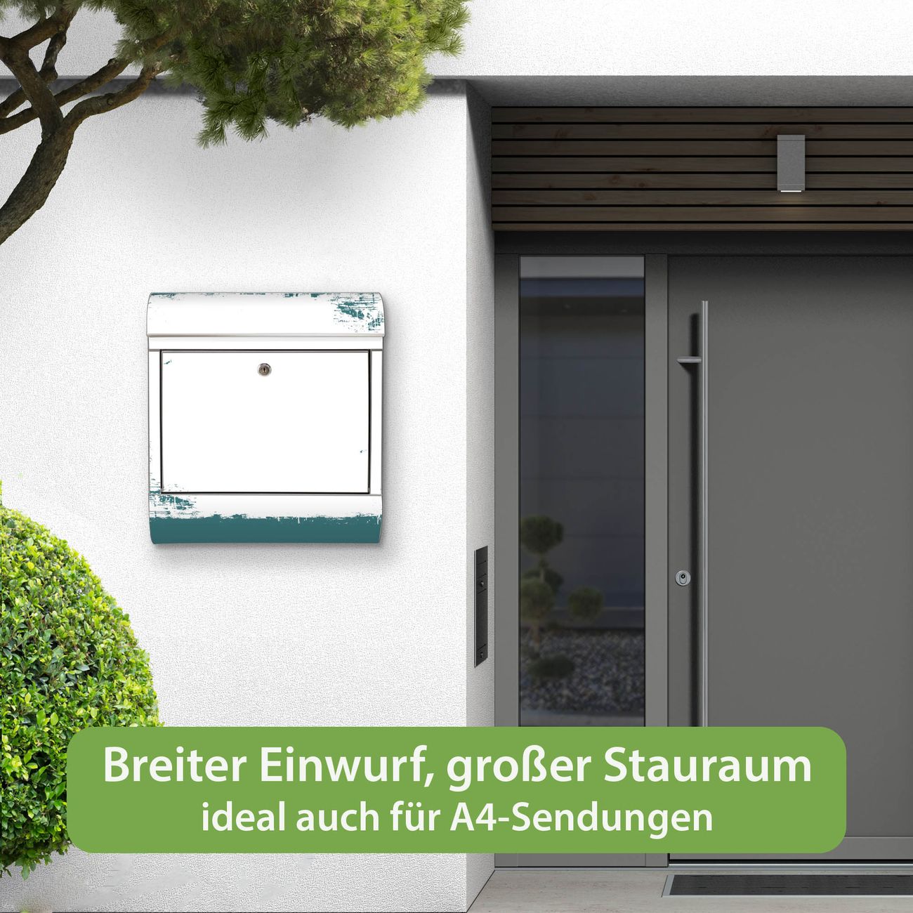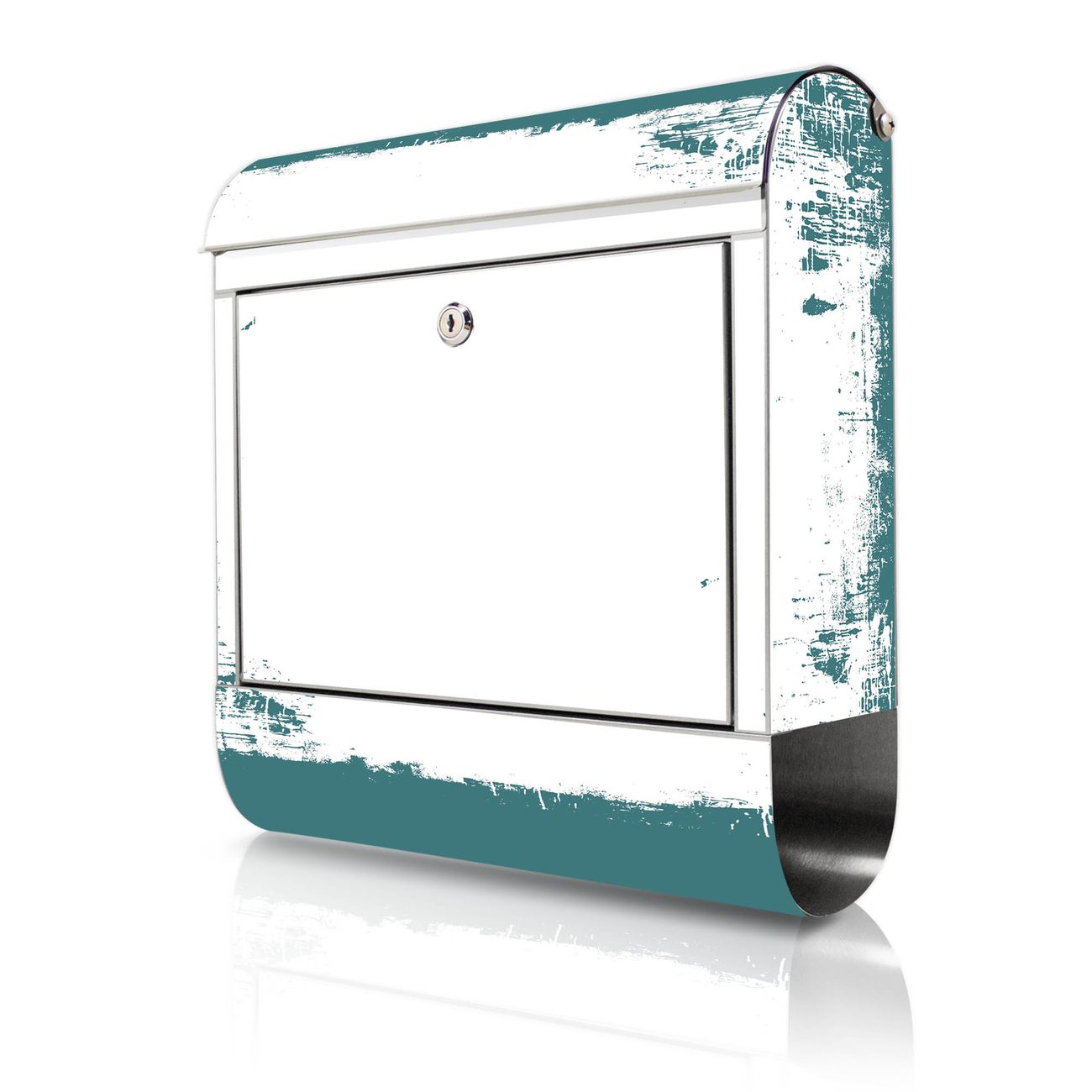 Wandbriefkasten Edelstahl Motiv Türkis-Weiße Rahmenstruktur