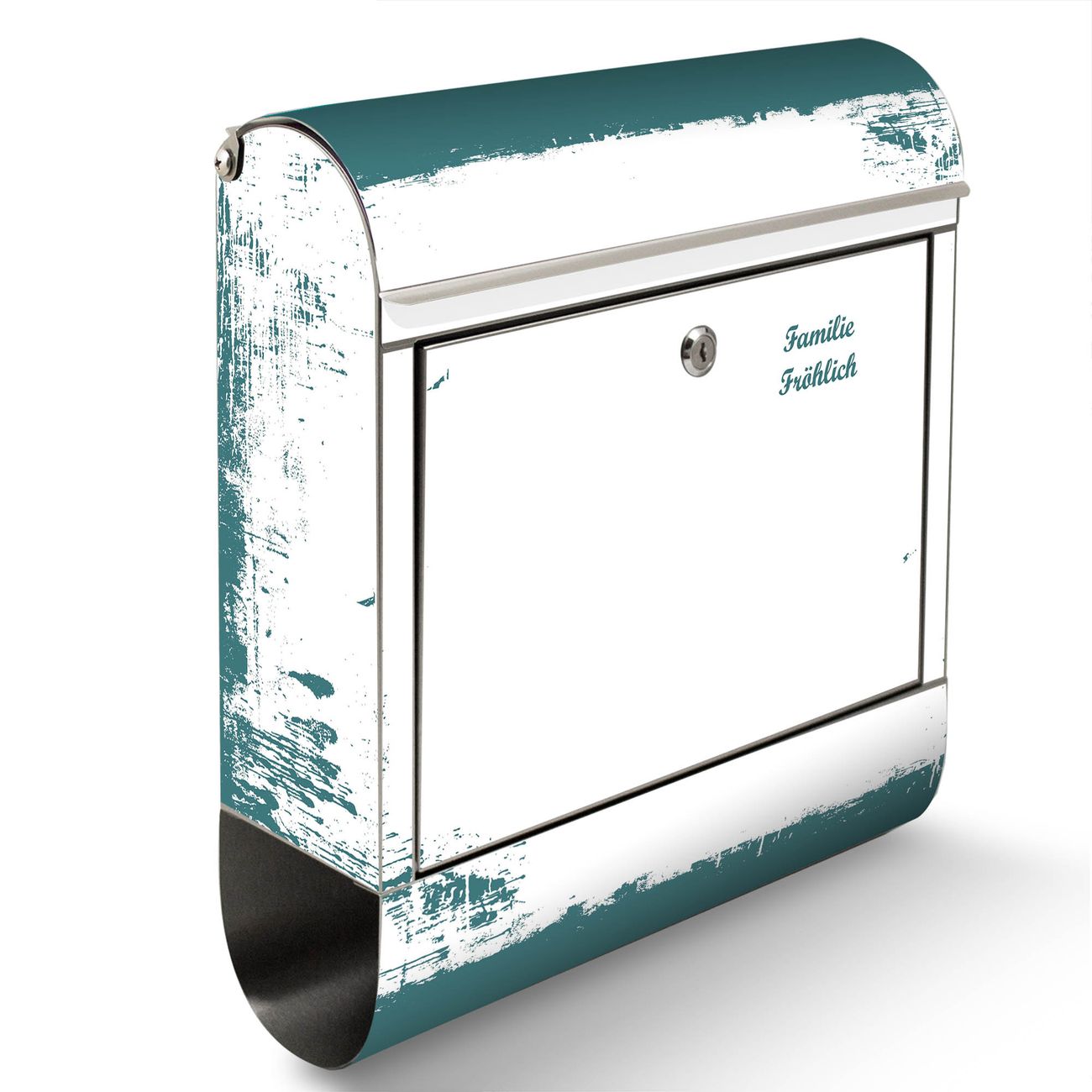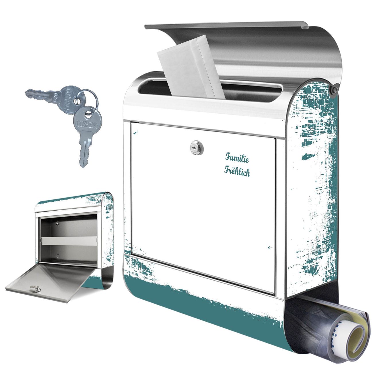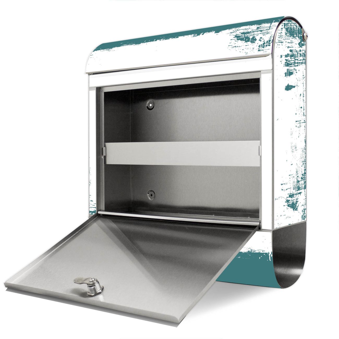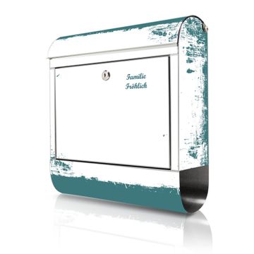 Wandbriefkasten Edelstahl Motiv Türkis-Weiße Rahmenstruktur