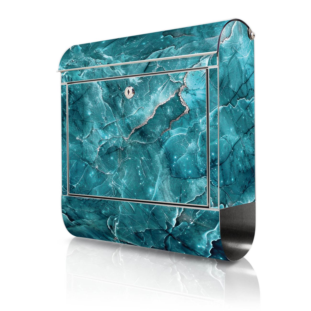 Wandbriefkasten Edelstahl Motiv Türkiser Marmor