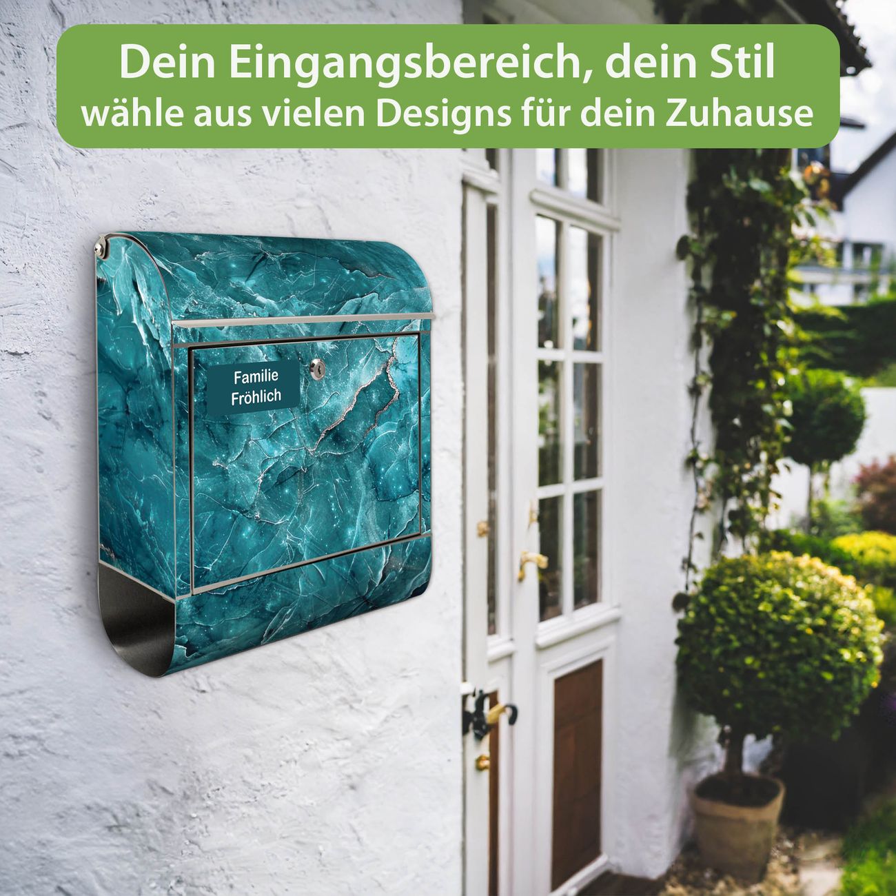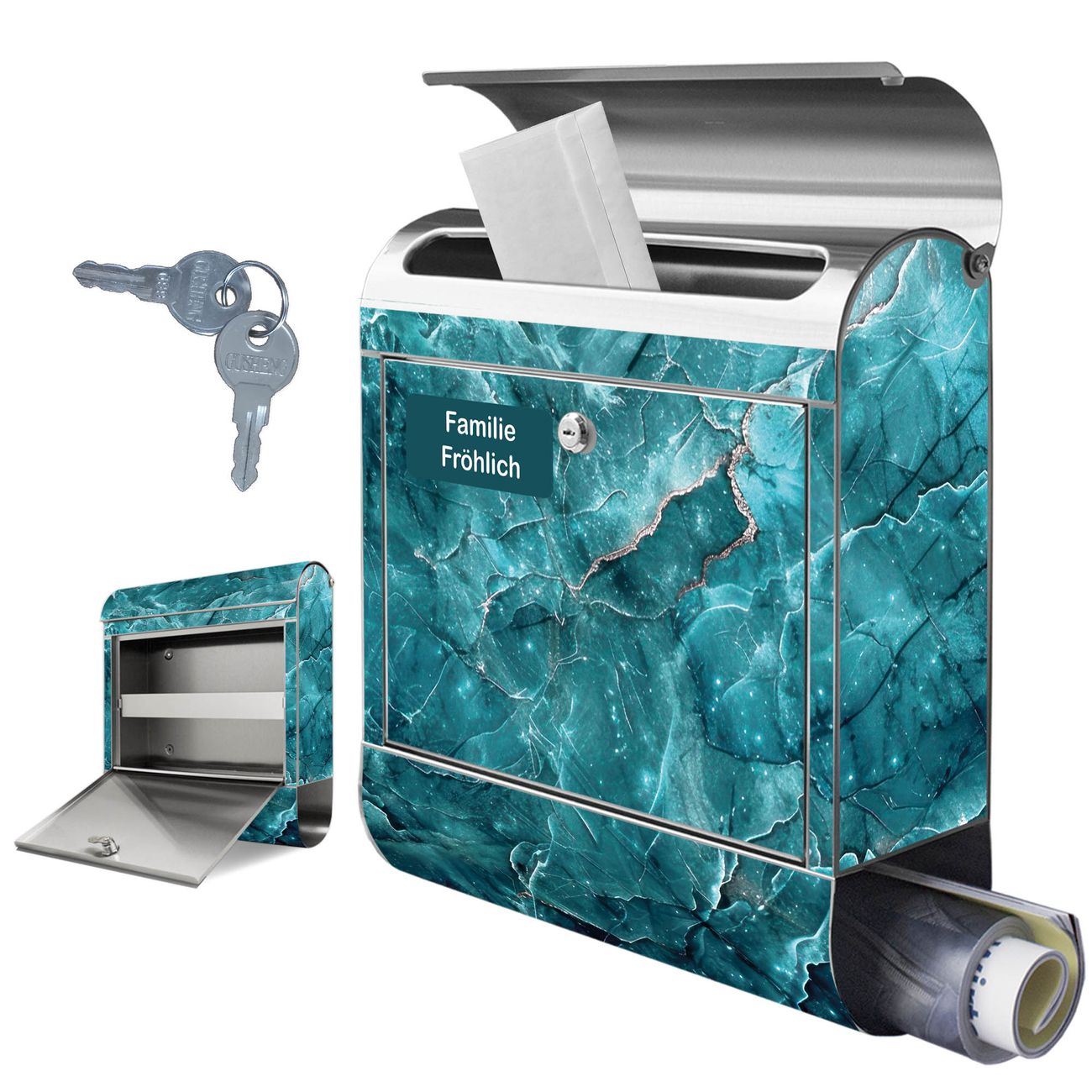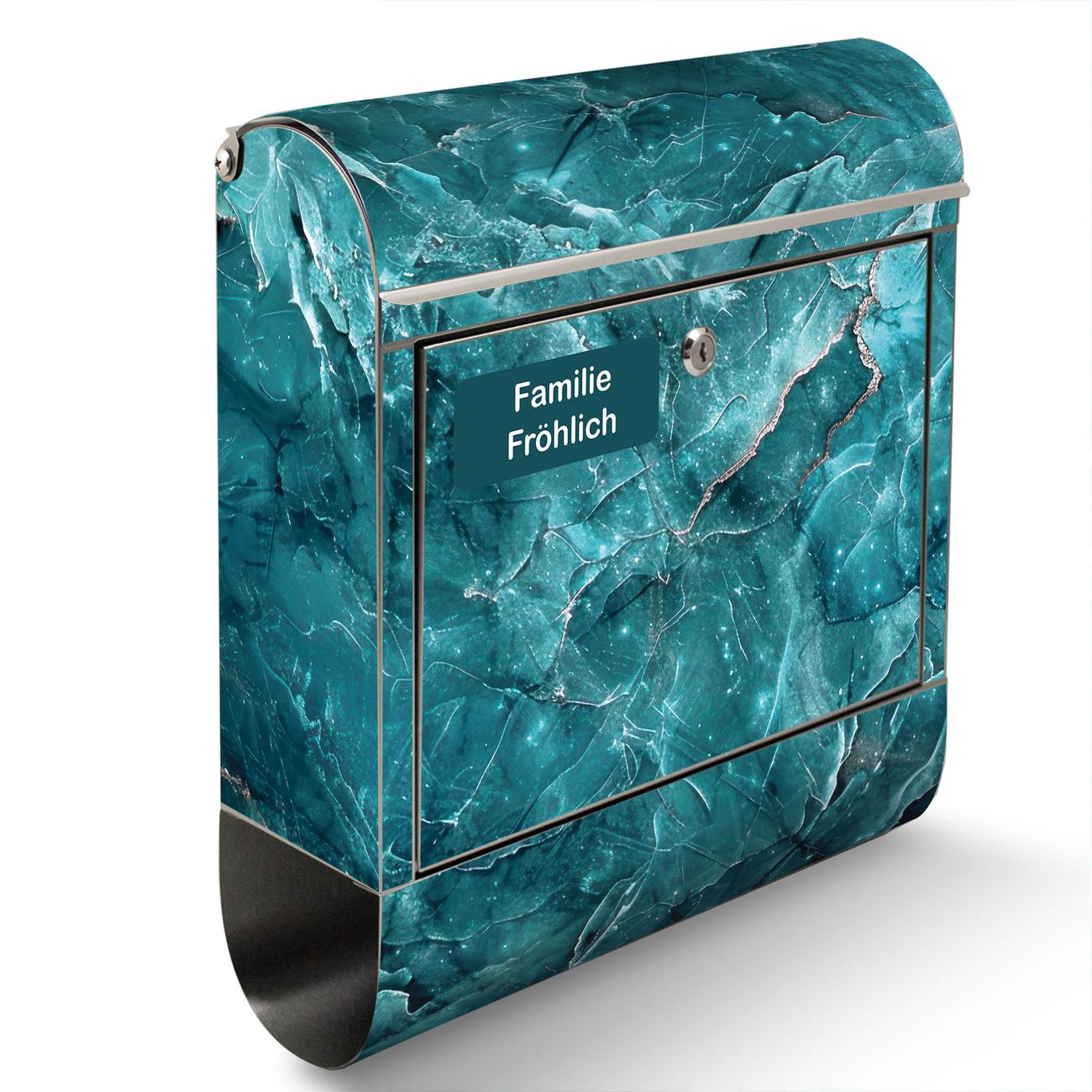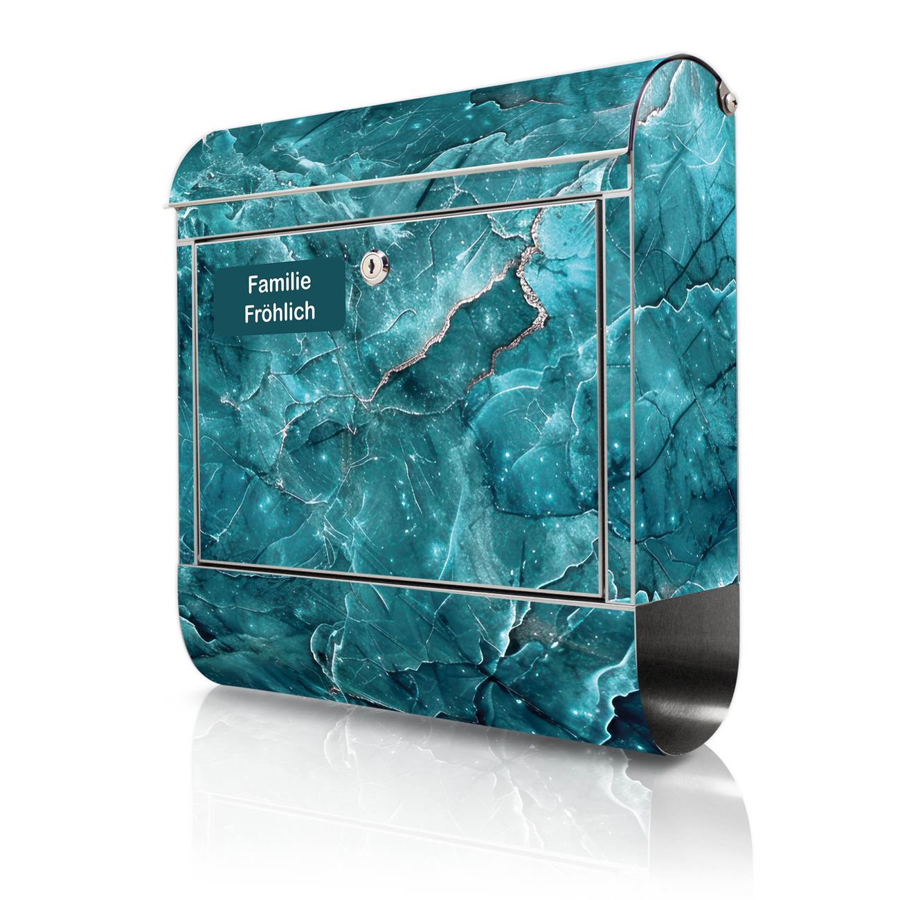 Wandbriefkasten Edelstahl Motiv Türkiser Marmor