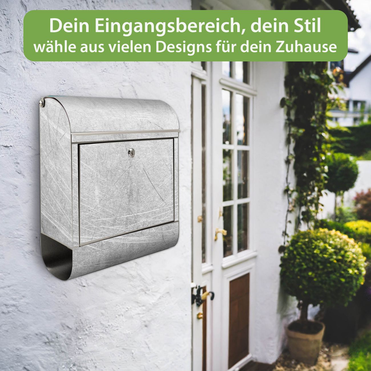 FUNKTION: Der banjado Edelstahl Briefkasten mit Motiv Motiv Verkratztes Metall Grau bietet Ihnen mit seinem Fassungsvermögen genügend Platz auch für große A4 Sendungen. Das integrierte Zeitungsfach eignet sich hervorragend um unkompliziert die Tageszeitung zu fassen. Auf Wunsch können Sie bei uns den passenden Ständer kaufen und so aus dem Wandbriefkasten einen Standbriefkasten machen. DESIGN: Der Motivbriefkasten hat ein sehr ansprechendes und ausgefallenes Design, damit entlocken Sie Ihren Nachbarn und dem Postboten ein Lächeln. Heben Sie Sich ab von der tristen grauen Masse ohne auf Funktionalität zu verzichten. DETAILS: Der Design Briefkasten mit Motiv Motiv Verkratztes Metall Grau besteht aus hochwertigem 18/0 Edelstahl. Das Motiv besteht aus einer wetter- und UV-resistenten Folie, die mit einem Schutzlaminat überzogen ist. Der Briefkasten wird mit Montagematerial und zwei Schlüsseln geliefert. NUTZEN: Sie können diesen Briefkasten sowohl als Wandbriefkasten montieren oder einen passenden Ständer auswählen und als Standbriefkasten einbetonieren. Die Größe bietet genügend Platz für Sendungen aller Art, das hochwertige Edelstahl ist rostfrei und die Motivfolie absolut wetterfest. SCHUTZ: Um Ihre Post optimal vor Witterungseinflüssen wie Starkregen zu schützen, empfehlen wir, den Briefkasten geschützt anzubringen. BANJADO: Ihr Briefkasten wird in Sachsen in einer kleinen Manufaktur von Hand veredelt. Die Motivfolie ist lösungsmittelfrei und schutzlaminiert, dies sorgt für einen langen Halt. Wir legen großen Wert auf die Verbindung von Funktionalität und Design. Sie erhalten Handarbeit aus Sachsen.