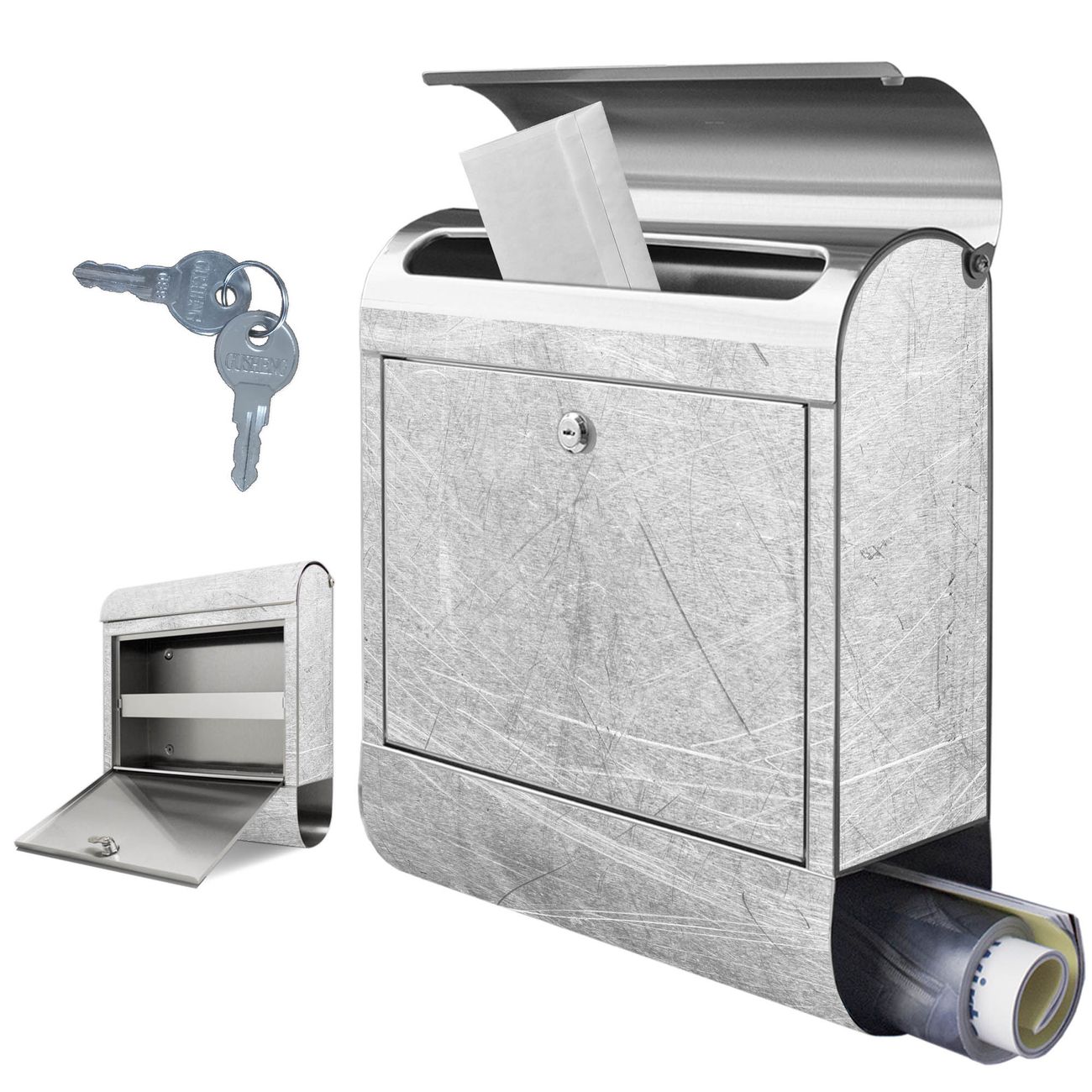 Wandbriefkasten Edelstahl Motiv Verkratztes Metall Grau