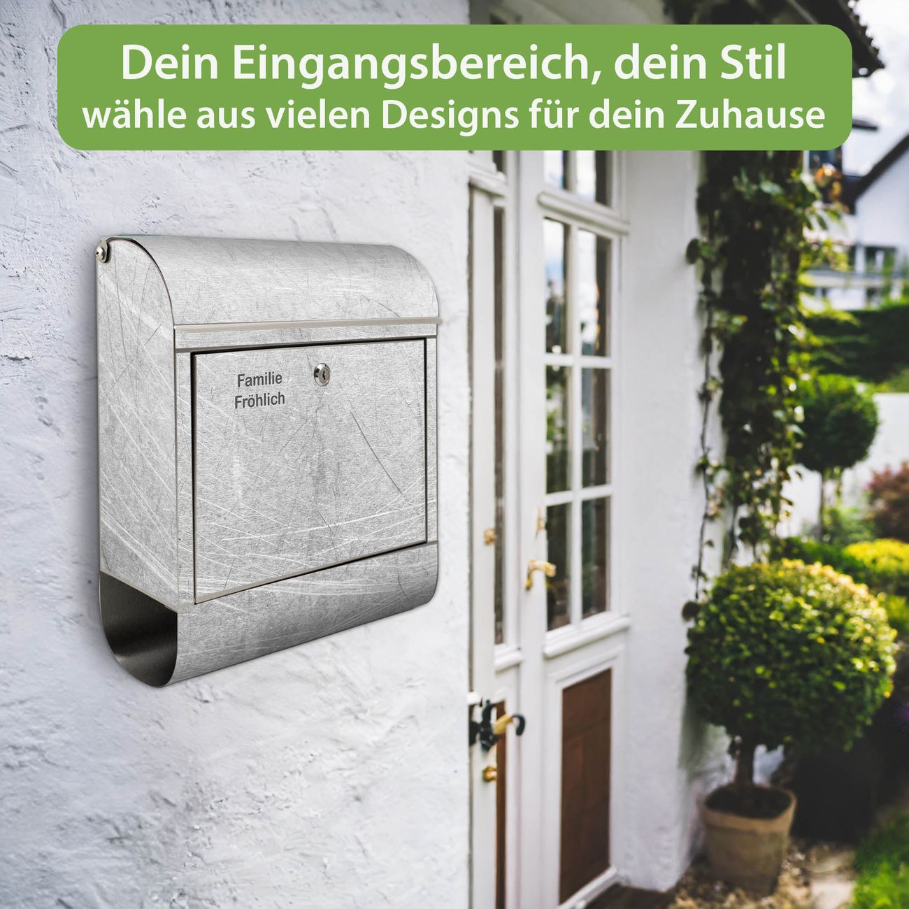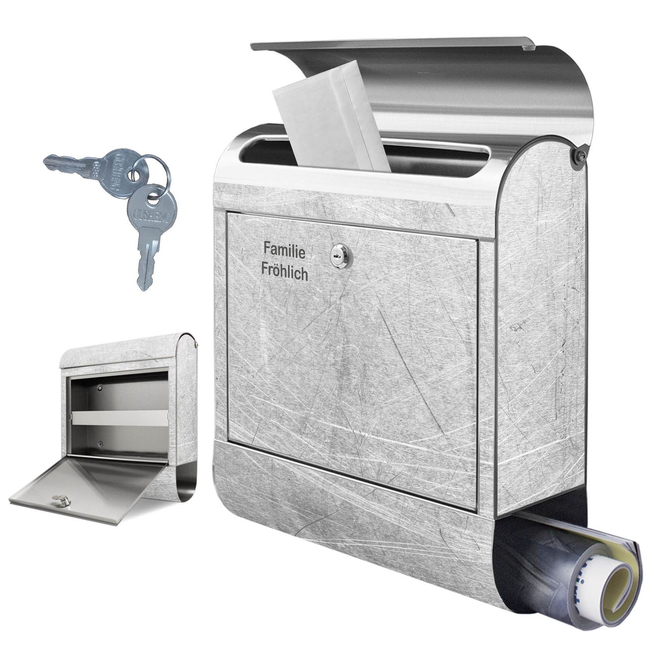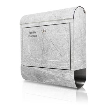 Wandbriefkasten Edelstahl Motiv Verkratztes Metall Grau
