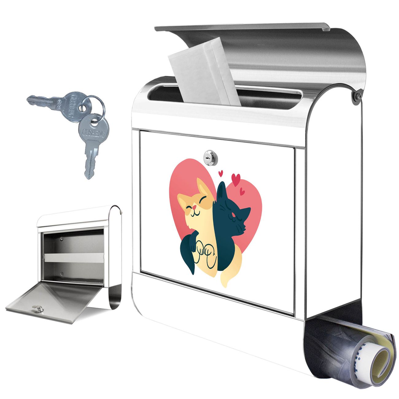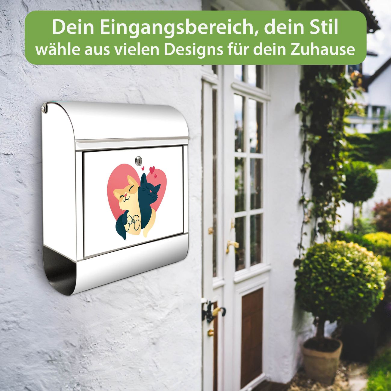 Wandbriefkasten Edelstahl Motiv Verliebte Katzen 1