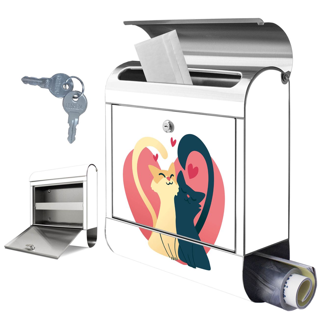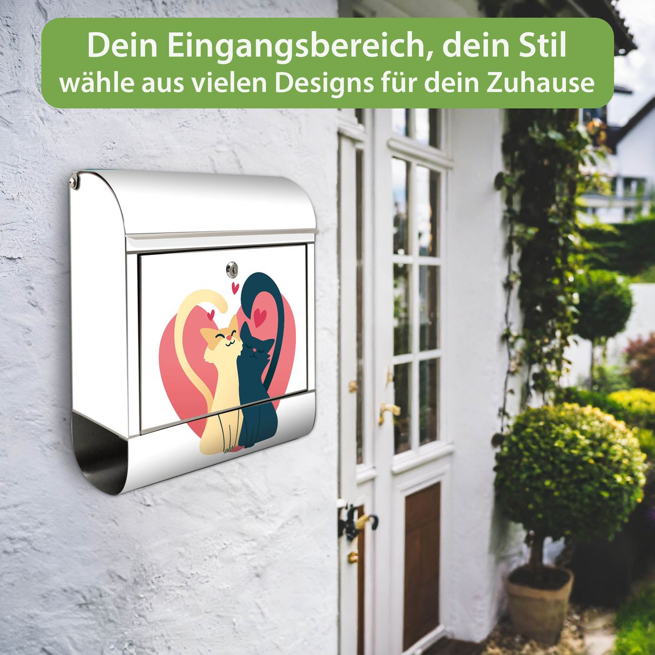 Wandbriefkasten Edelstahl Motiv Verliebte Katzen 2