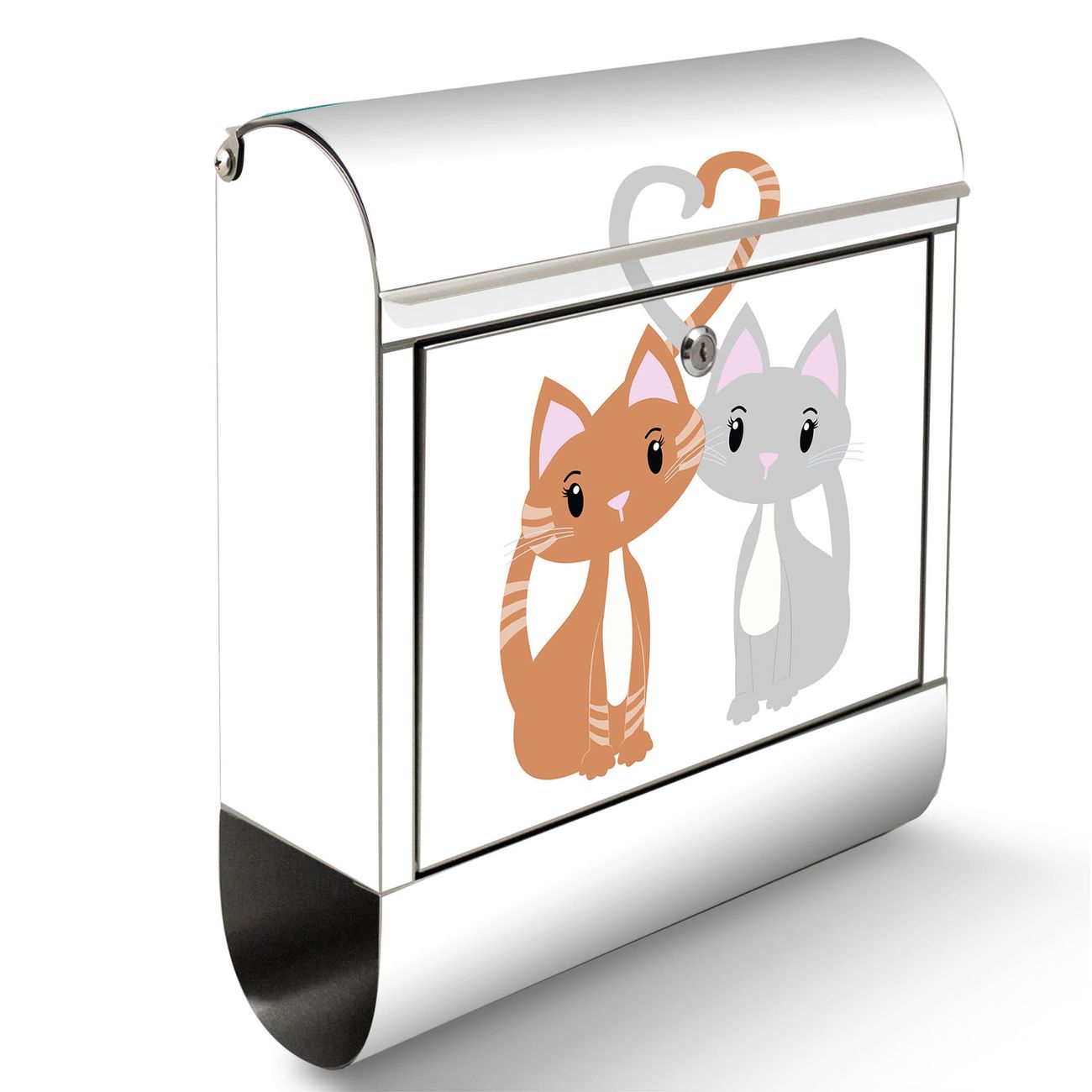 Wandbriefkasten Edelstahl Motiv Verliebte Katzen 3