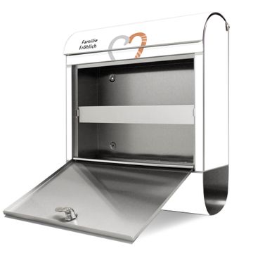 FUNKTION: Der banjado Edelstahl Briefkasten mit Motiv Motiv Verliebte Katzen 3 bietet Ihnen mit seinem Fassungsvermögen genügend Platz auch für große A4 Sendungen. Das integrierte Zeitungsfach eignet sich hervorragend um unkompliziert die Tageszeitung zu fassen. Auf Wunsch können Sie bei uns den passenden Ständer kaufen und so aus dem Wandbriefkasten einen Standbriefkasten machen. DESIGN: Der Motivbriefkasten hat ein sehr ansprechendes und ausgefallenes Design, damit entlocken Sie Ihren Nachbarn und dem Postboten ein Lächeln. Heben Sie Sich ab von der tristen grauen Masse ohne auf Funktionalität zu verzichten. DETAILS: Der Design Briefkasten mit Motiv Motiv Verliebte Katzen 3 besteht aus hochwertigem 18/0 Edelstahl. Das Motiv besteht aus einer wetter- und UV-resistenten Folie, die mit einem Schutzlaminat überzogen ist. Der Briefkasten wird mit Montagematerial und zwei Schlüsseln geliefert. NUTZEN: Sie können diesen Briefkasten sowohl als Wandbriefkasten montieren oder einen passenden Ständer auswählen und als Standbriefkasten einbetonieren. Die Größe bietet genügend Platz für Sendungen aller Art, das hochwertige Edelstahl ist rostfrei und die Motivfolie absolut wetterfest. SCHUTZ: Um Ihre Post optimal vor Witterungseinflüssen wie Starkregen zu schützen, empfehlen wir, den Briefkasten geschützt anzubringen. BANJADO: Ihr Briefkasten wird in Sachsen in einer kleinen Manufaktur von Hand veredelt. Die Motivfolie ist lösungsmittelfrei und schutzlaminiert, dies sorgt für einen langen Halt. Wir legen großen Wert auf die Verbindung von Funktionalität und Design. Sie erhalten Handarbeit aus Sachsen.
