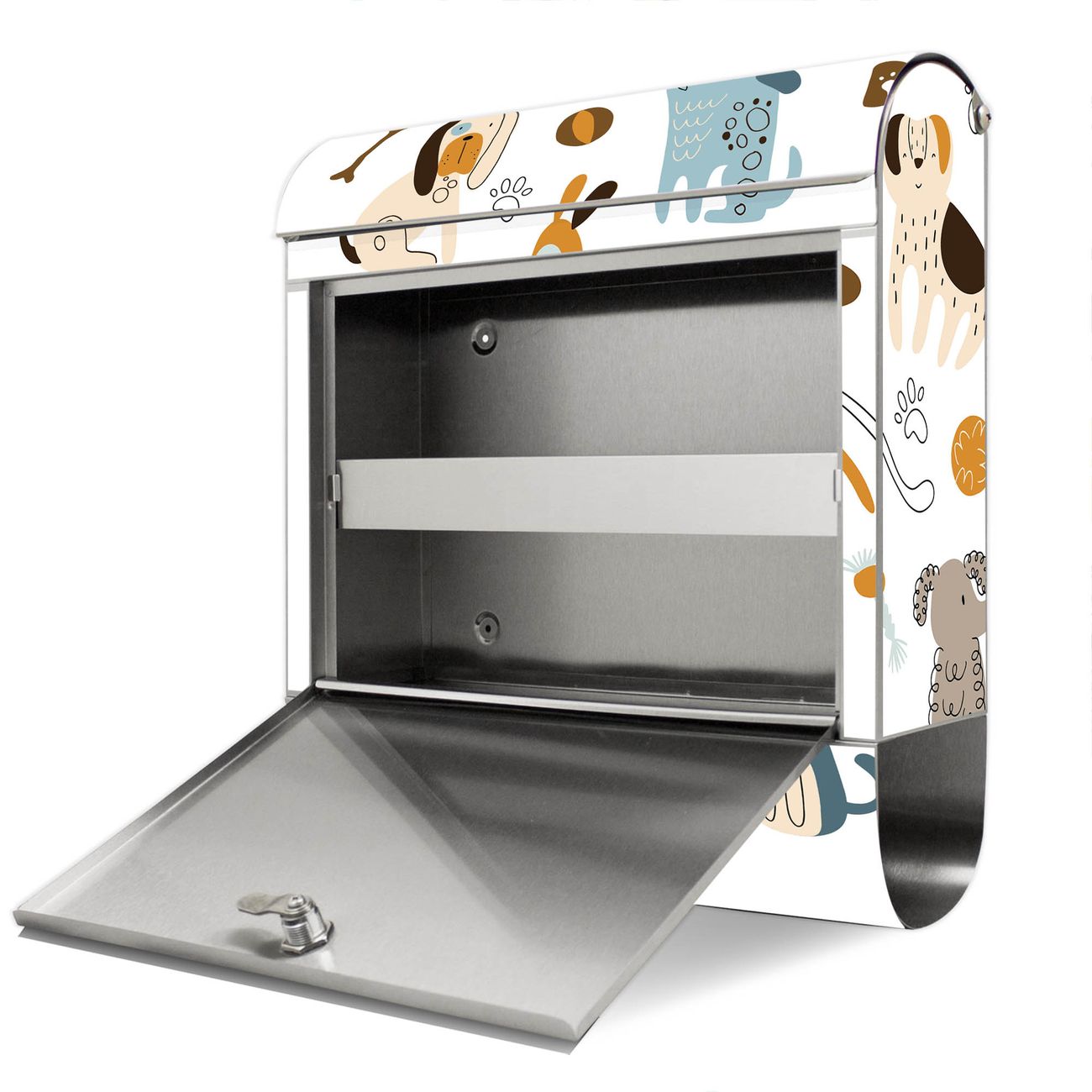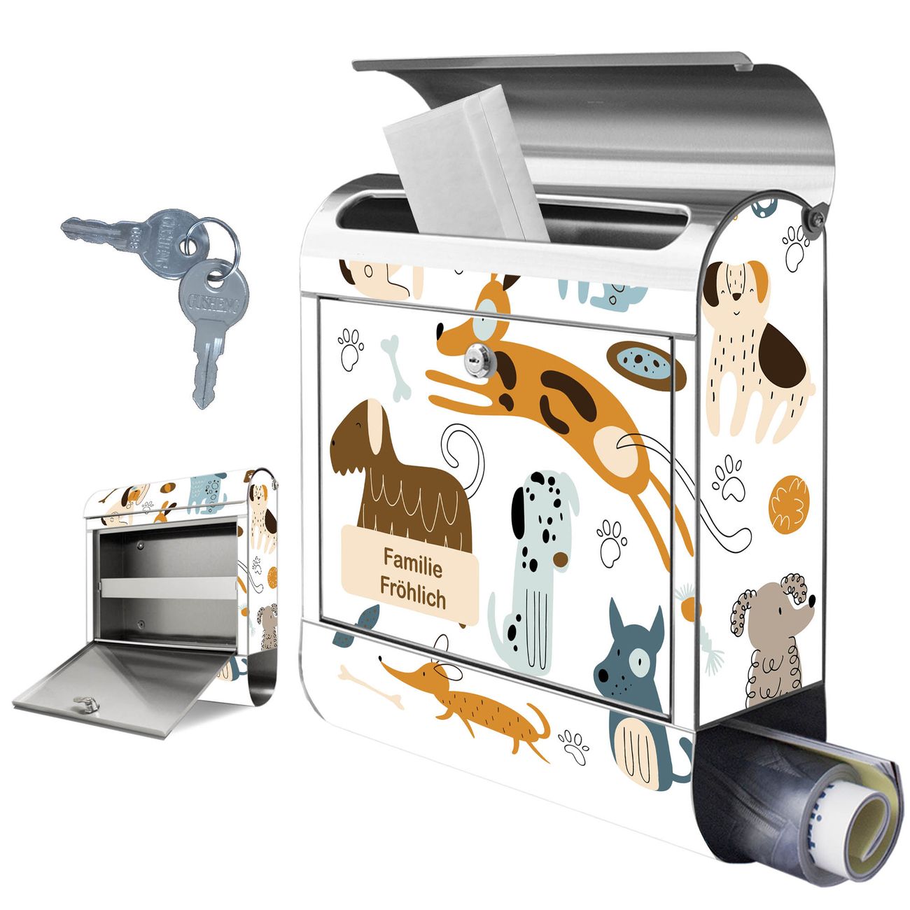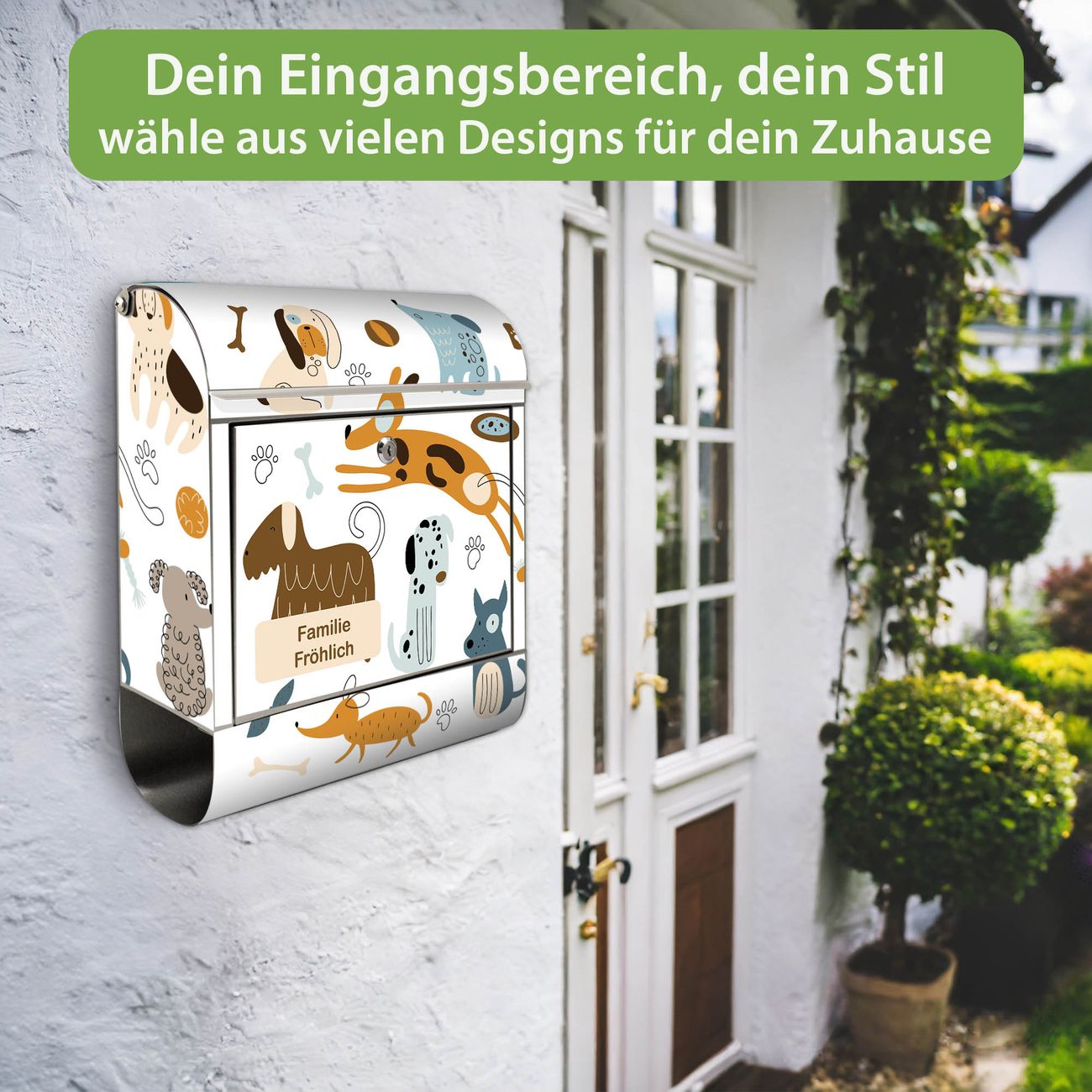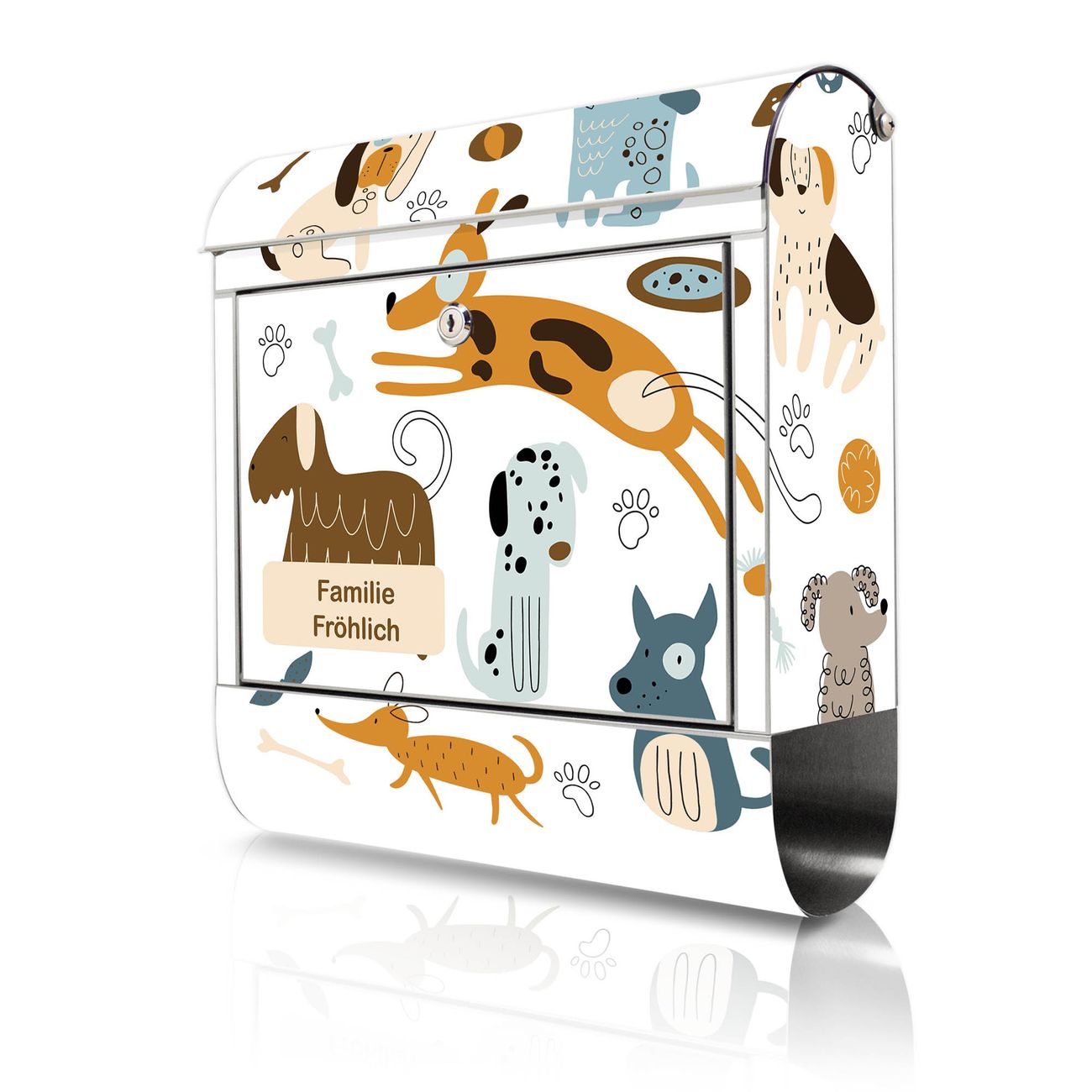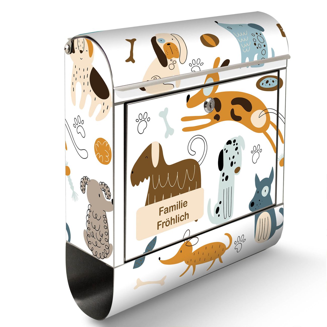 Wandbriefkasten Edelstahl Motiv Verspielte Hunde-Illustration